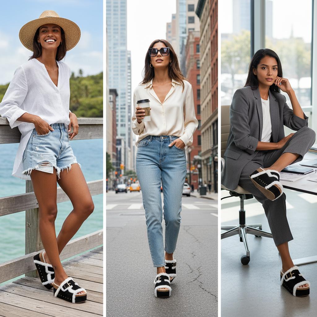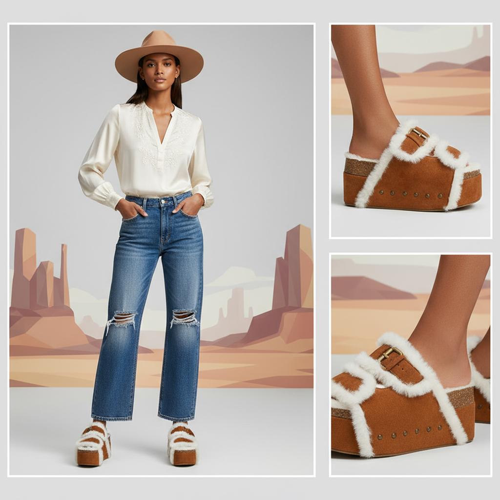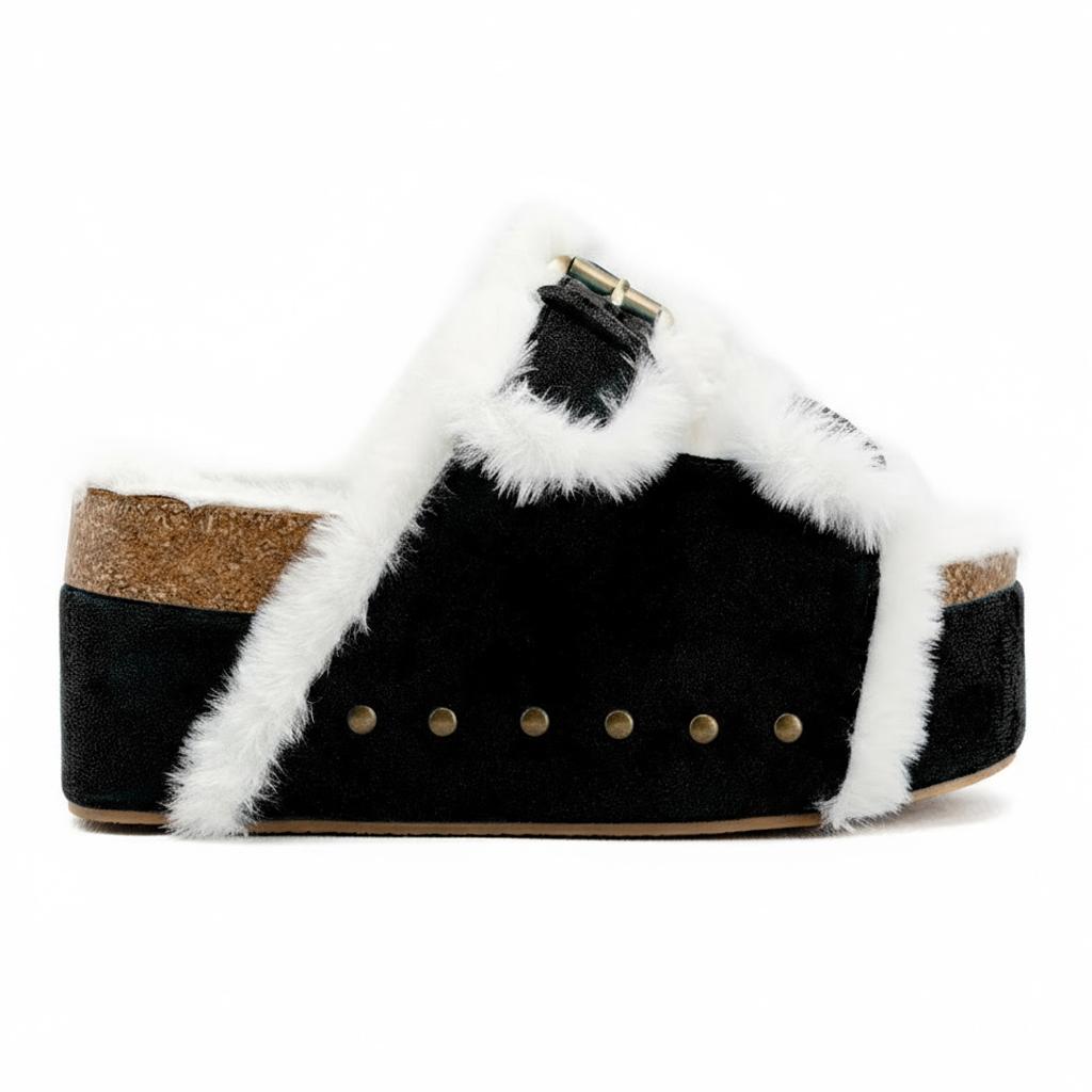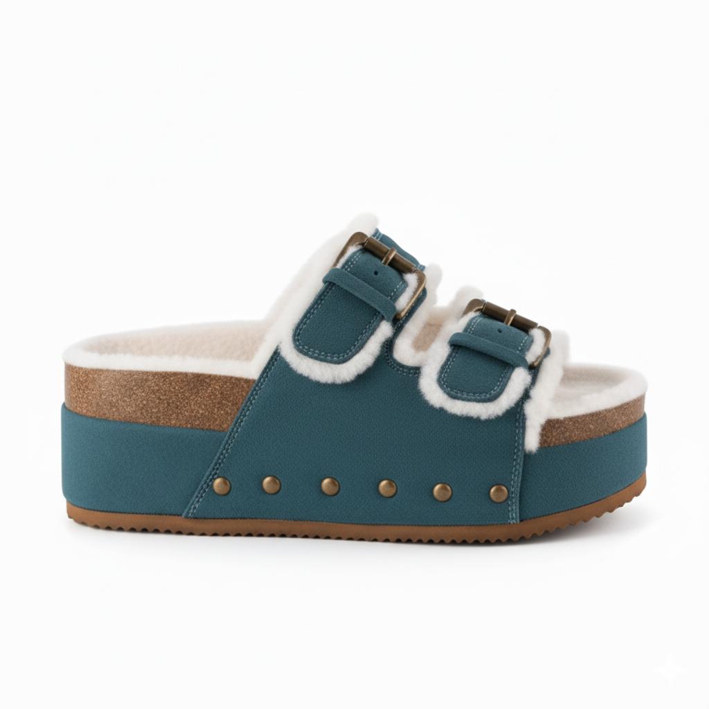 Elevate Your Style with Comfort and Chic Design Introducing our Blue Faux Suede Fur-Lined Sandals, where comfort meets trendsetting fashion. Crafted from high-quality PU with a luxurious faux suede finish, these sandals are meticulously designed to provide an exceptional wearing experience while ensuring durability. The unique studded accents add a sophisticated touch, making these shoes a must-have in your wardrobe. Unmatched Comfort and Durability Experience all-day comfort with the plush faux fur lining that keeps your feet cozy, perfect for winter outings. With a robust rubber sole and a 2.50 in / 6.4 cm thick platform heel, these sandals are engineered to withstand daily wear while providing cushioning and support for your feet. Exceptional Traction for All-Day Wear Featuring a non-slip rubber outsole, these sandals ensure superior traction on various surfaces. Whether you're strolling through the park or enjoying an evening out, the sturdy design makes them ideal for all-day wear without discomfort. Versatile Sizing and Structure The double buckle design allows for easy adjustments, ensuring a secure fit for various foot shapes. With a round toe and a convenient slip-on style, these sandals are perfect for quick outings or leisurely weekends. Stylish Pairing for Any Occasion Perfect for casual outings, beach days, or summer parties, these sandals can be effortlessly paired with sundresses, shorts, or casual jeans. Embrace your style while enjoying the versatility and comfort these faux suede sandals offer.