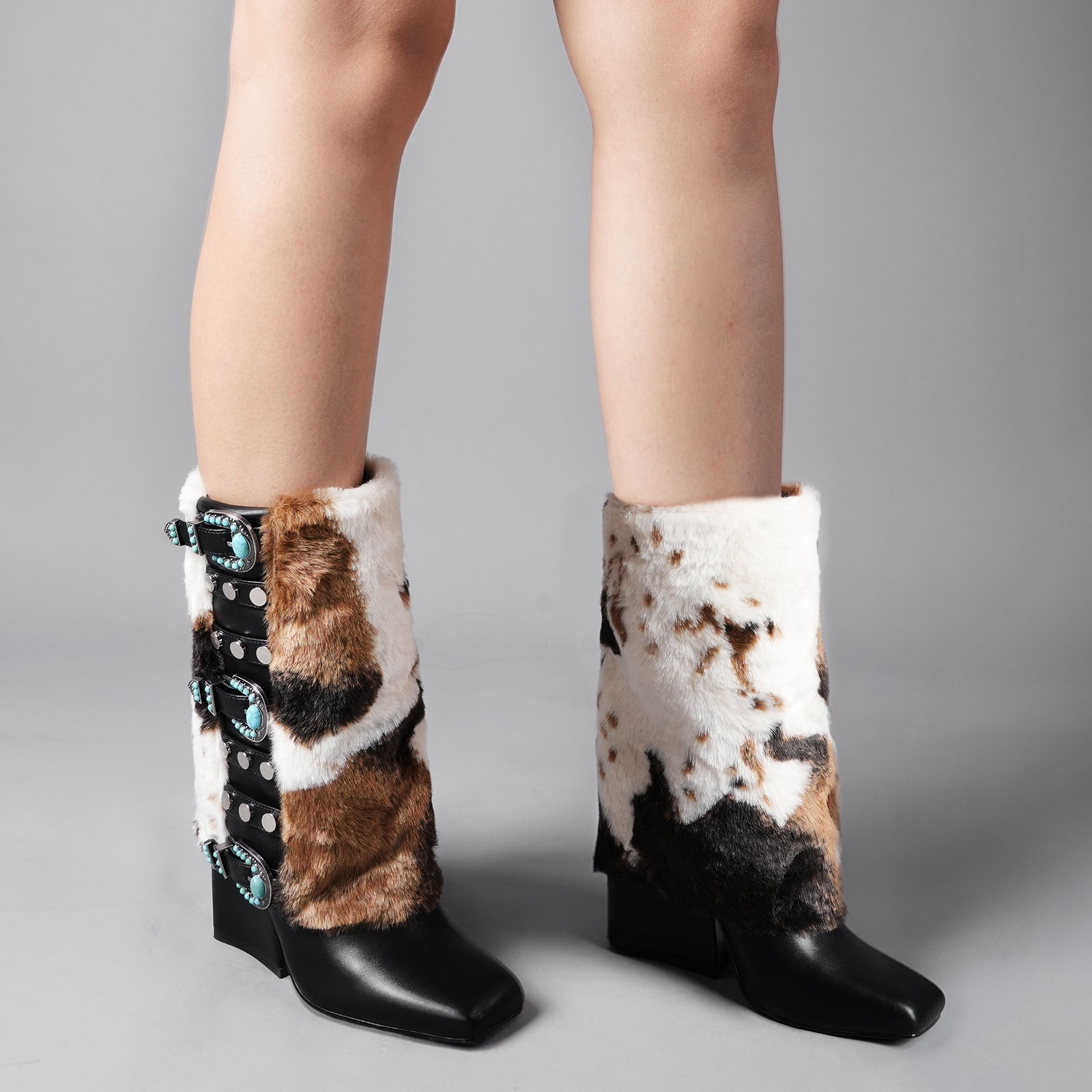 Experience the perfect blend of style and versatility with our Western-Style Foldable Chunky Heel Ankle Boots. Crafted from premium faux fur and PU material, these boots are designed for the fashion-forward woman who values comfort and durability.