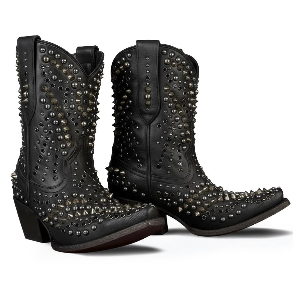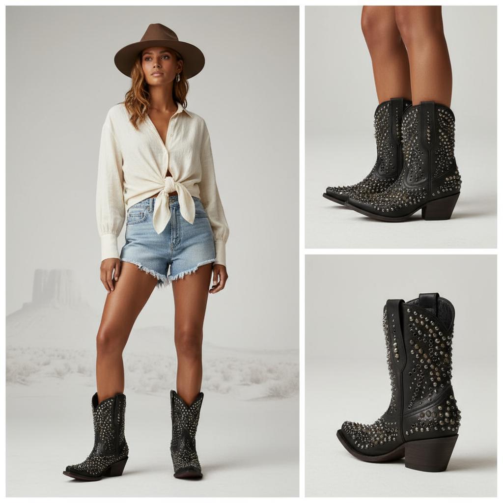 Discover the perfect blend of comfort and style with our Chunky Heel Western Short Ankle Boots for Women. Crafted with high-quality genuine leather, these boots feature a unique studded and pearl embellishment, elevating your footwear to a new level of sophistication.