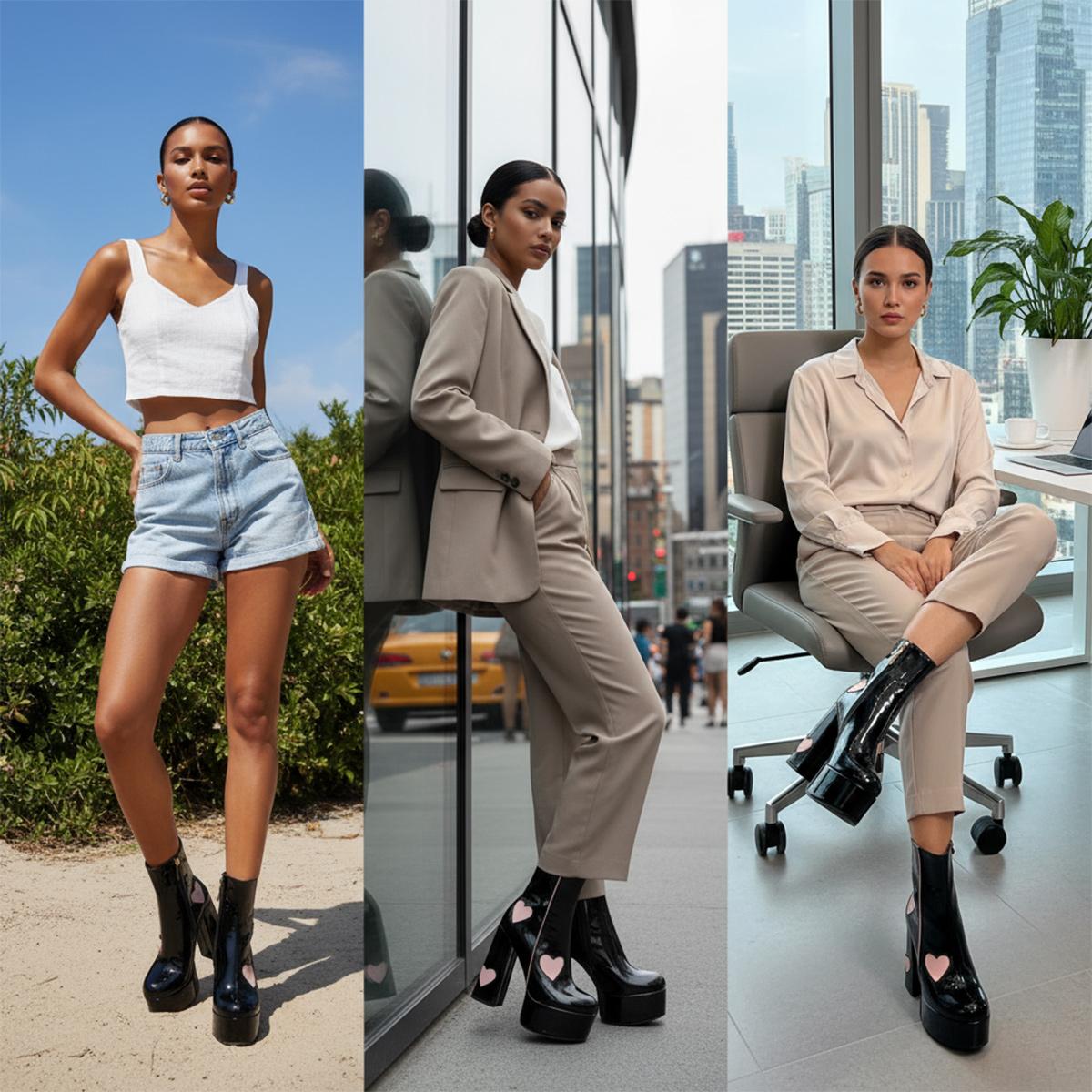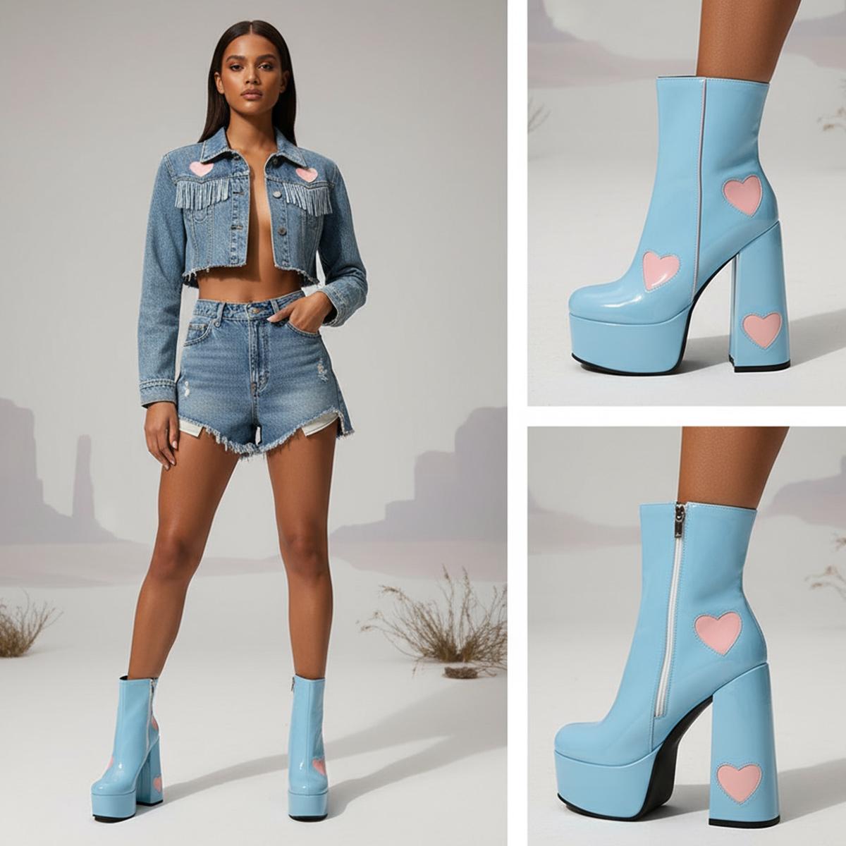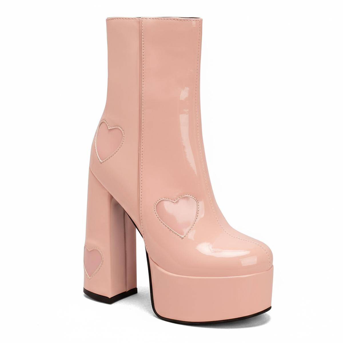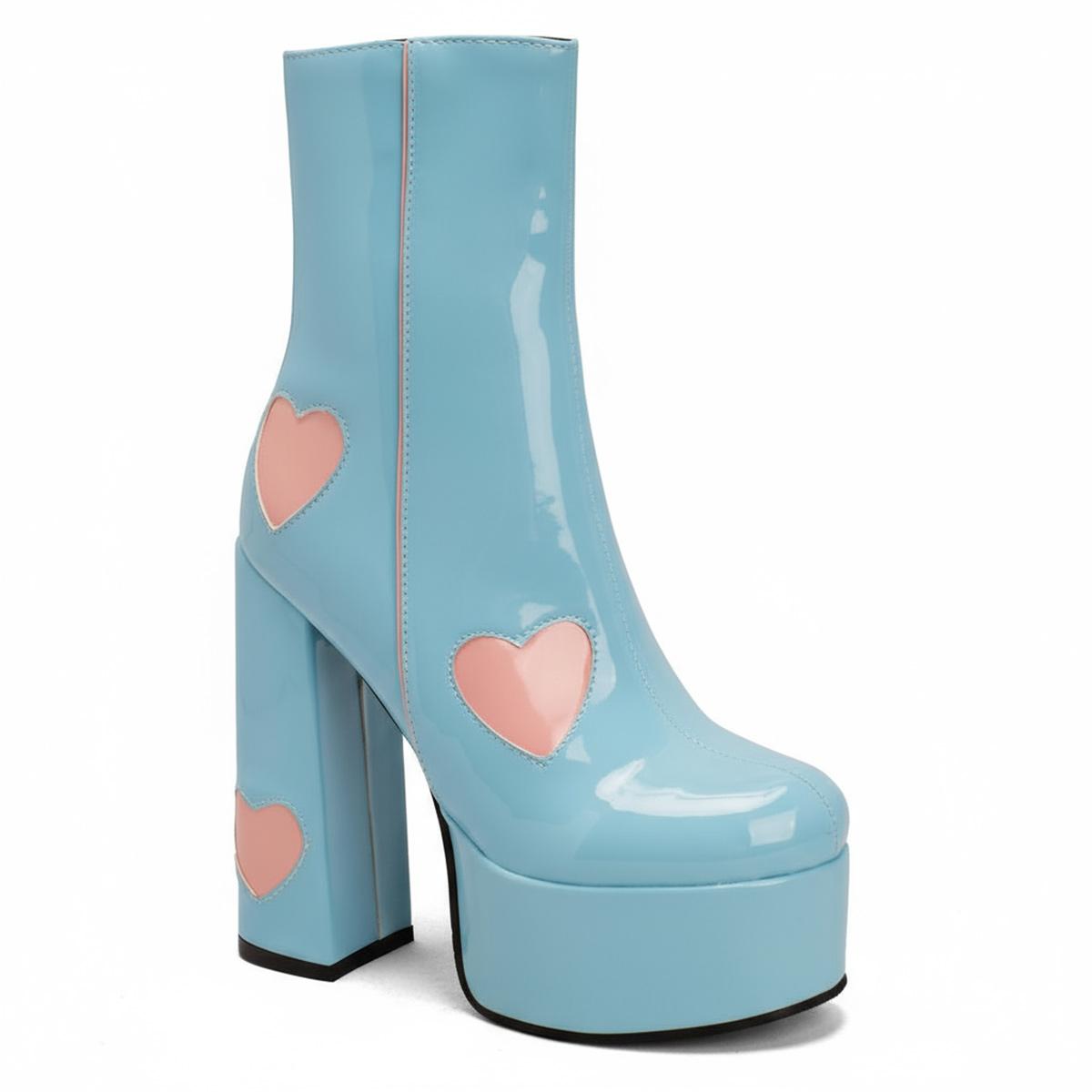 Core Value: Crafted with precision, these ankle boots feature a heart pattern that sets them apart. The combination of high-quality synthetic patent leather and handcrafted details ensures an eye-catching aesthetic and durability.