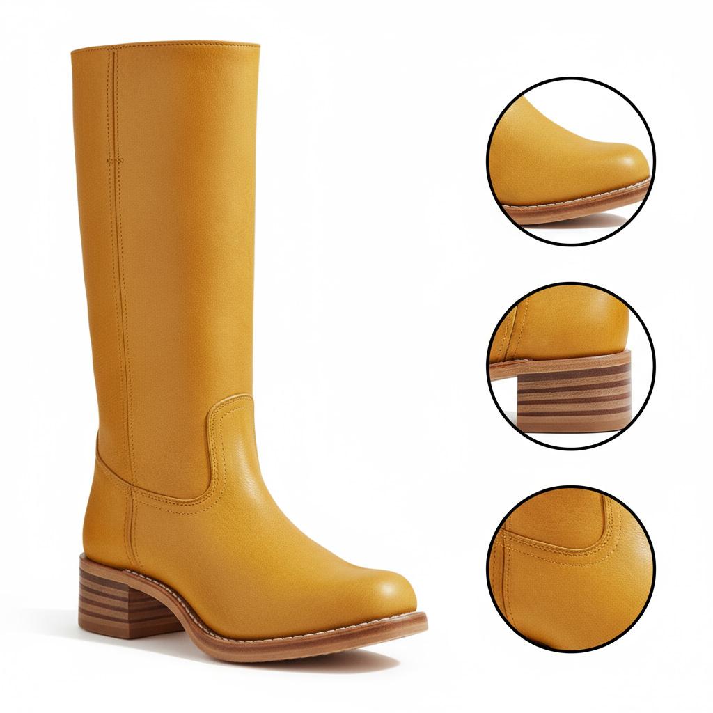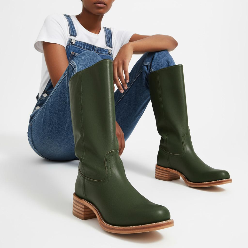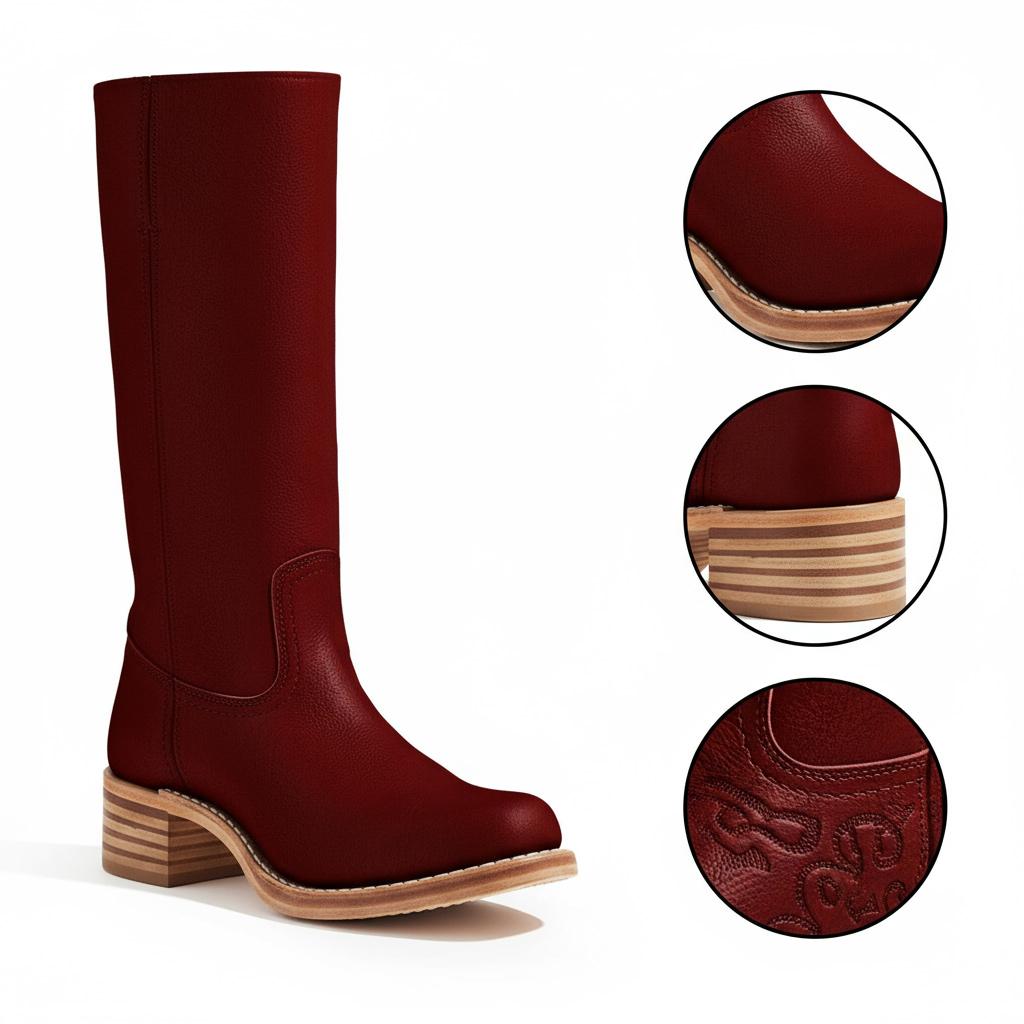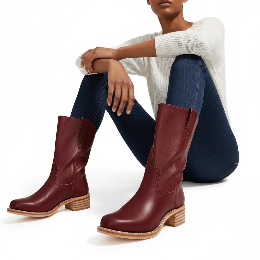 Introducing our Classic Western Mid-Calf Boots for Women, where timeless craftsmanship meets modern comfort. Made from premium full-grain leather, these boots showcase unique hand-finished details that not only enhances their aesthetic charm but also ensures durability. Designed with a stylish yet versatile flair, they seamlessly transition from day to night, making them a perfect addition to any wardrobe.