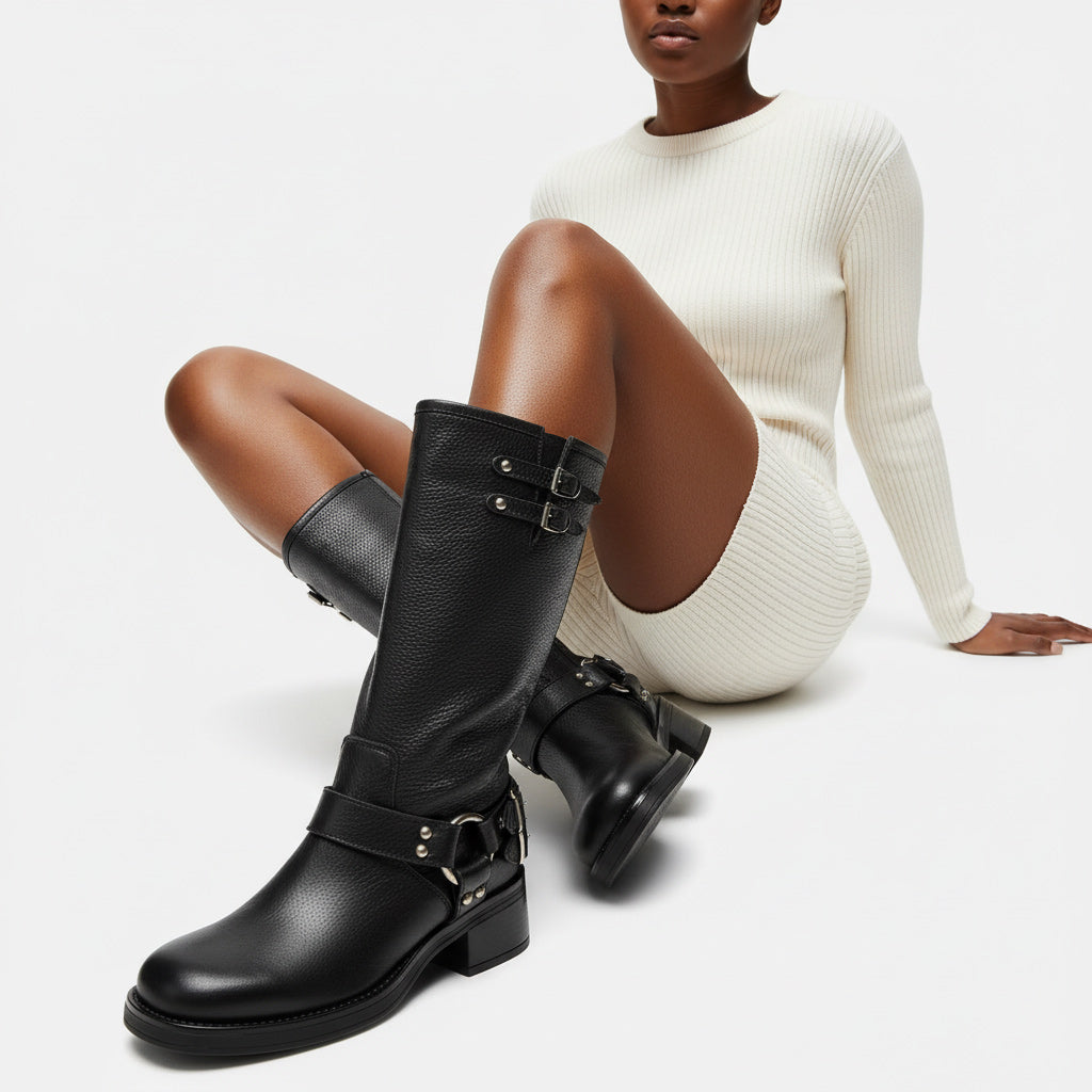 Available in a versatile size, the adjustable buckle ensures a personalized fit, while the mid-calf height is ideal for pairing with skirts, dresses, or your favorite jeans. Make these boots your go-to choice for all seasons!