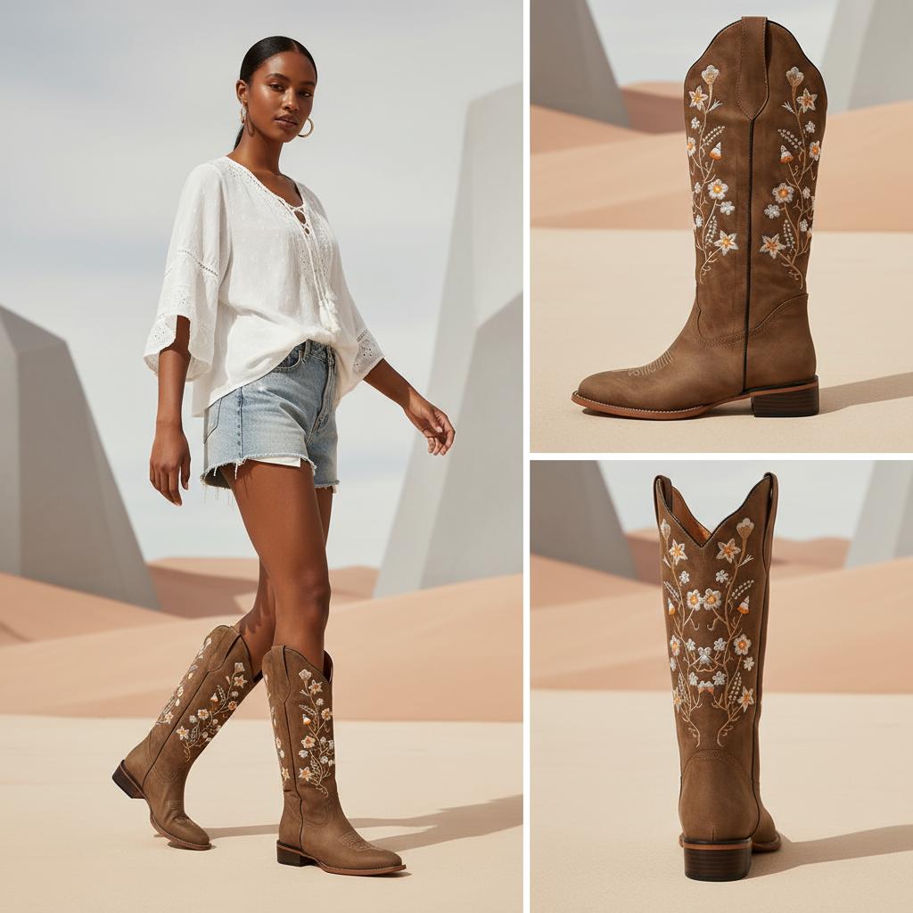 The Comfortable Floral Embroidered Western Boots for Women blend exquisite craftsmanship and modern design, making them the perfect choice for stylish everyday wear. Made from premium faux suede, these boots showcase unique floral embroidery that adds a touch of individuality to any outfit.