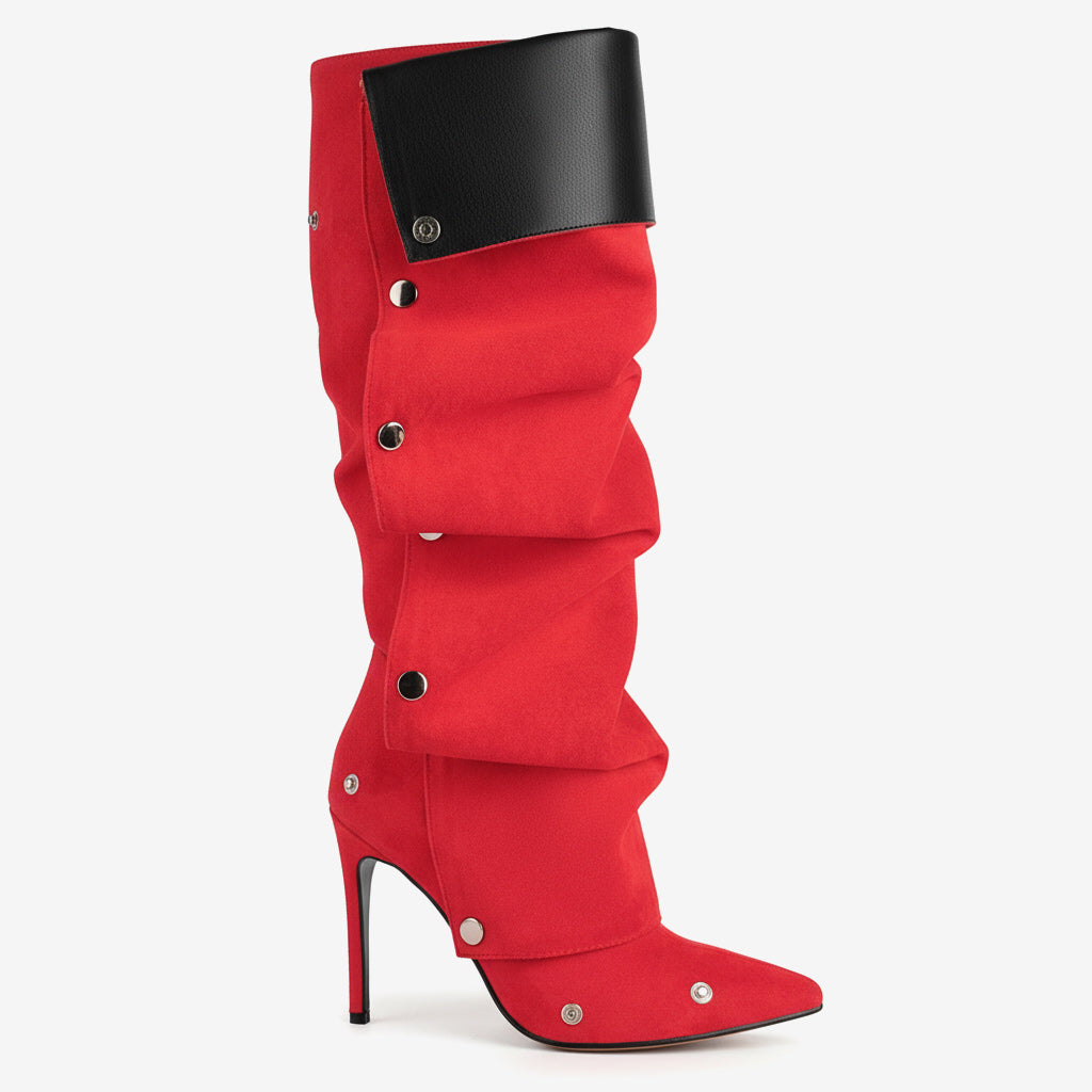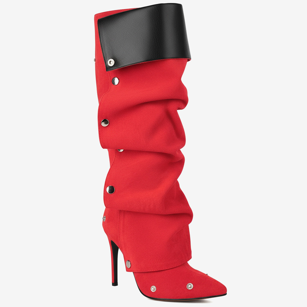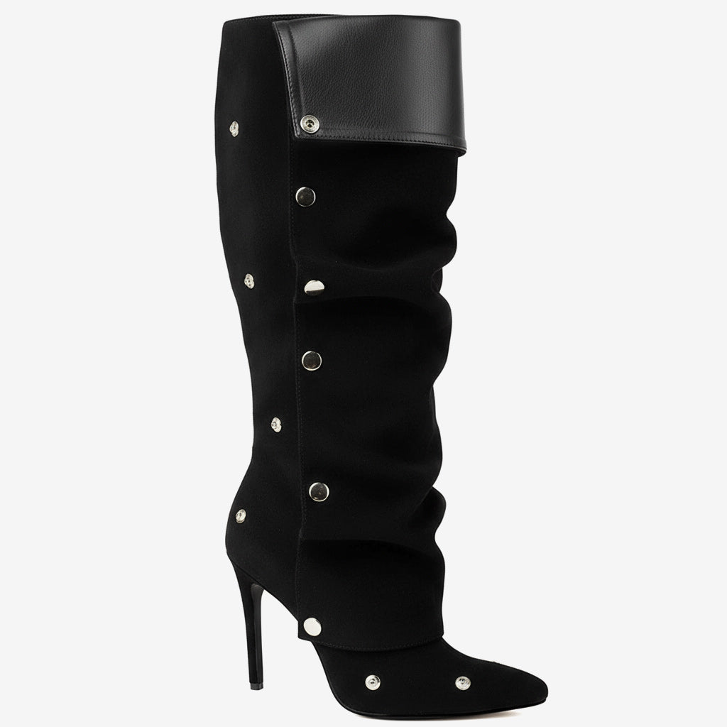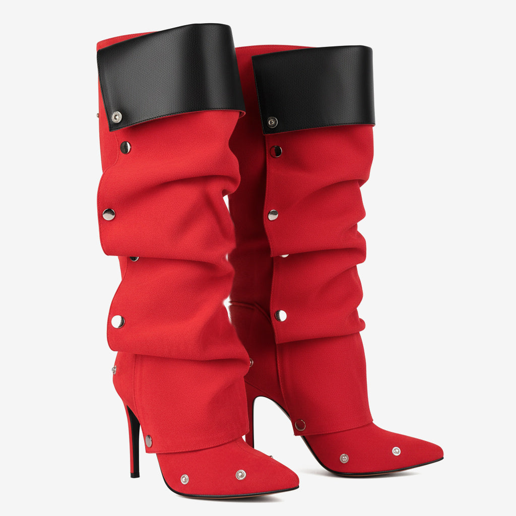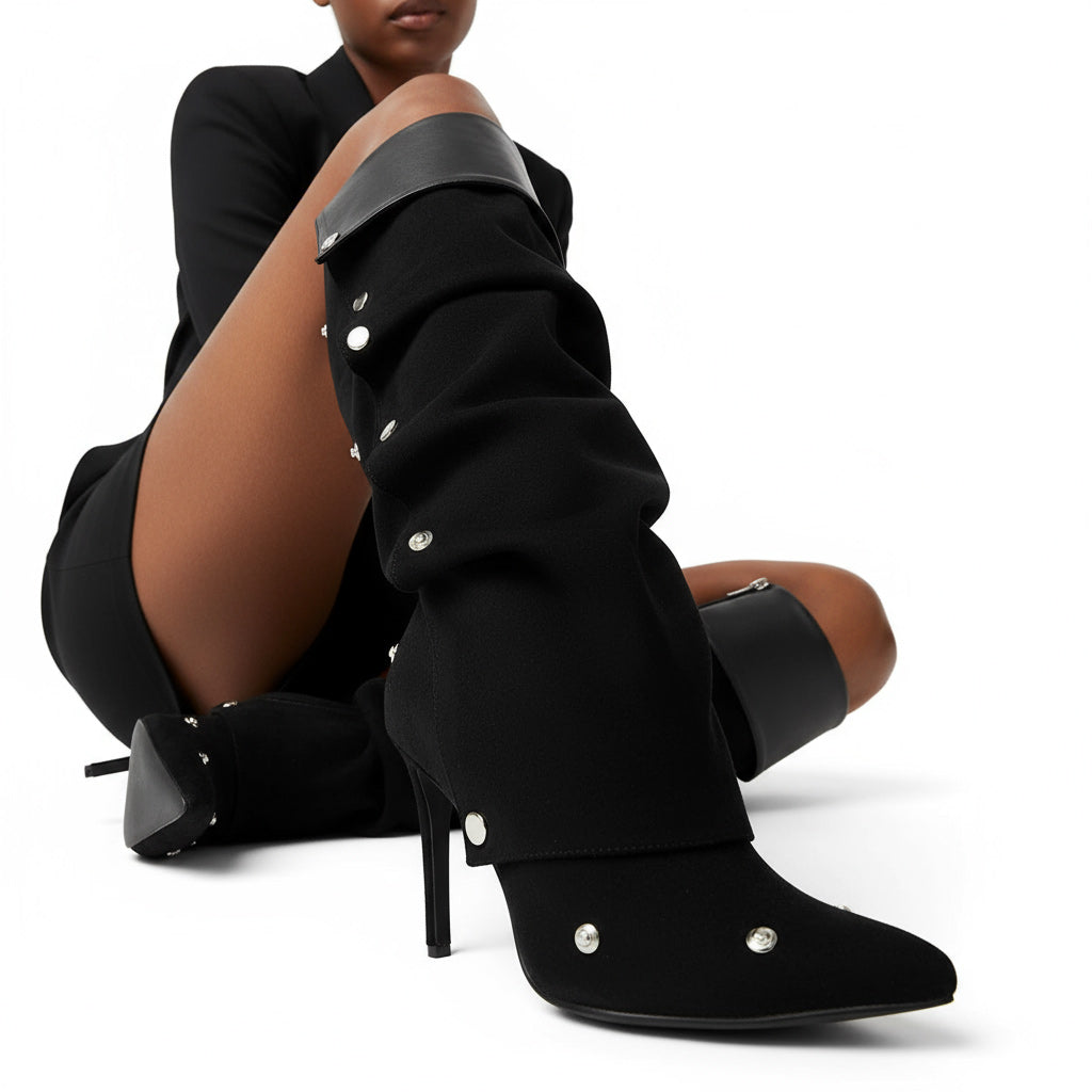 Experience the perfect blend of elegance and comfort with our Comfortable High Heel Knee-High Ruched Boots for Women. Crafted from premium genuine leather, these boots feature a chic pointed toe and a fashionable ruched detail that enhances your style. The unique craftsmanship ensures long-lasting wear while prioritizing both aesthetics and functionality.