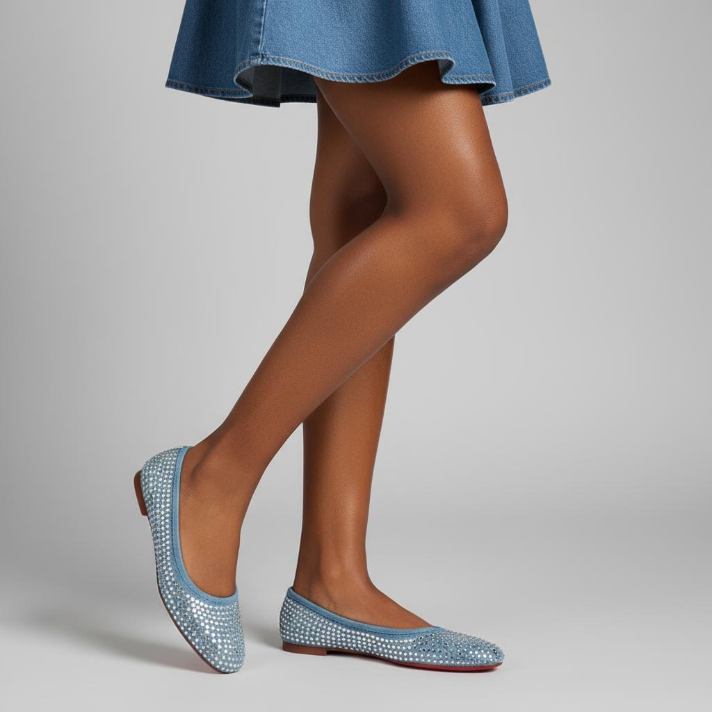 Introducing our Comfortable Slip-On Flats for Women, crafted with an exquisite blend of soft suede and denim that provides a luxurious feel while ensuring durability. These flats are hand-finished with attention to detail, featuring stunning rhinestone accents that elevate your style, making them perfect for any occasion.