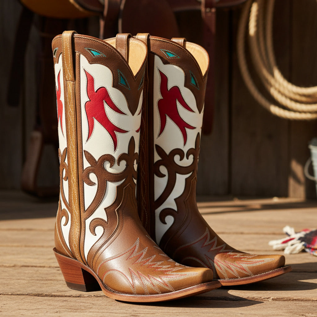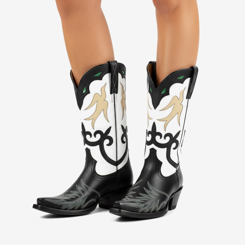 Experience Unmatched Style and Comfort with Our Handcrafted Western Boots Elevate your wardrobe with our expertly crafted Western boots, designed with genuine full-grain leather and unique craftsmanship. Each pair is handcrafted with precision and attention to detail, showcasing an exclusive design that merges traditional elegance with modern flair. Comfort Features: Our boots prioritize comfort with a padded insole and ergonomic design for all-day wear. You’ll enjoy the flexible fit and arch support, allowing for a natural stride, while the shock absorption technology provides relief during extended outings. Durability You Can Trust: Built to last, these boots feature a durable rubber outsole and reinforced stitching. The weather-resistant materials ensure that you can wear them confidently in various conditions, providing long-lasting performance for any occasion. Reliable Traction: The innovative sole design offers superior grip and stability on both paved and natural surfaces, making these boots perfect for outdoor adventures or a day at the ranch. Size & Fit: With a versatile mid-calf height of 30 cm and a comfortable 6 cm block heel, these boots are designed to enhance any outfit. They fit snugly, accommodating calf sizes ranging from 30 cm to 35 cm, perfect for both casual and formal settings. Versatile Styling: Ideal for parties, performances, and outdoor events, these unique Western boots pair wonderfully with jeans, dresses, or skirts, making you the center of attention wherever you go. Step into a world of comfort and style with our bespoke Western boots—crafted for the discerning individual who values quality and design.