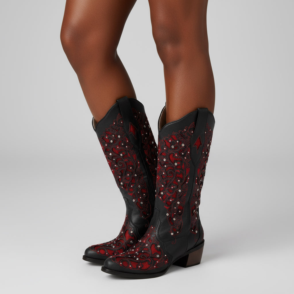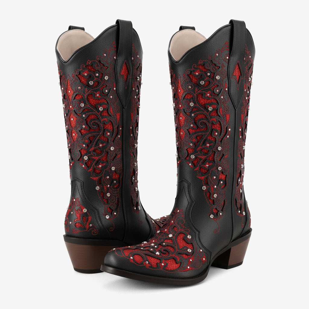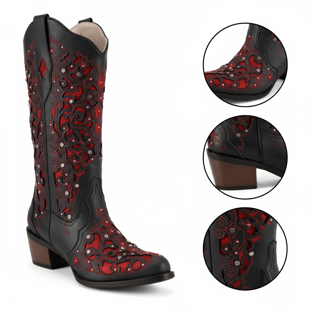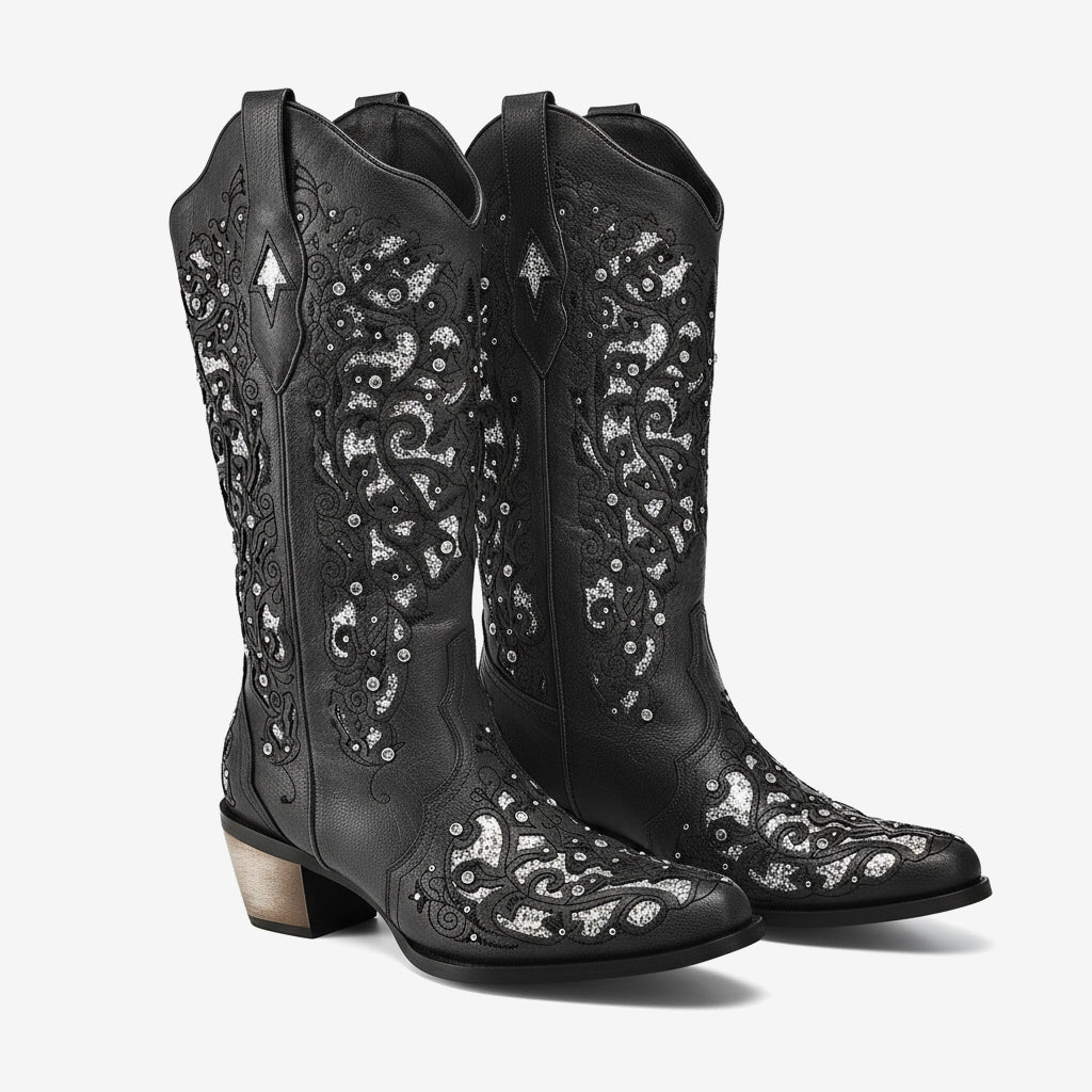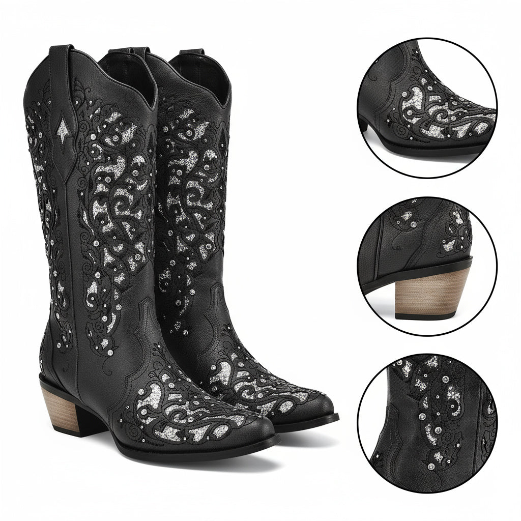Premium Vintage Material: Crafted from high-quality leather, these Cowboy Boots boast exquisite embroidery and sequins rhinestone cowgirl boots sparkle for a retro-chic look