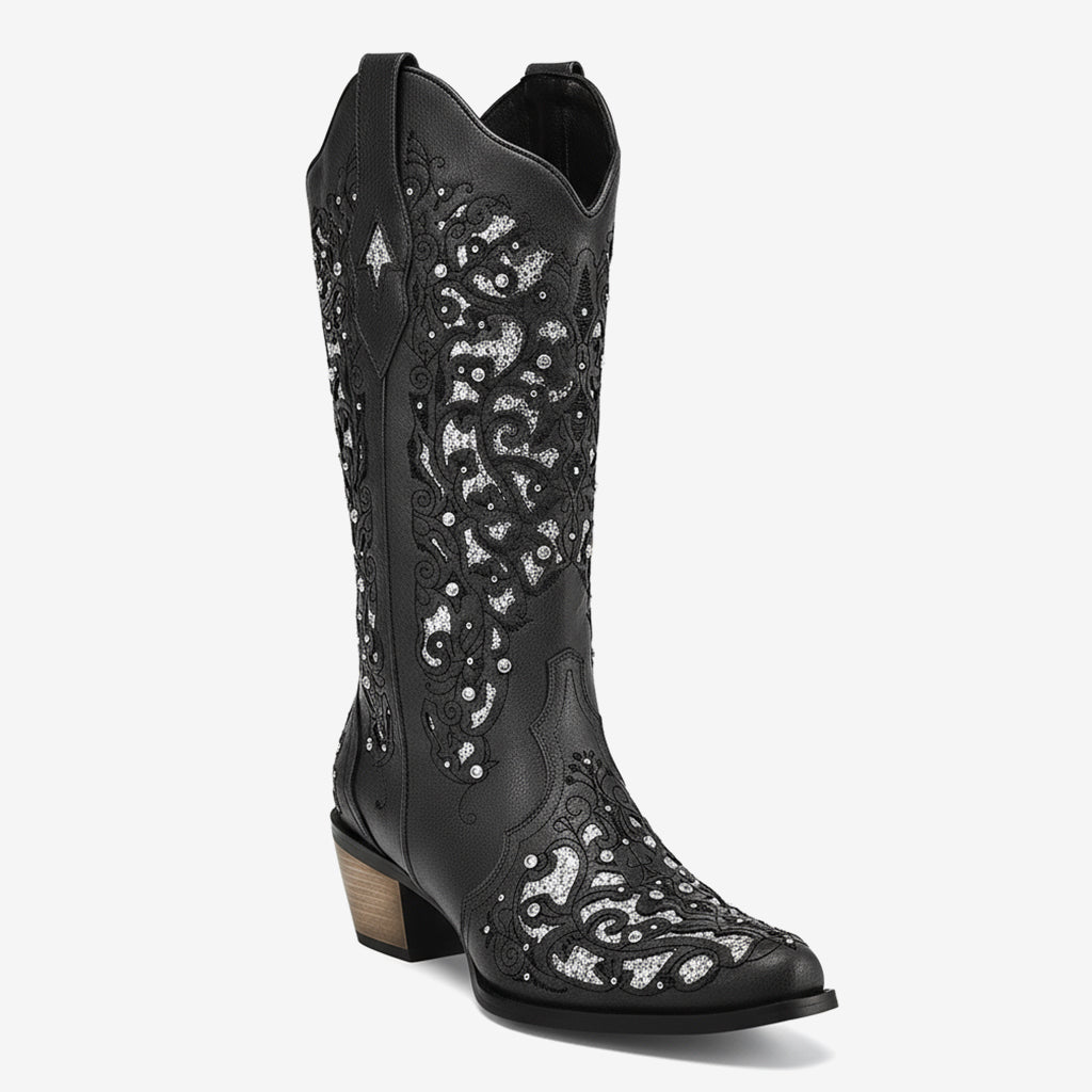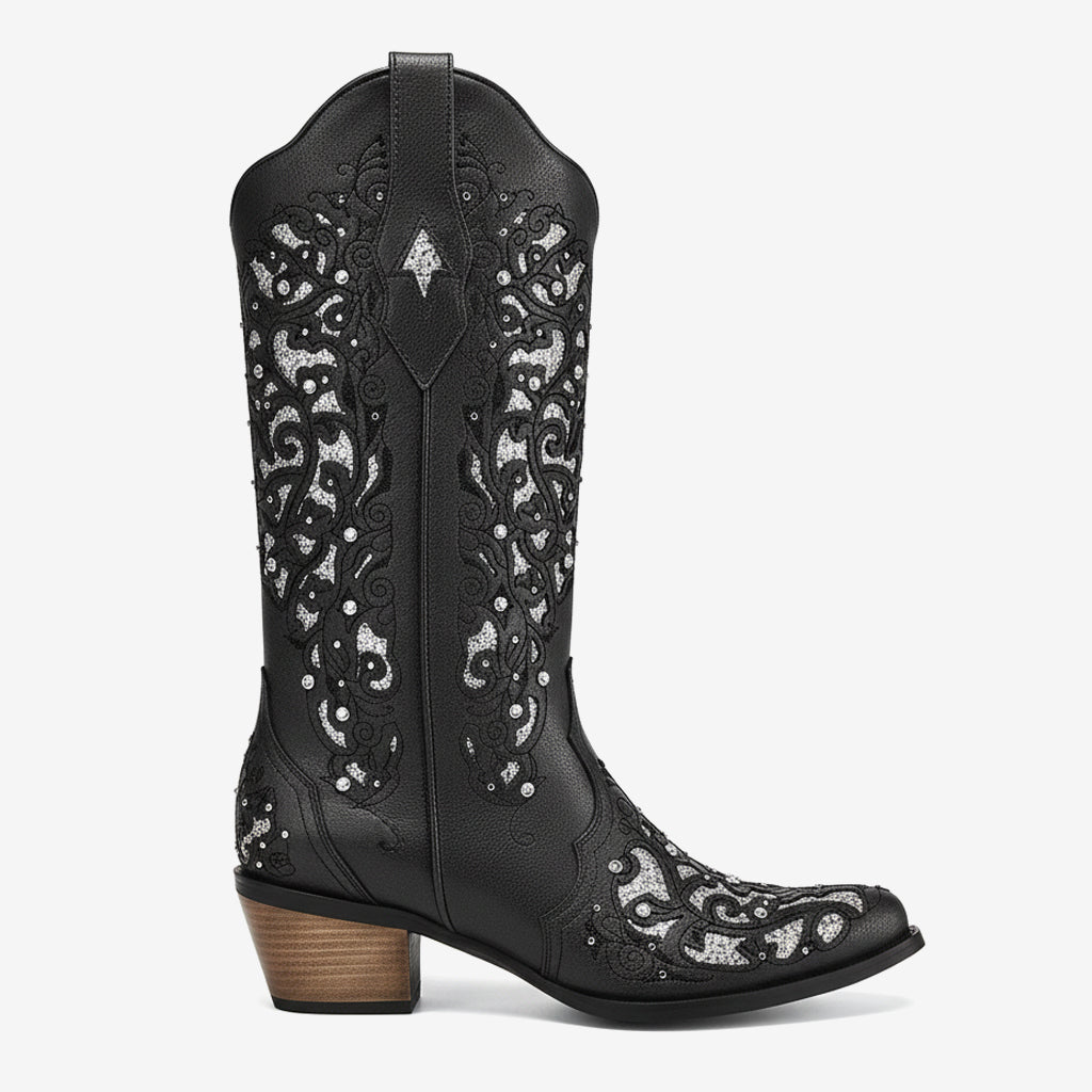 Comfortable Chunky Heel: Enjoy all-day comfort with a 1.97-inch low chunky heel on these Cowboy Boots, ideal for dancing or daily wear with sequins rhinestone cowgirl boots flair