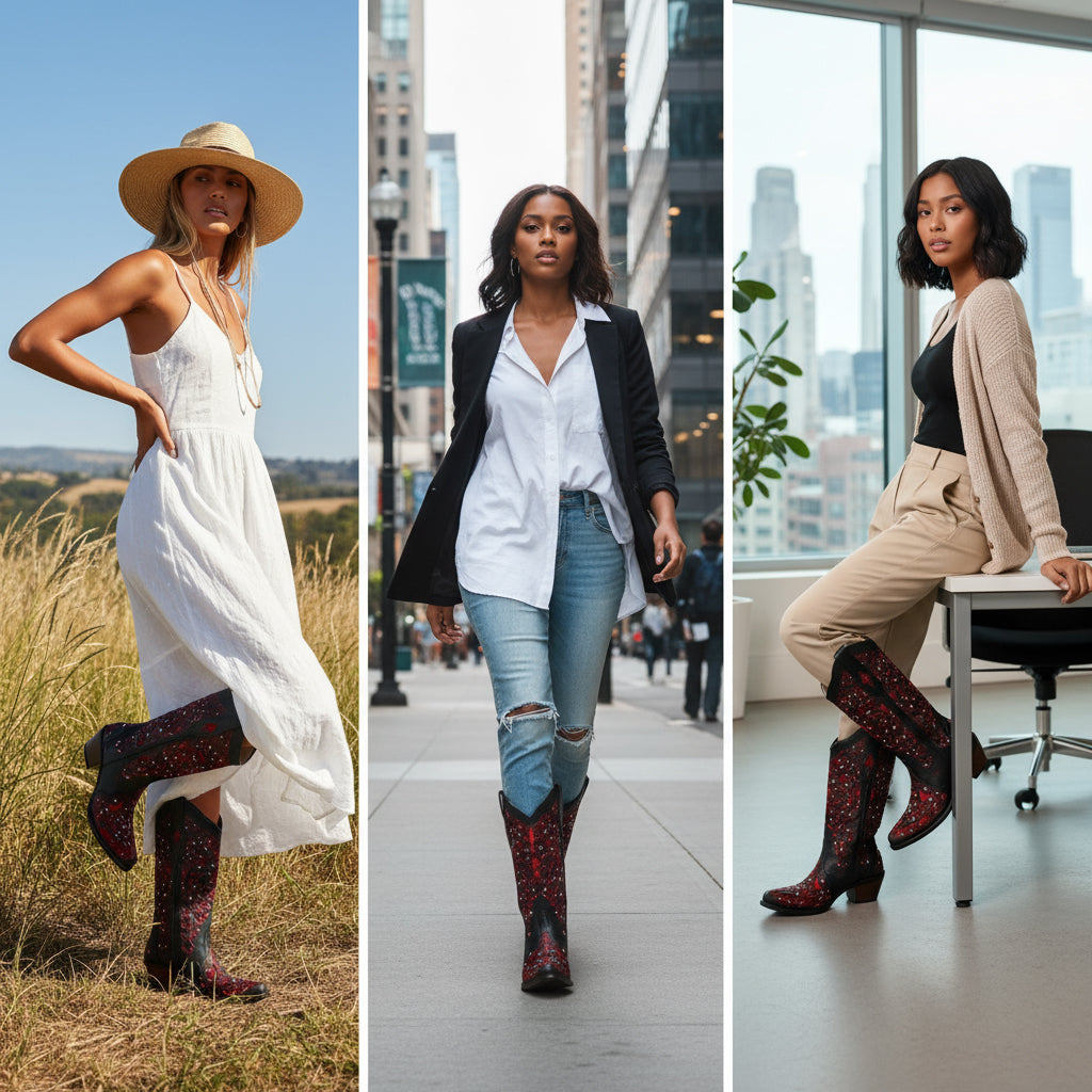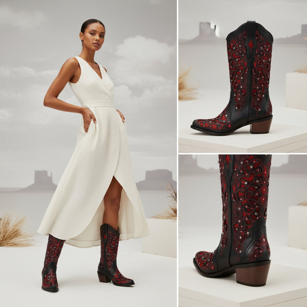 Non-Slip Rubber Sole: These cowgirl boots feature a wear-resistant, non-slip rubber sole, ensuring secure footing for Cowboy Boots versatility across occasions