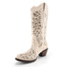 Dazzling Cowboy Boots Design: These sequins rhinestone cowgirl boots feature a white mid-calf square-toe style, perfect for weddings or festivals