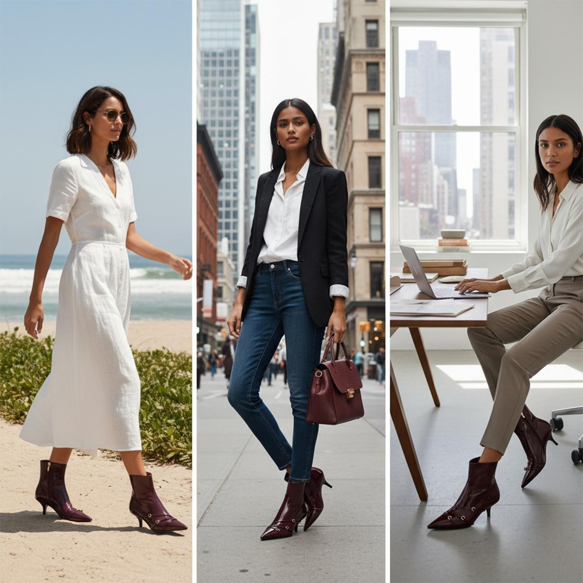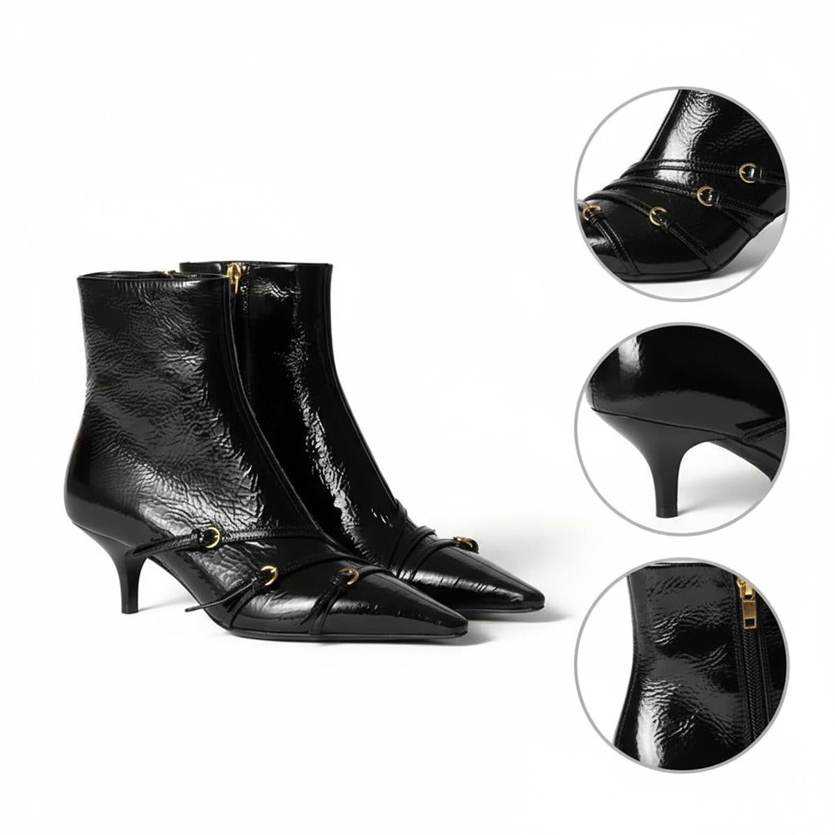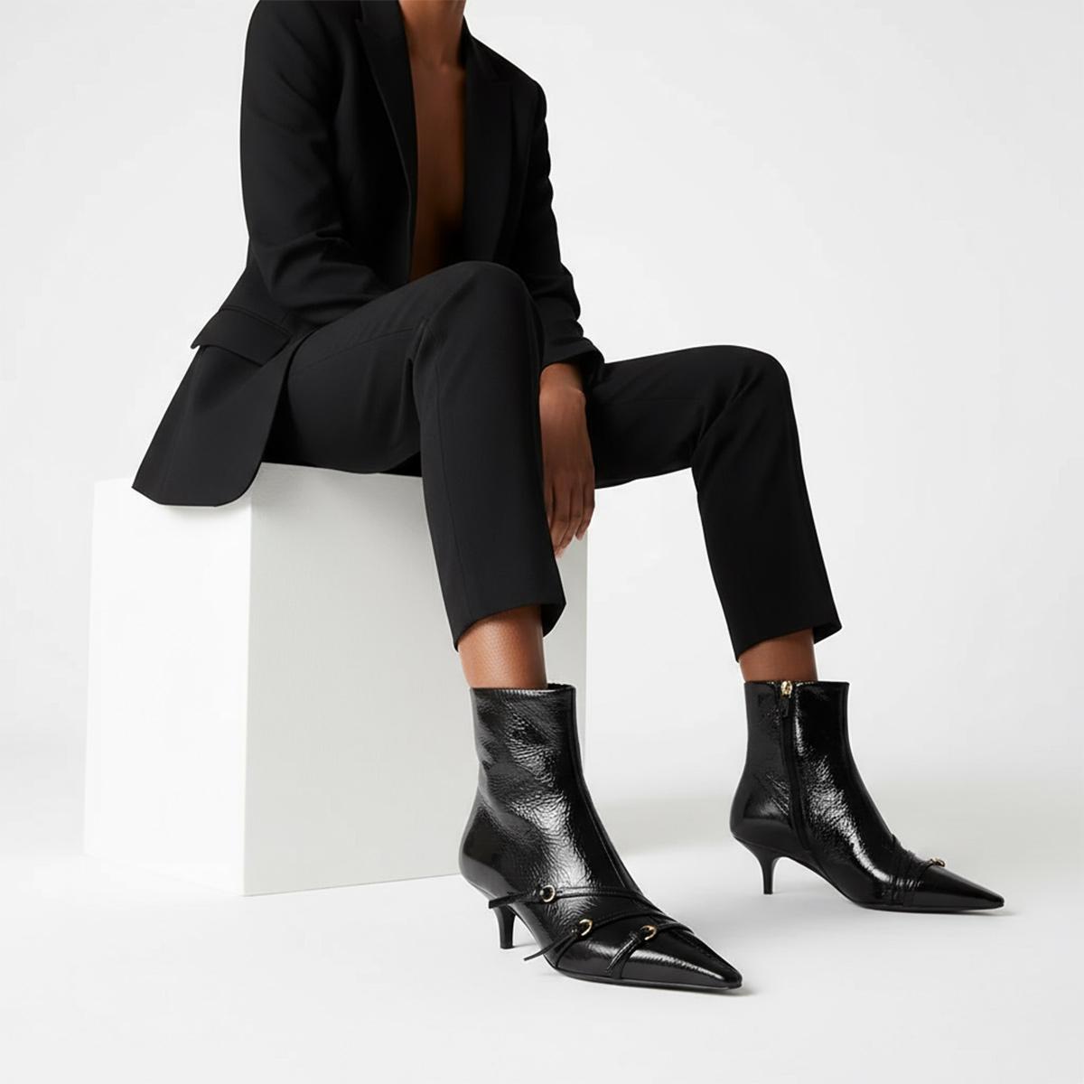4. **Stylish Versatility**: With a chic pointed toe and elegant kitten heel, these ankle boots complement any outfit—be it for a night out, the office, or everyday errands. With a height that supports your ankles yet maintains a sleek silhouette, they are ideal for any season.