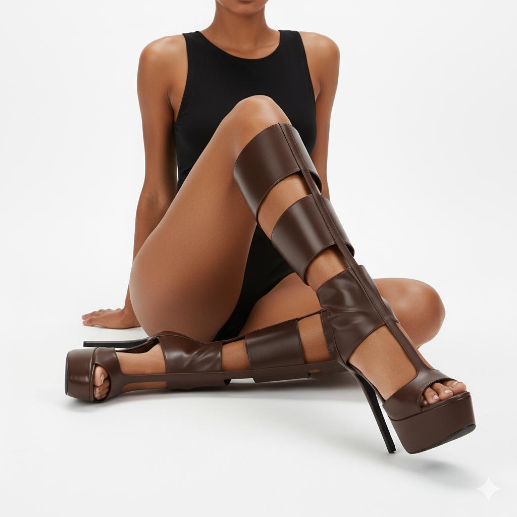 Knee-High Design: The elegant knee-high style adds a touch of sophistication, making these sandals perfect for summer outings and special occasions.