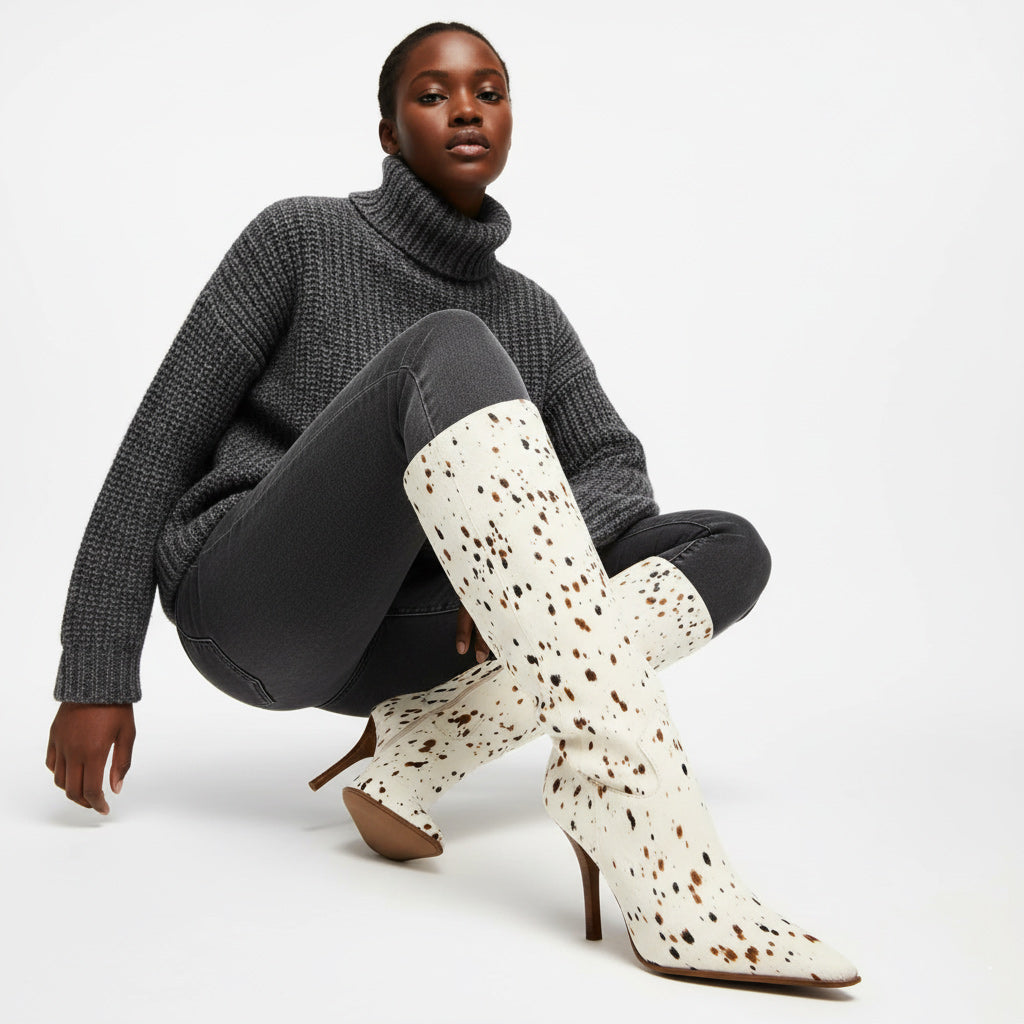 Discover our chic knee-high boots, designed for the modern woman who values both style and functionality. Crafted from premium imitation suede, these boots feature a unique graphic print and zipper detail that elevate every outfit. The combination of sophisticated design and quality materials ensures you stand out on any occasion.