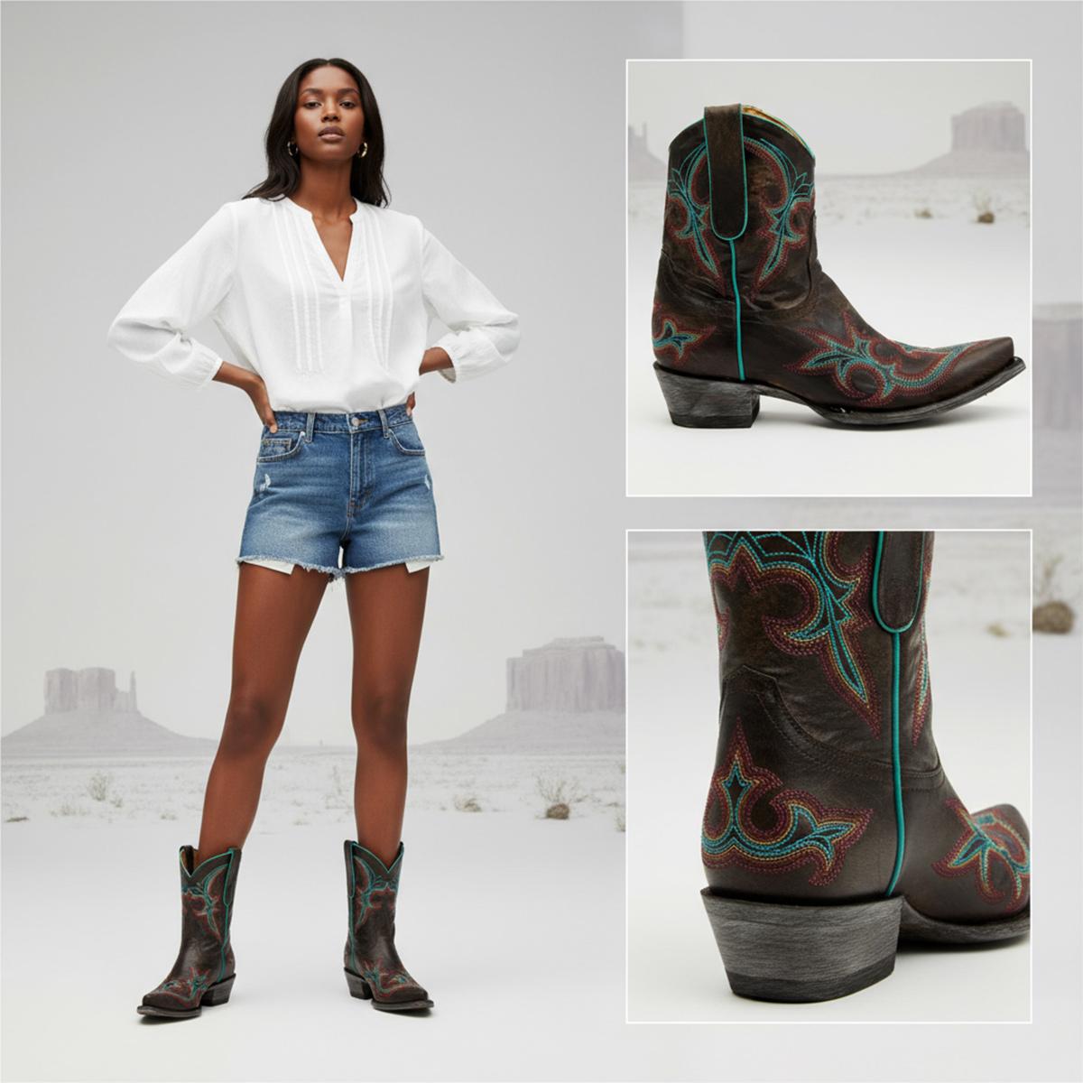 Elevate your wardrobe with our Fashion Western Ankle Boots for Women, crafted with premium full-grain leather and featuring unique floral embroidery. These boots are designed for those who appreciate handcrafted quality and timeless style. Each pair is expertly hand-finished, ensuring you receive a product that embodies attention to detail and lasting durability.