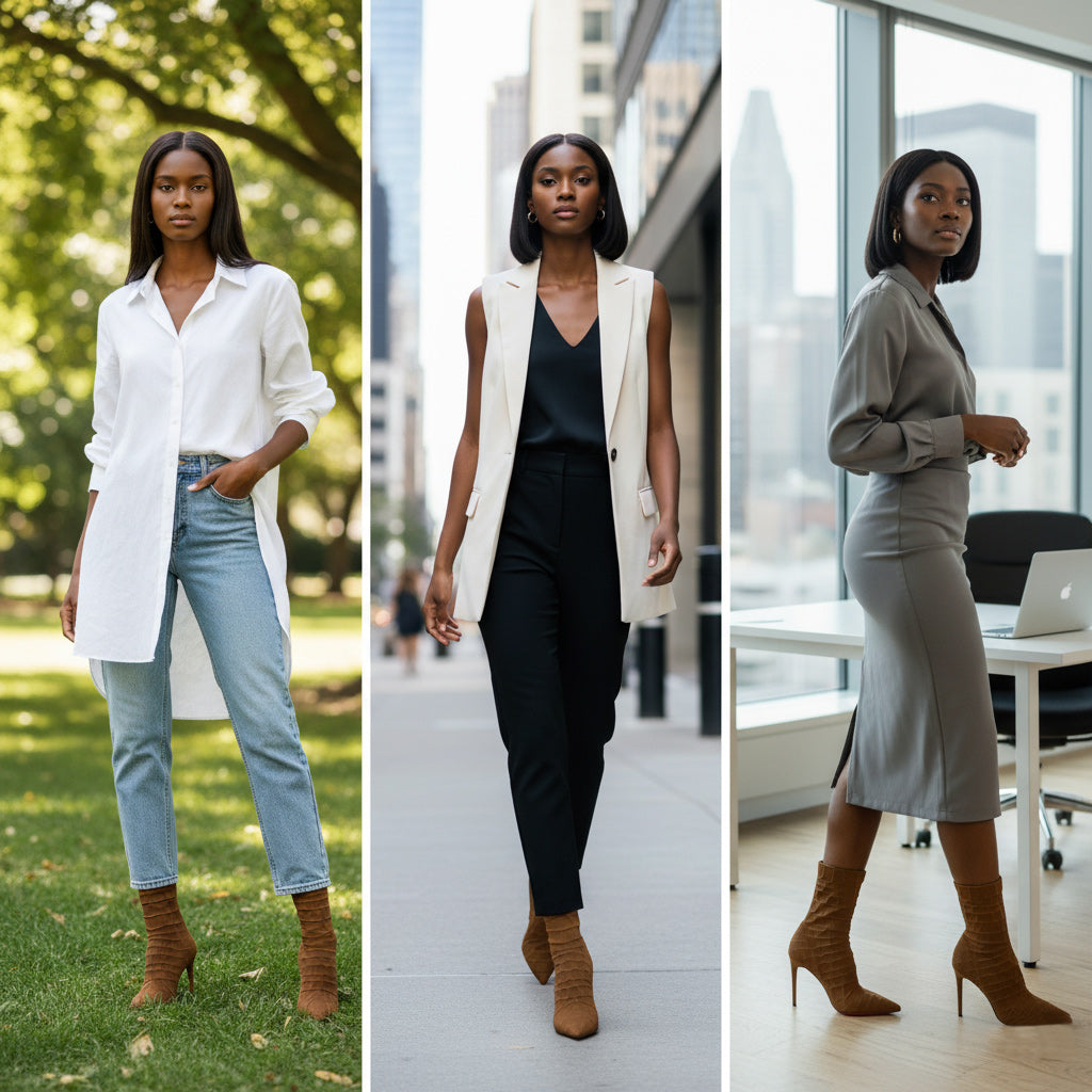Available in classic solid colors, these fashionable ankle boots can be effortlessly paired with your favorite dresses or tailored pants. Whether it’s a night out or a casual brunch, step out in confidence with our chic ankle boots.