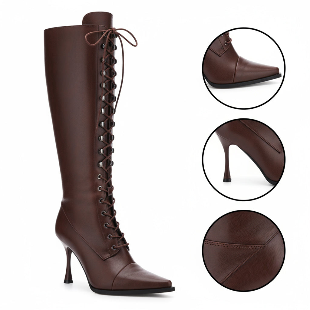 Discover the perfect blend of elegance and comfort with our stunning High Heeled Fashion Boots. Crafted with meticulous attention to detail, these boots feature a unique lace-up design and adjustable buckle that not only enhances their striking aesthetic but also offers a customizable fit. The premium exterior complements an eye-catching pointed toe, making these boots a versatile addition to any fashion-forward wardrobe.