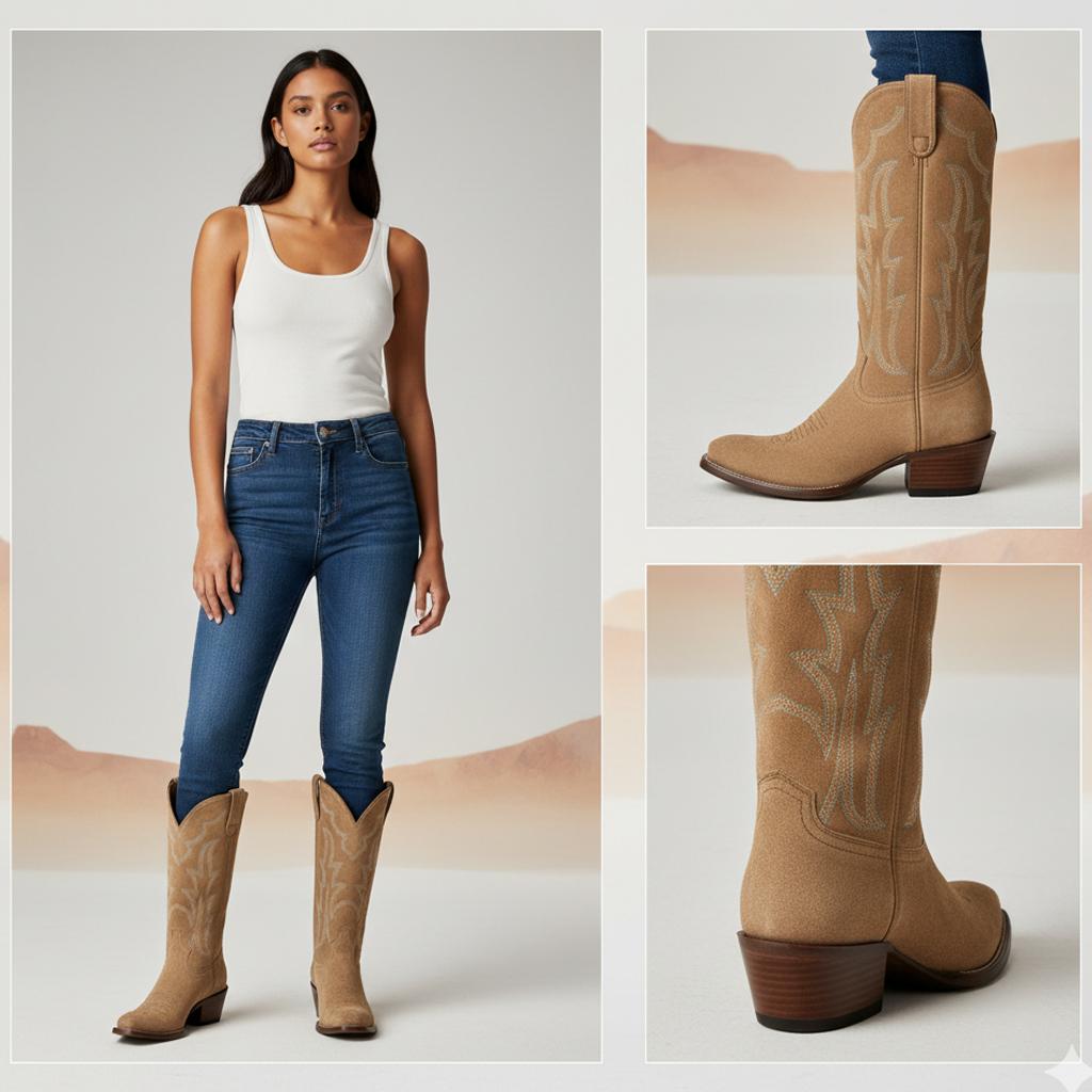 Our Faux Suede Western Ankle Boots for women are expertly crafted with attention to detail, featuring vibrant, colorful embroidery that enhances their unique charm. Each pair is hand-finished to ensure a premium quality that stands out.