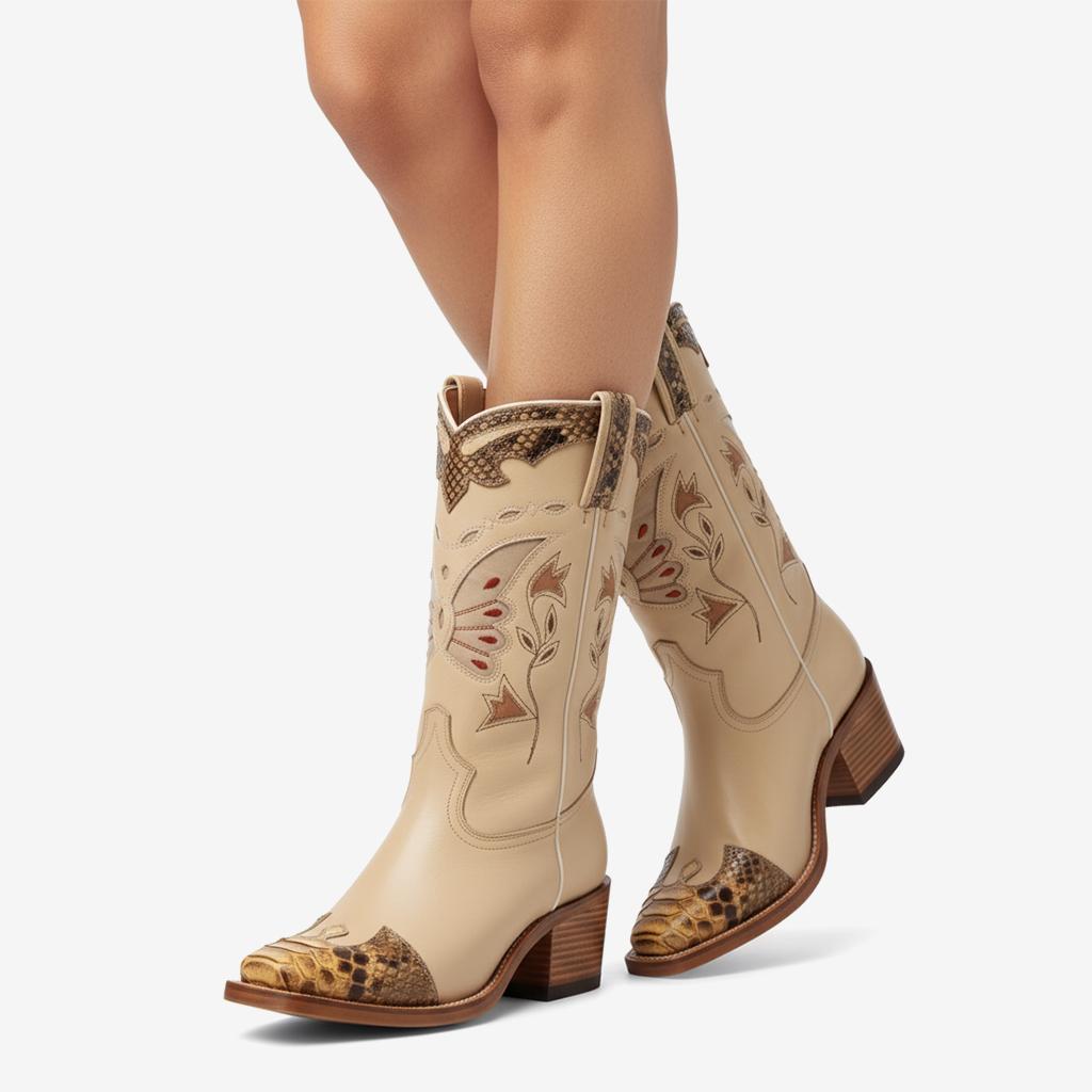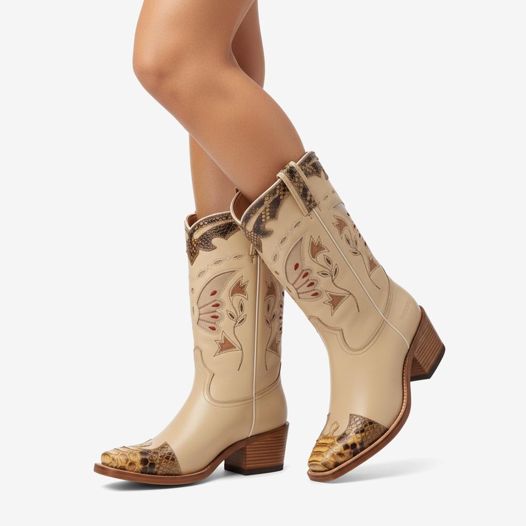 Introducing our Floral Embroidered Retro Mid-Calf Boots, beautifully handcrafted with premium genuine leather and a stunning floral design. These boots reflect a unique craftsmanship that combines style with durability, ensuring that each pair is made with attention to detail.