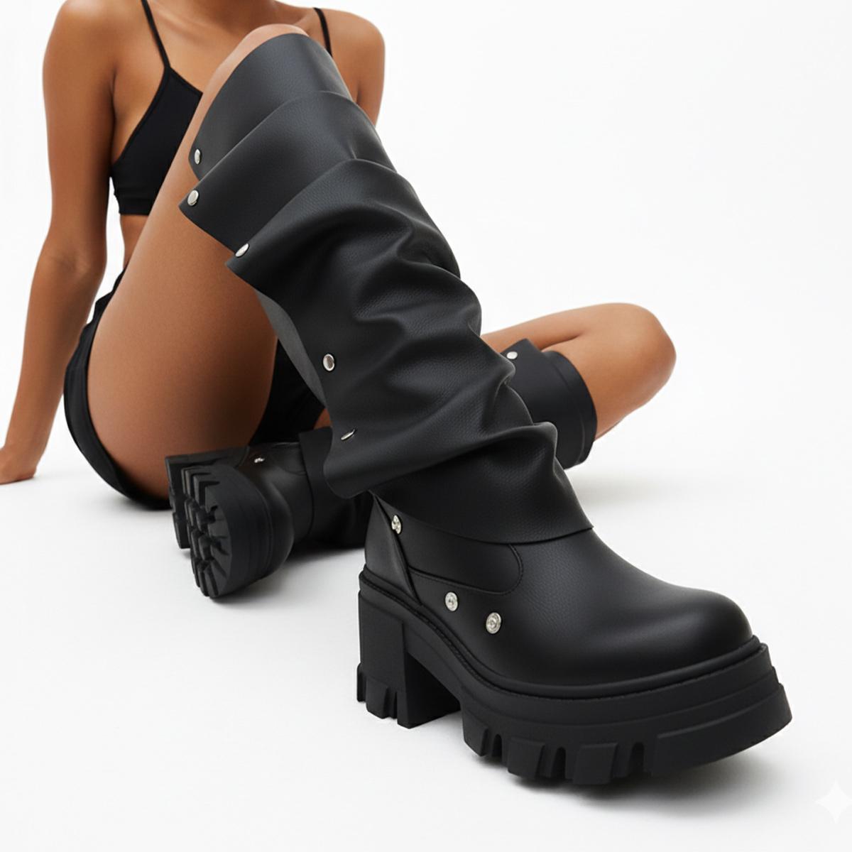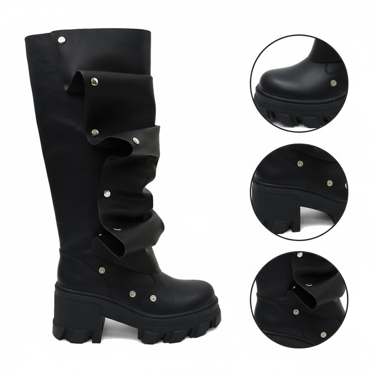 Step into the spotlight with our Gothic Knee-High Boots, meticulously crafted from genuine full-grain leather. These boots embody unique craftsmanship, ensuring not just style but lasting quality for the discerning fashionista.