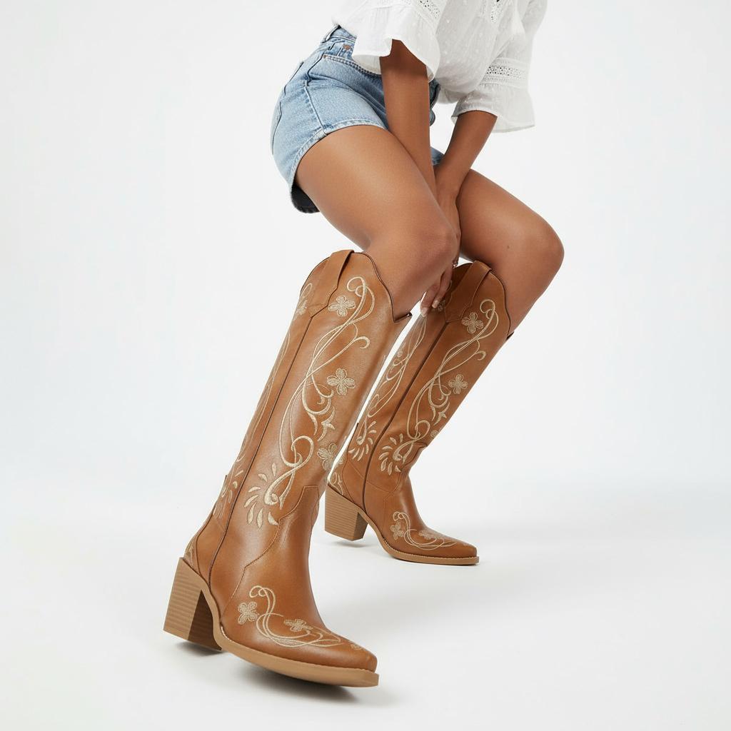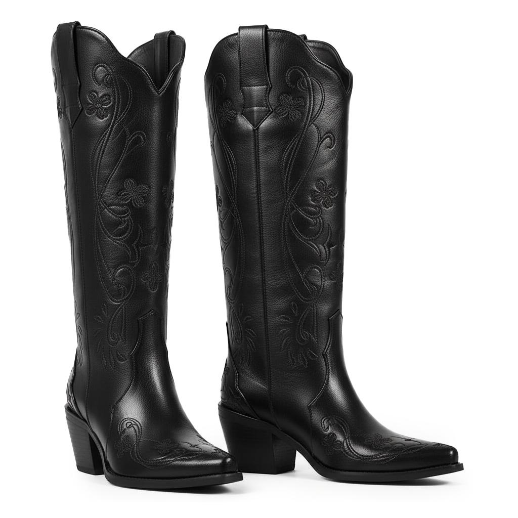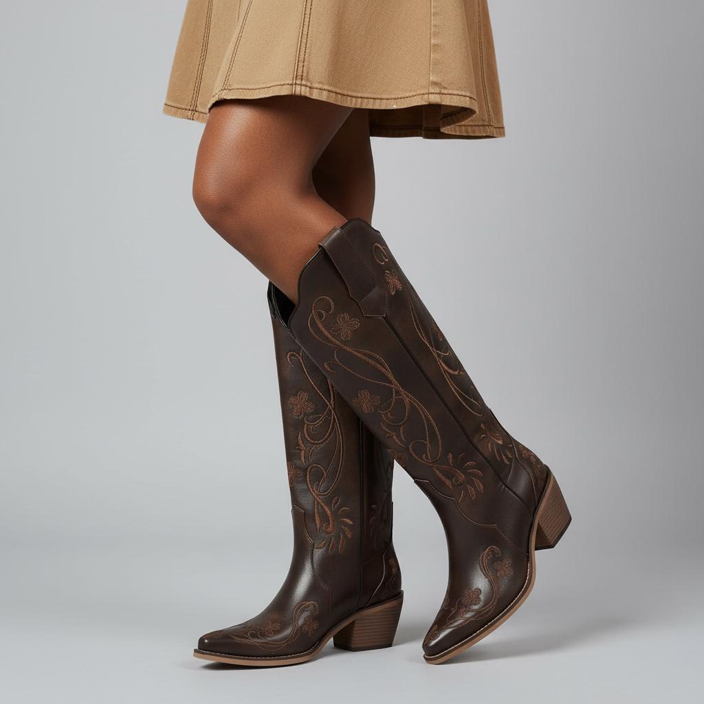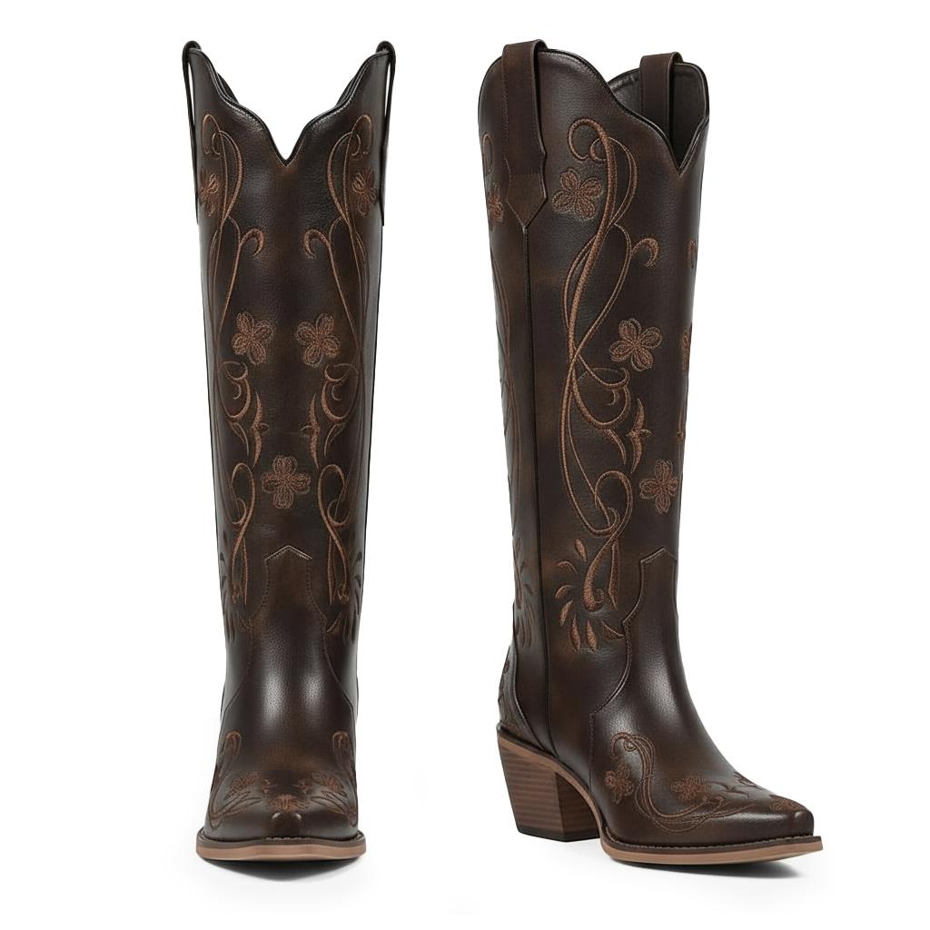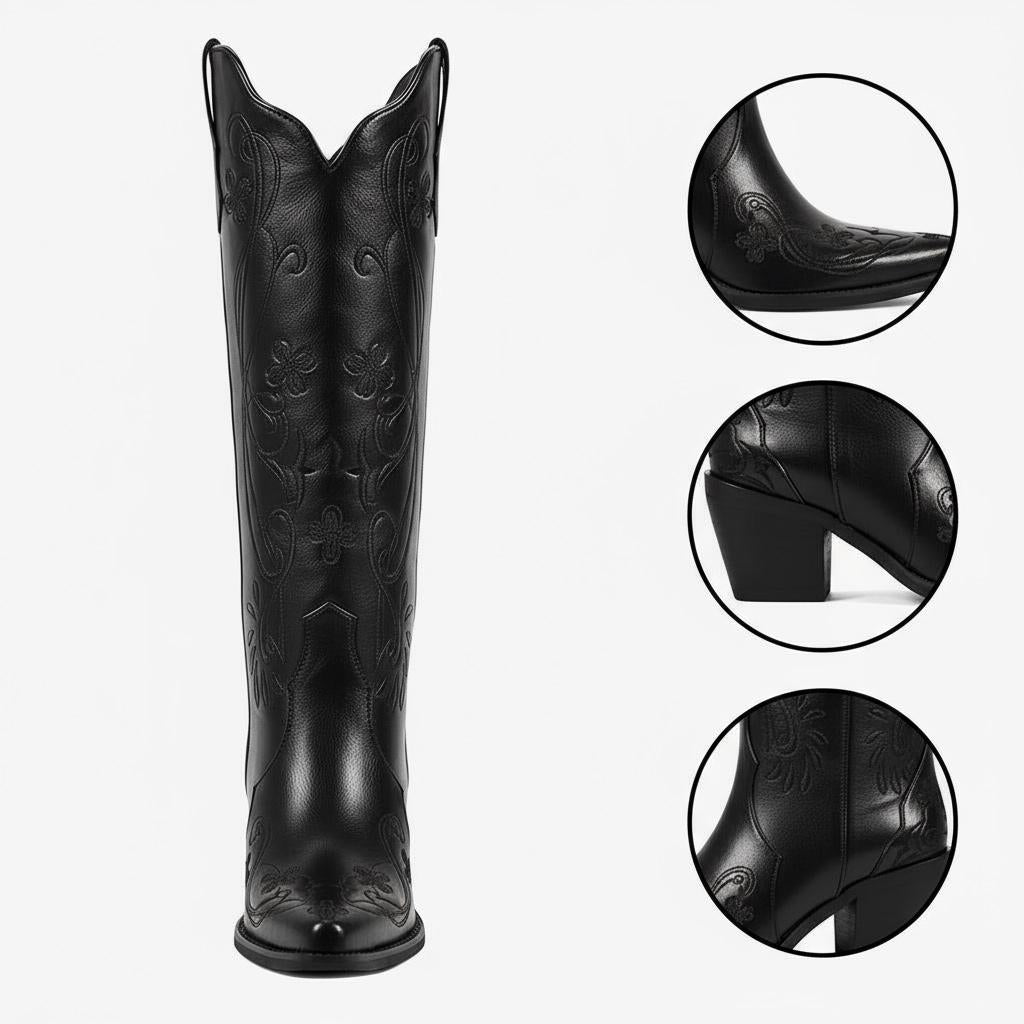 Discover the Artistry of Our Western Floral Embroidered Knee-High Boots