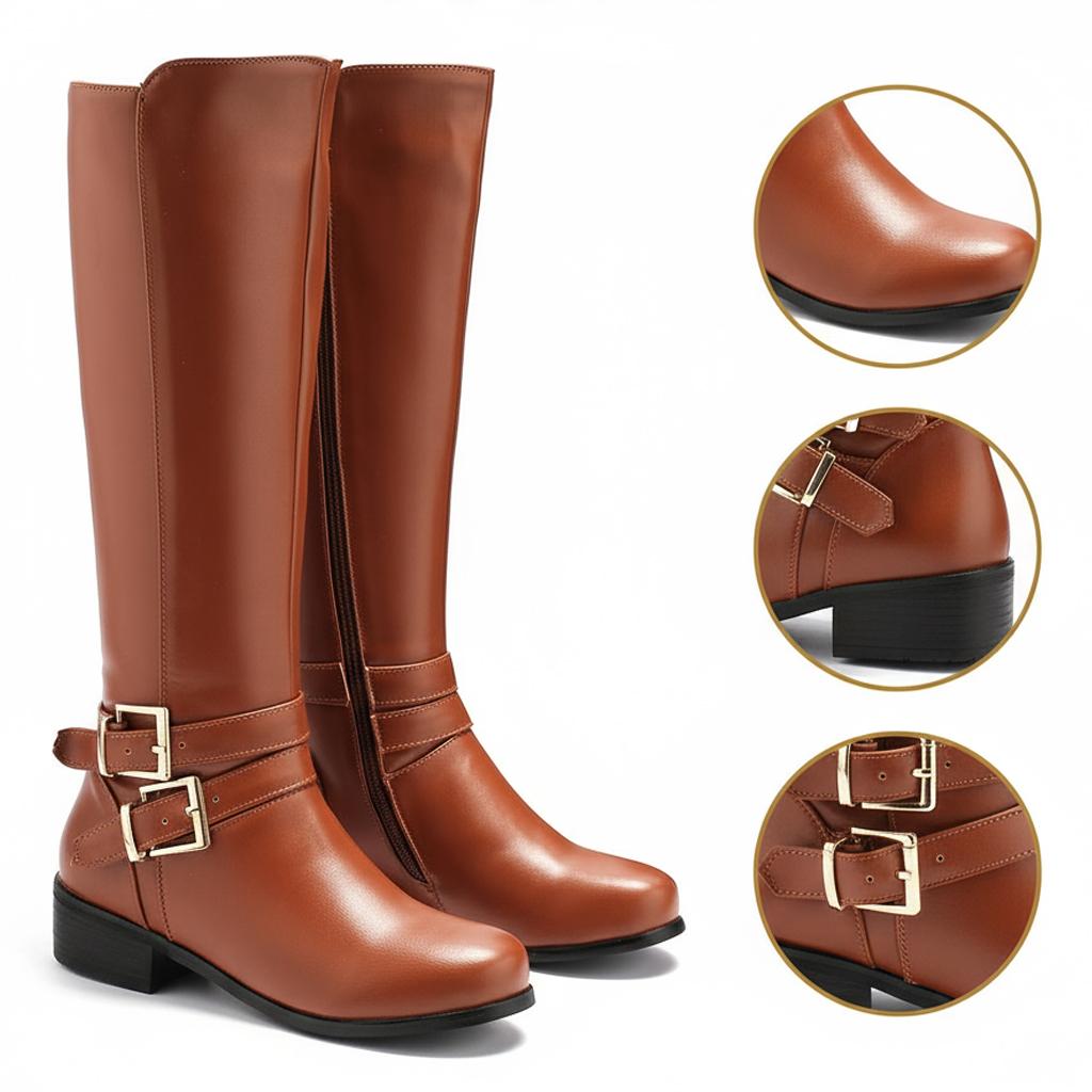 Elevate your style with our Knee High Boots for Women, featuring a classic design that embodies timeless elegance. Each pair is handcrafted with precision, utilizing premium PU material that ensures long-lasting durability and a polished finish. The adjustable buckle closure allows for a personalized fit, making these boots perfect for any occasion.