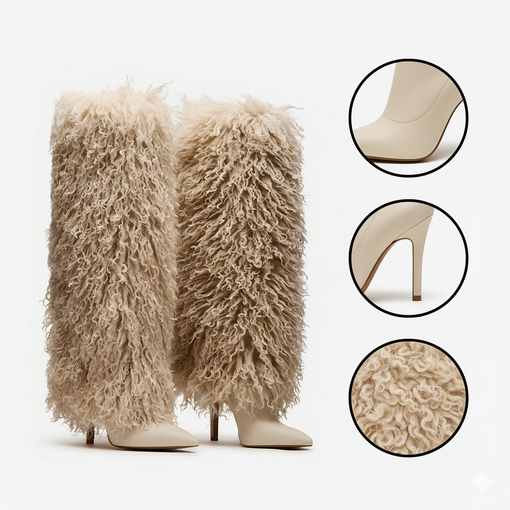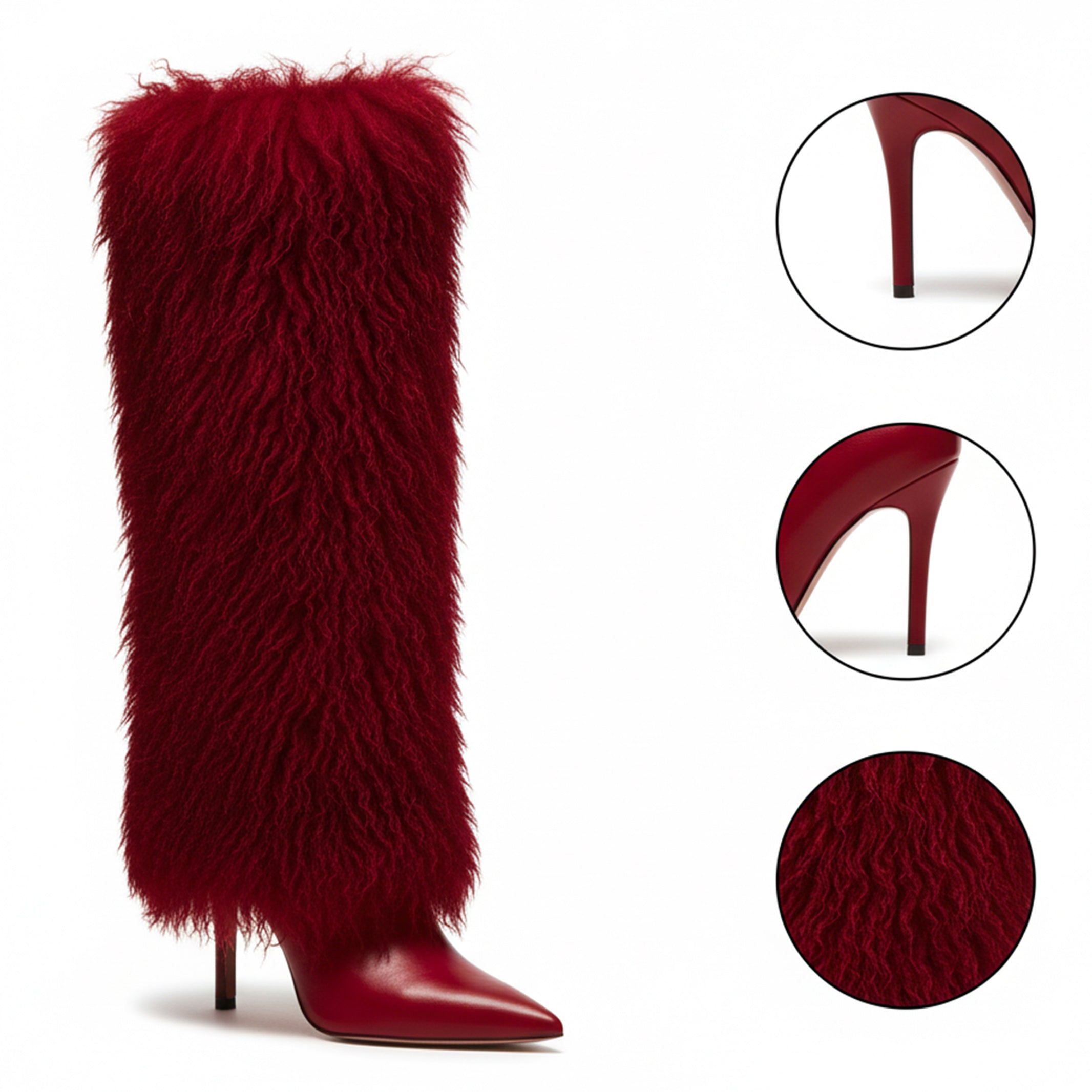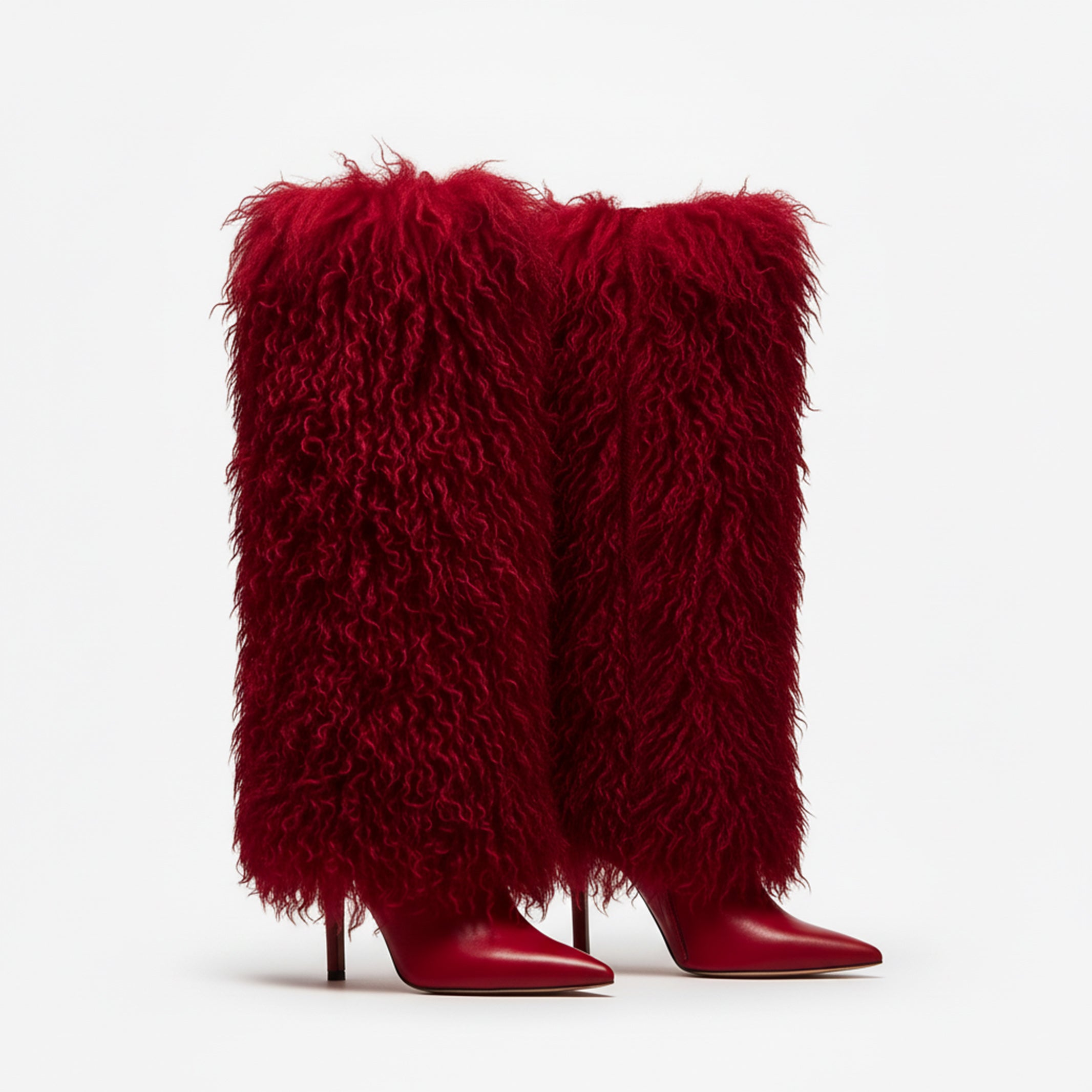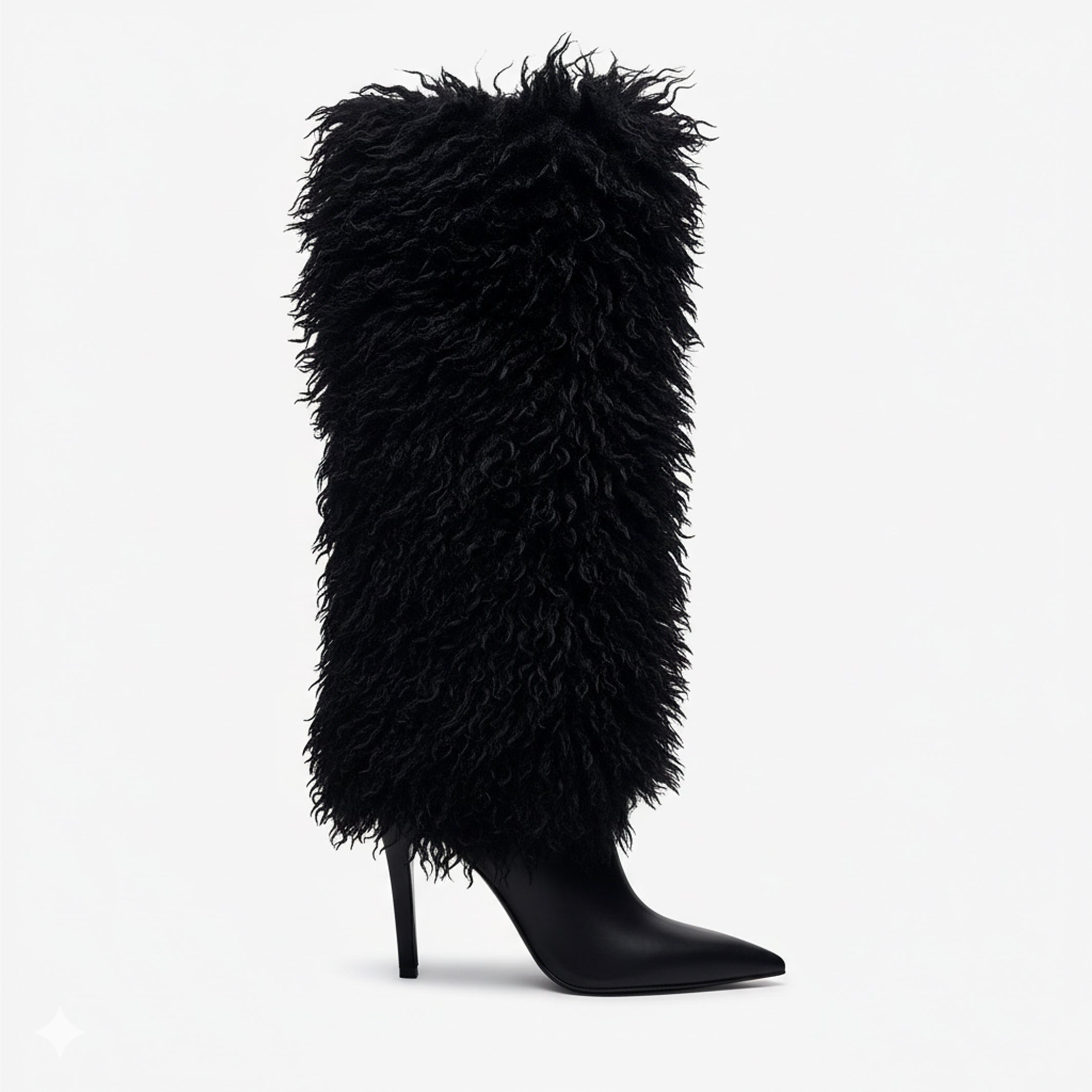 This stunning pair of knee-high boots seamlessly blends fashion and function. Crafted with exquisite faux fur and PU materials, they offer a unique design that stands out, making them perfect for runways and parties alike.