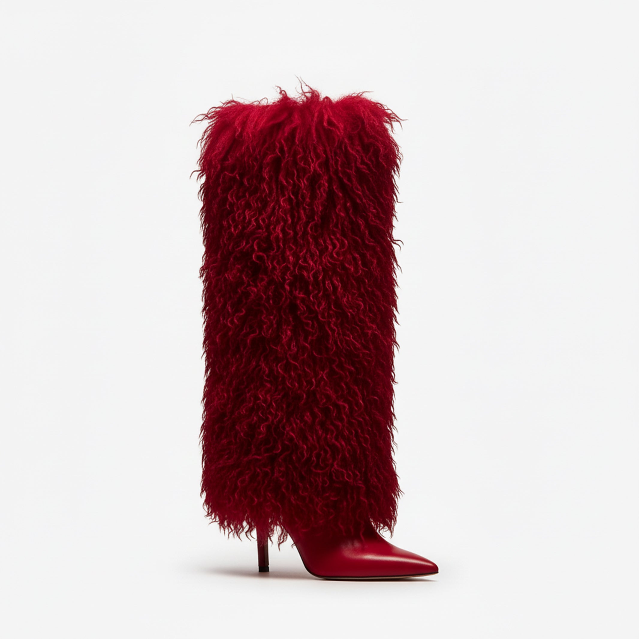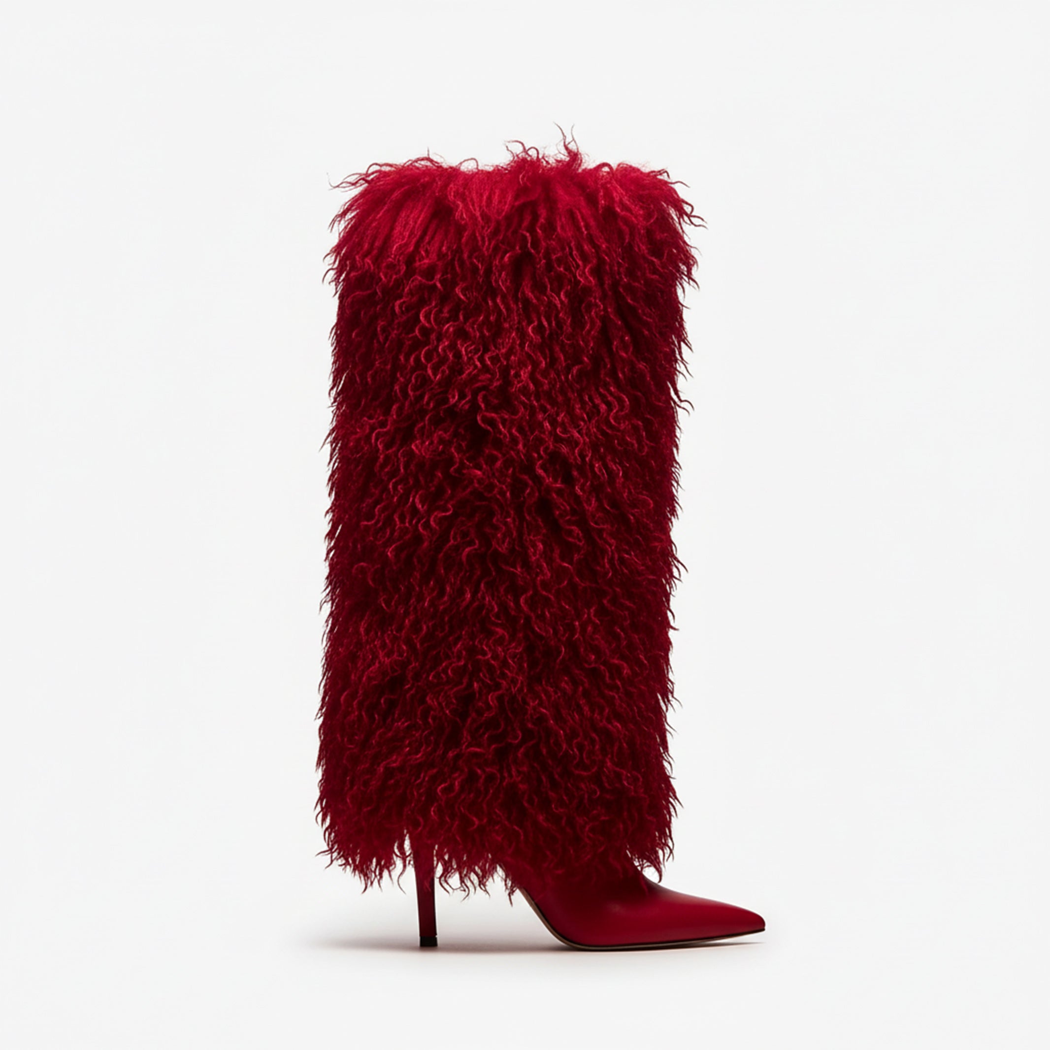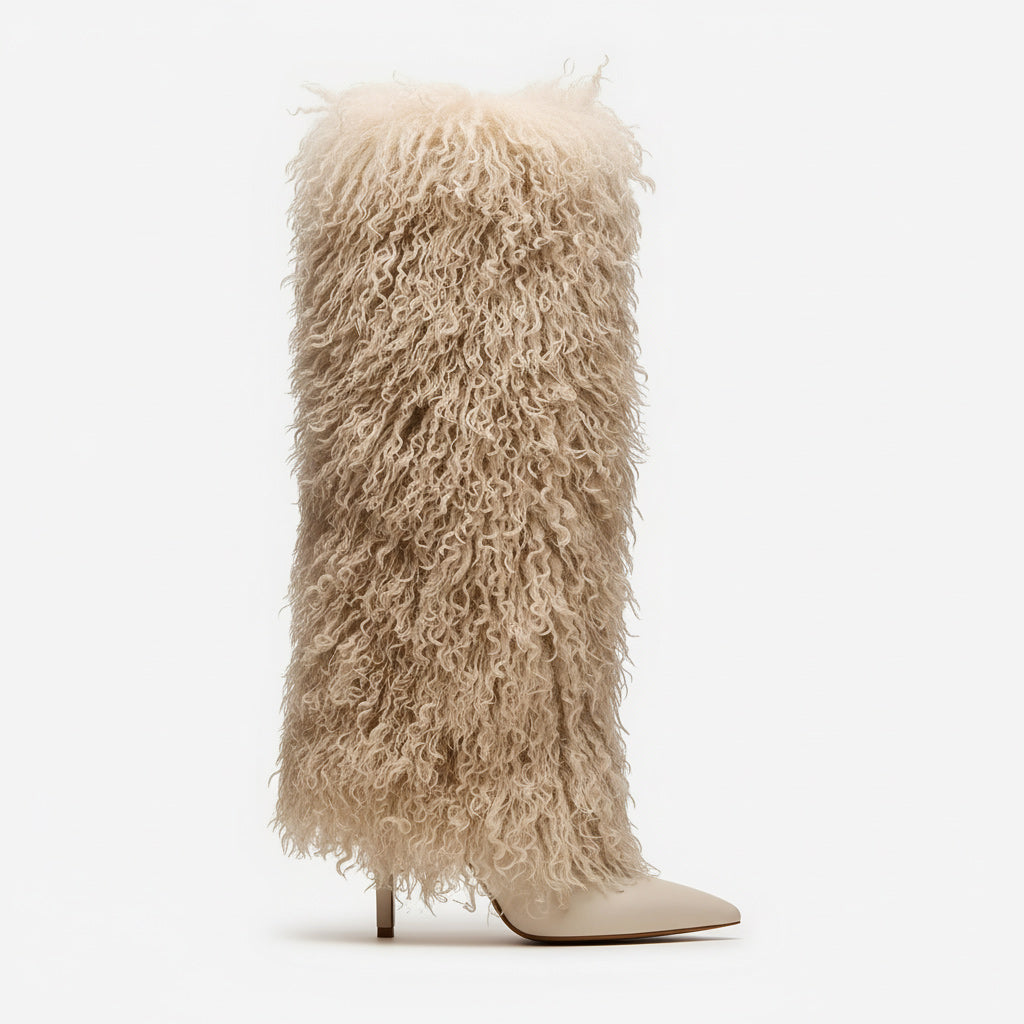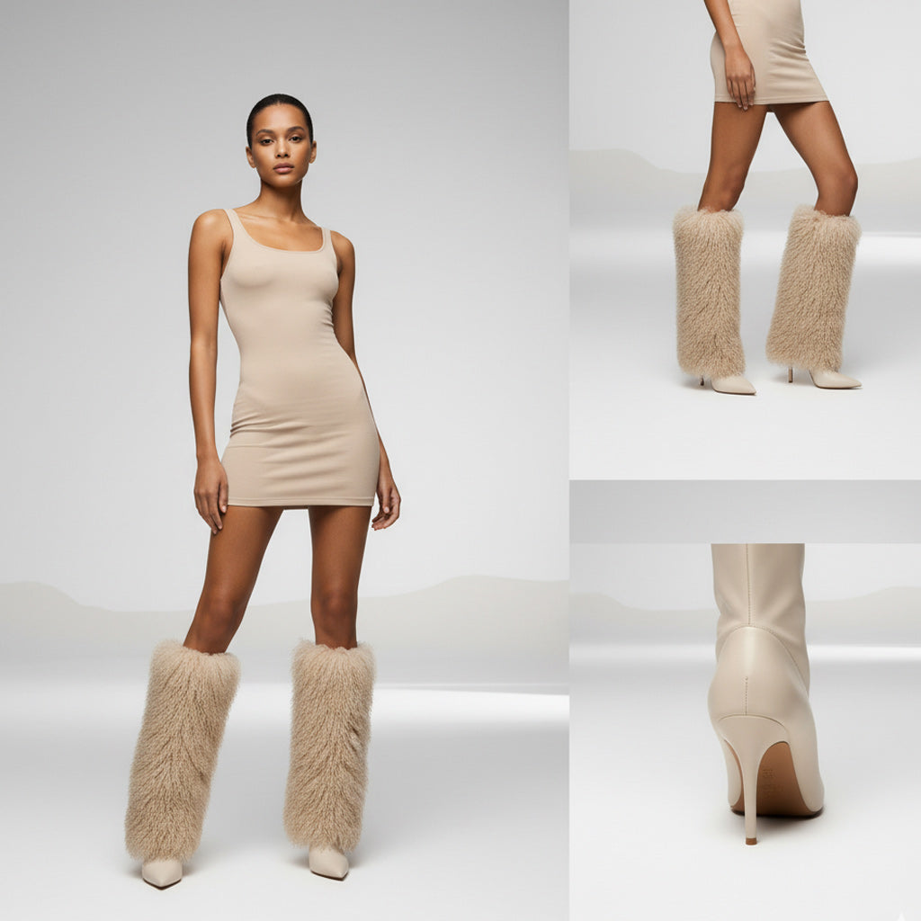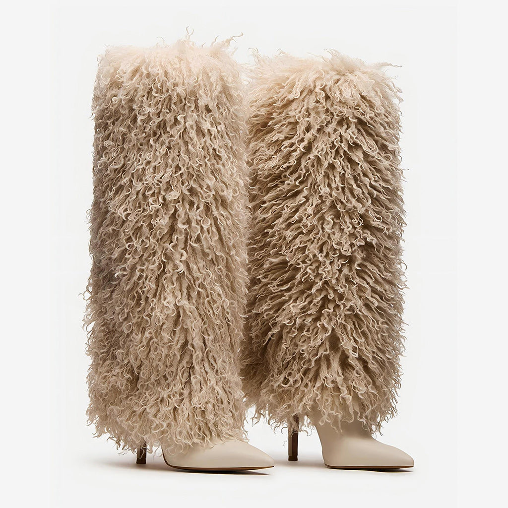 This stunning pair of knee-high boots seamlessly blends fashion and function. Crafted with exquisite faux fur and PU materials, they offer a unique design that stands out, making them perfect for runways and parties alike.