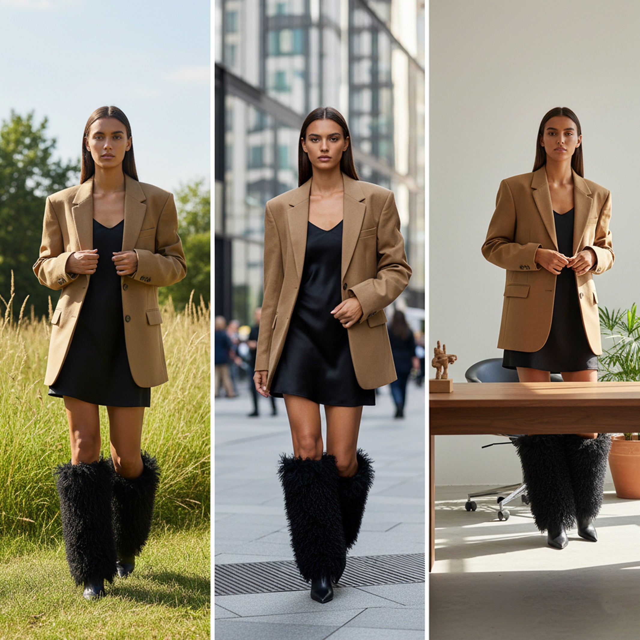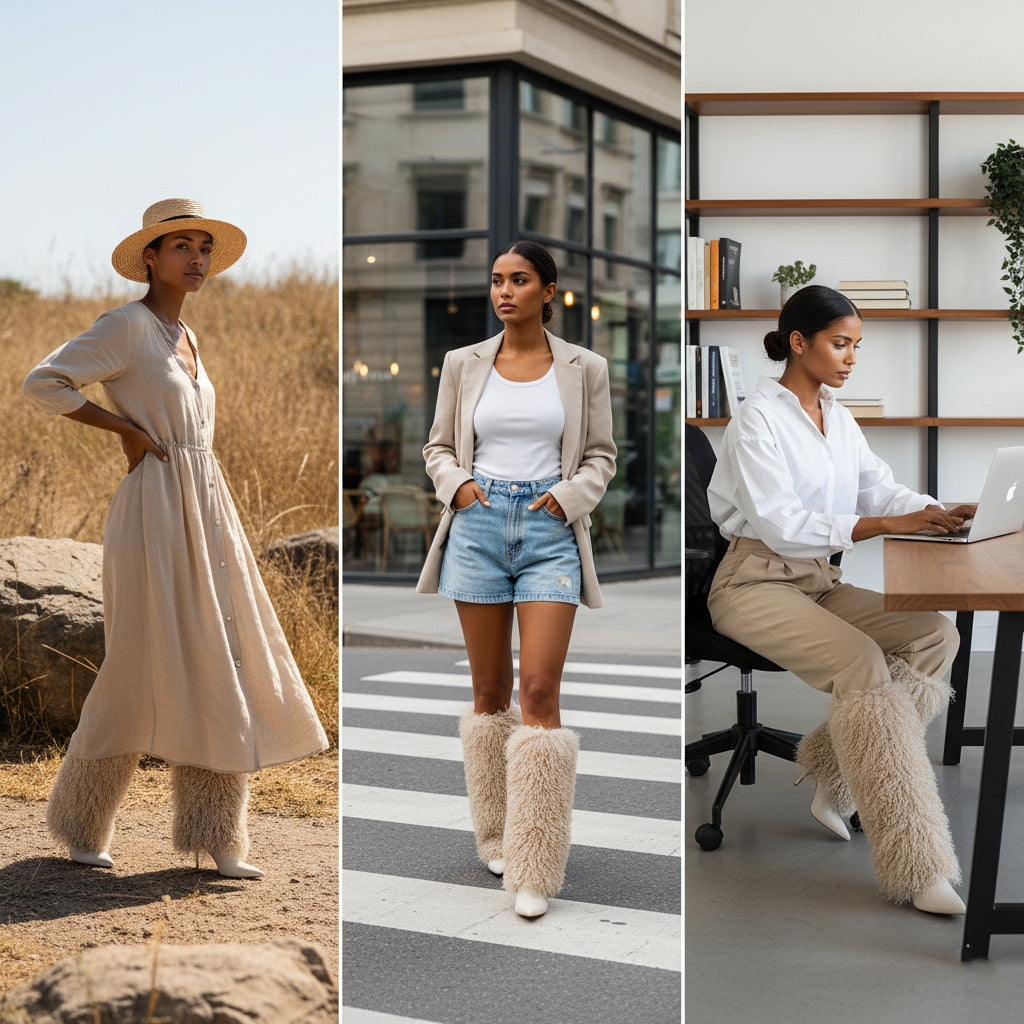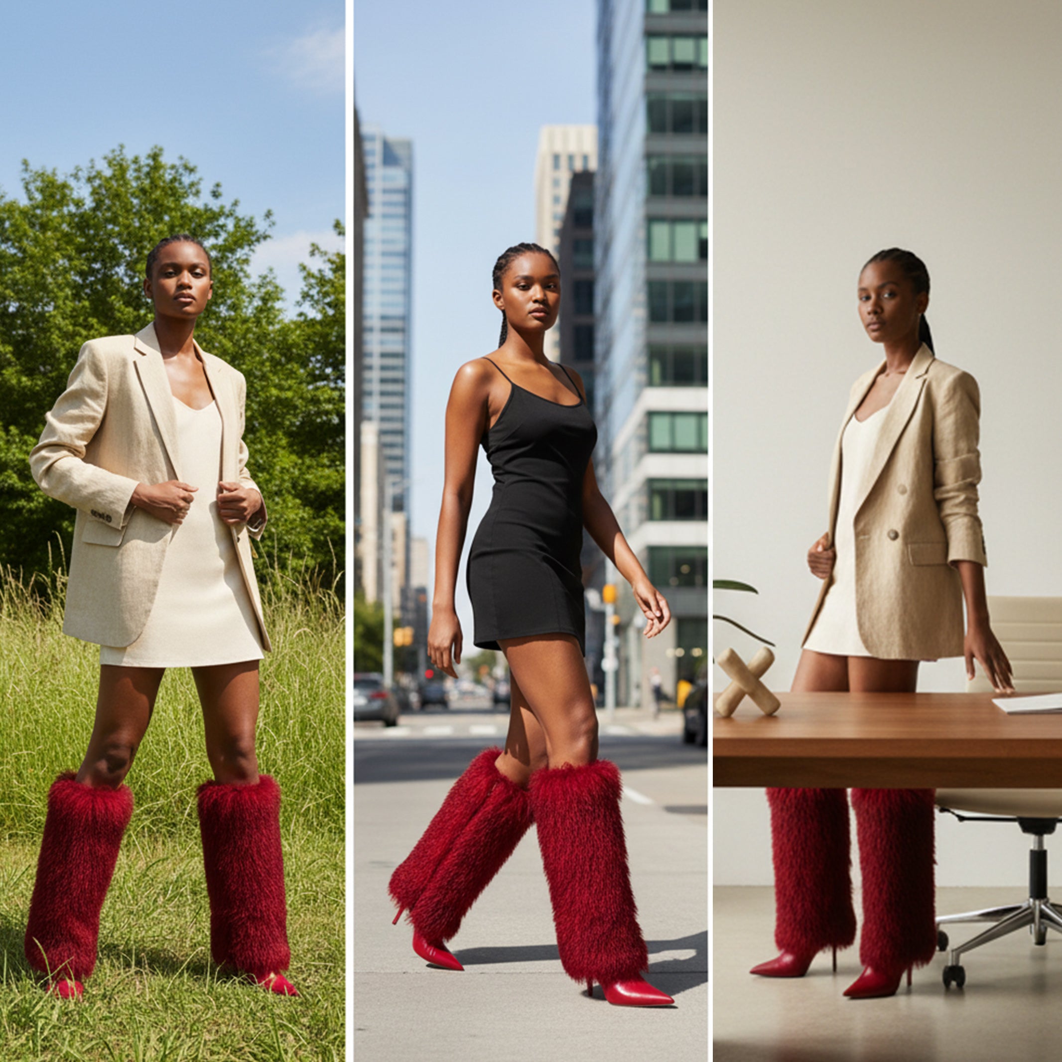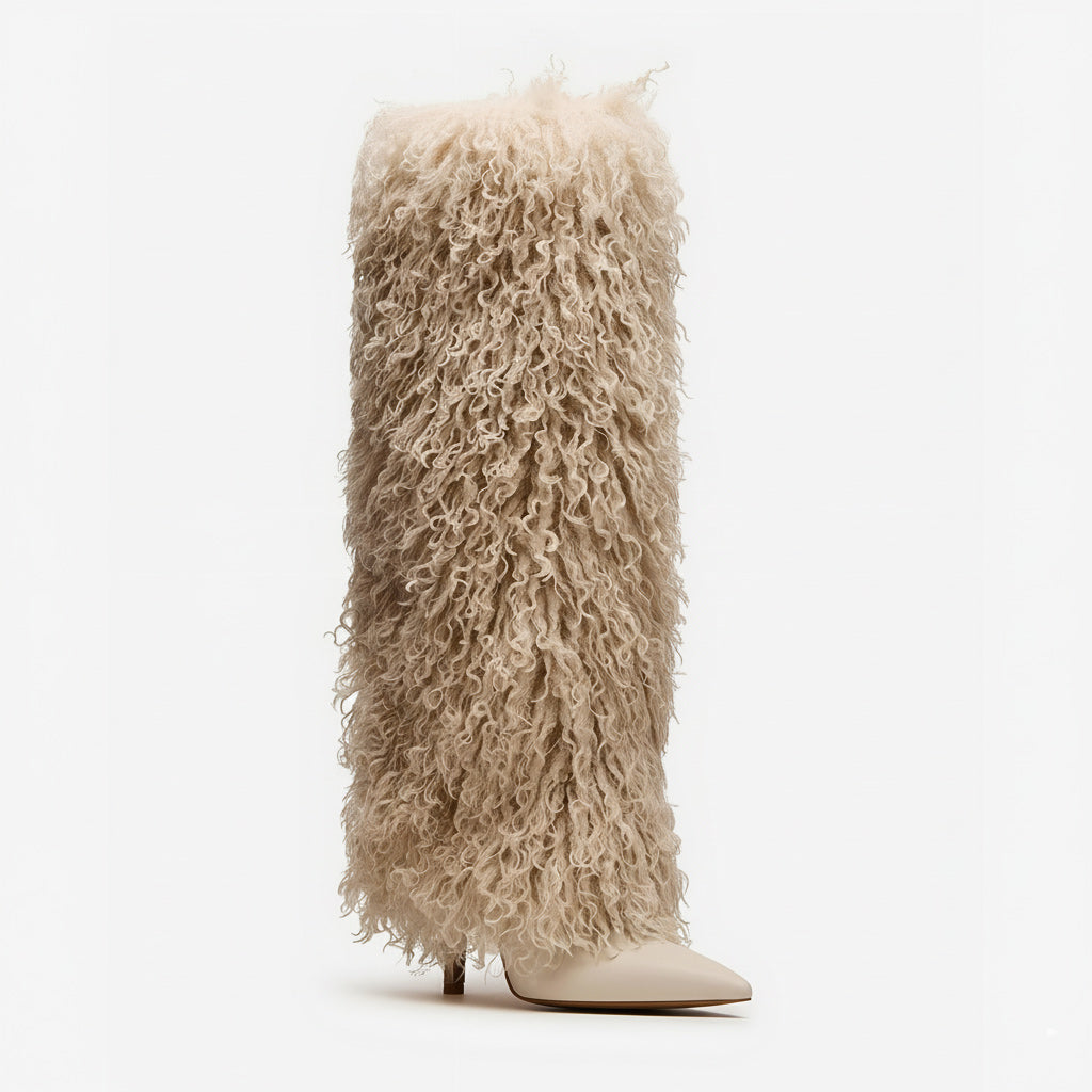 This stunning pair of knee-high boots seamlessly blends fashion and function. Crafted with exquisite faux fur and PU materials, they offer a unique design that stands out, making them perfect for runways and parties alike.