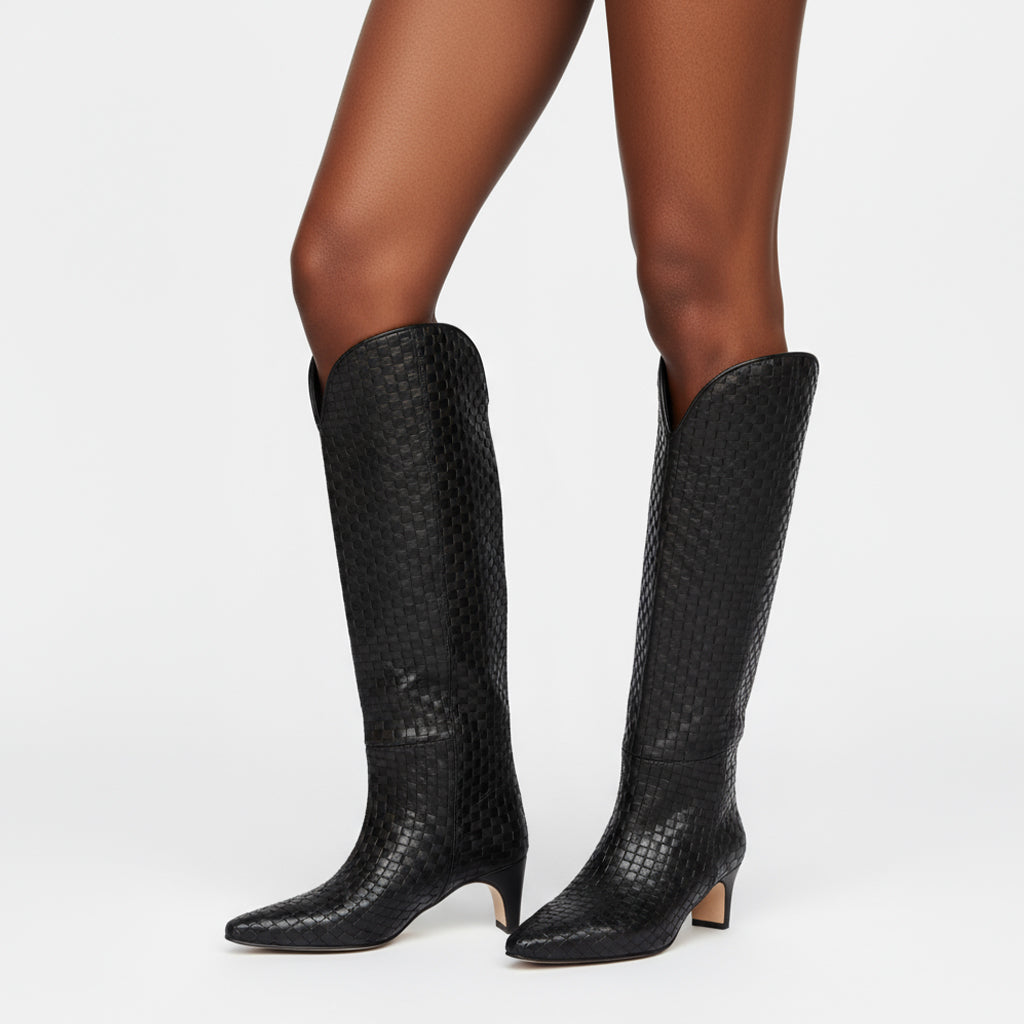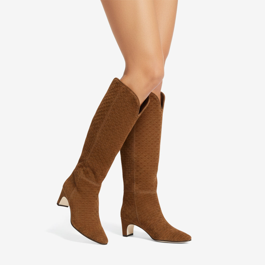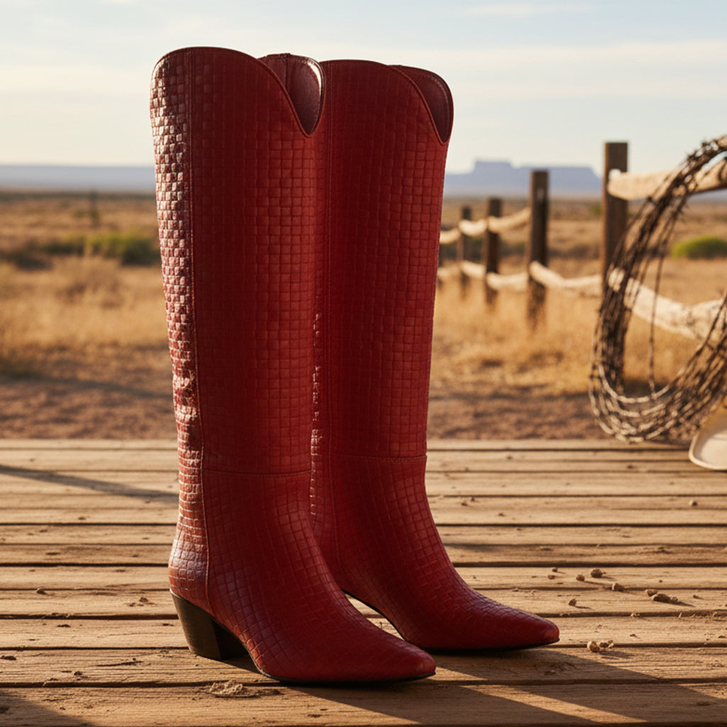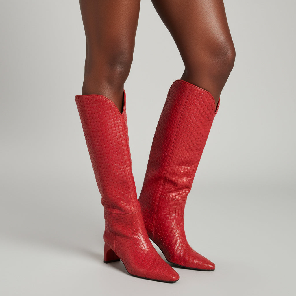 Elevate your style with our Knee High Fashion Boots for Women, expertly crafted with unique craftsmanship. The exquisite woven pattern adds a touch of sophistication, while the hand-finished details ensure every pair is made with precision and care. These boots showcase a perfect blend of aesthetics and functionality, making them an essential addition to your wardrobe.