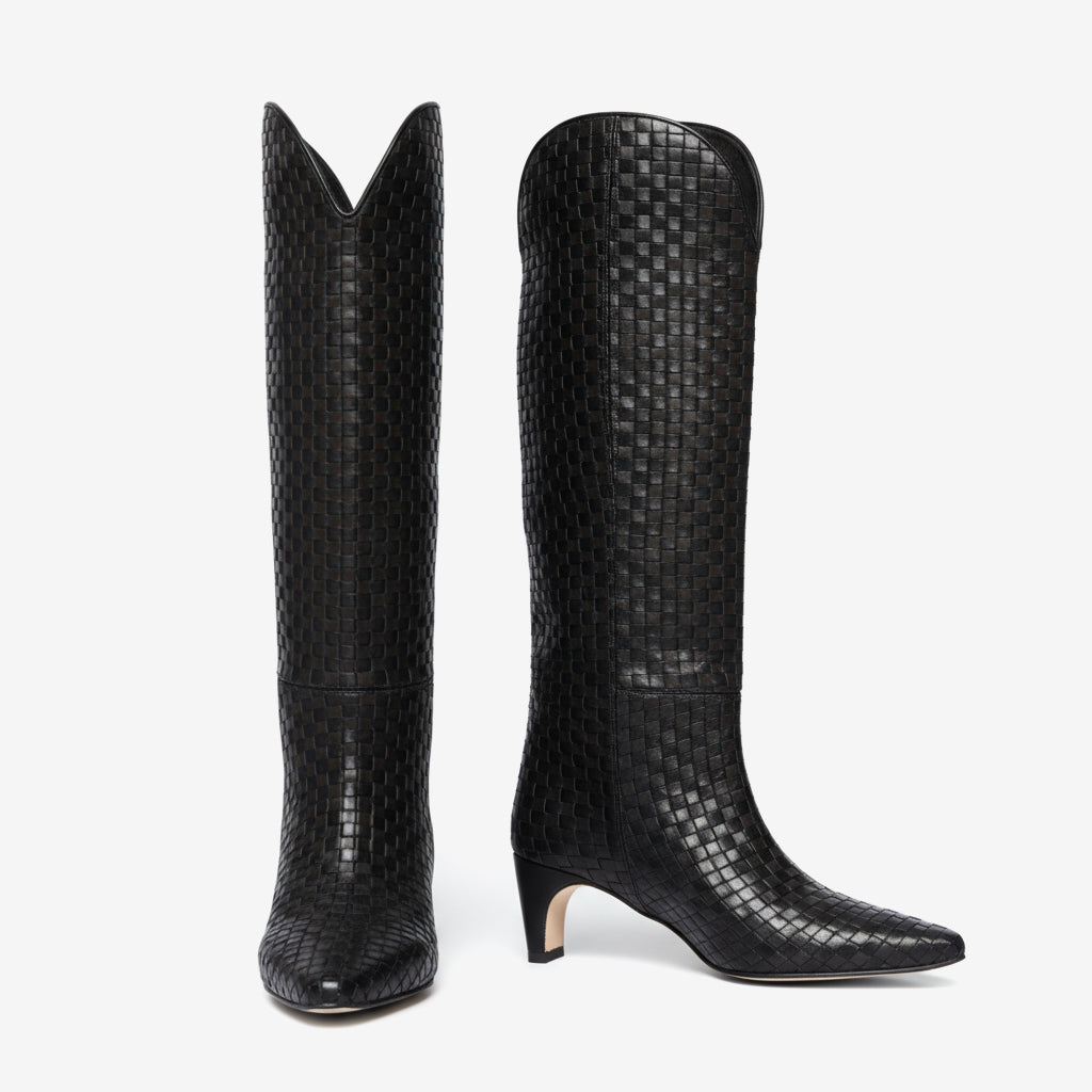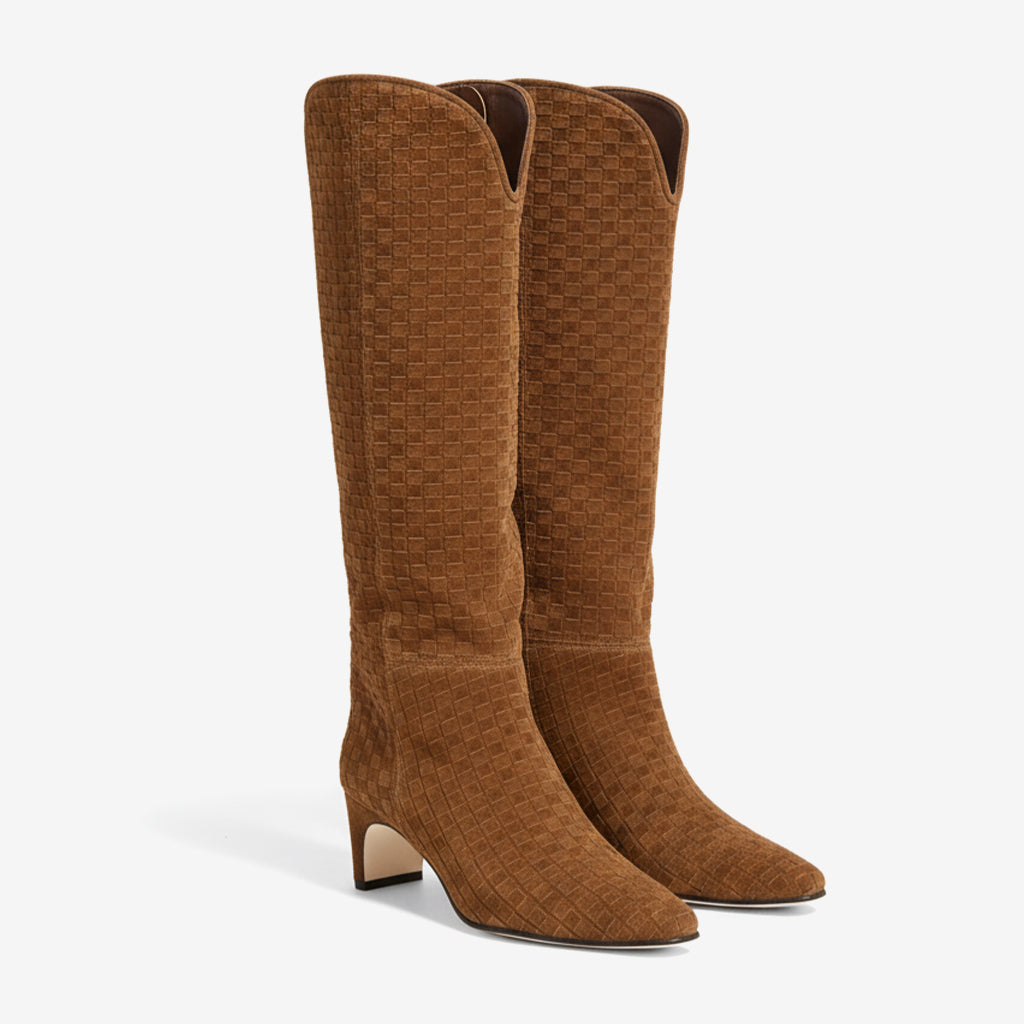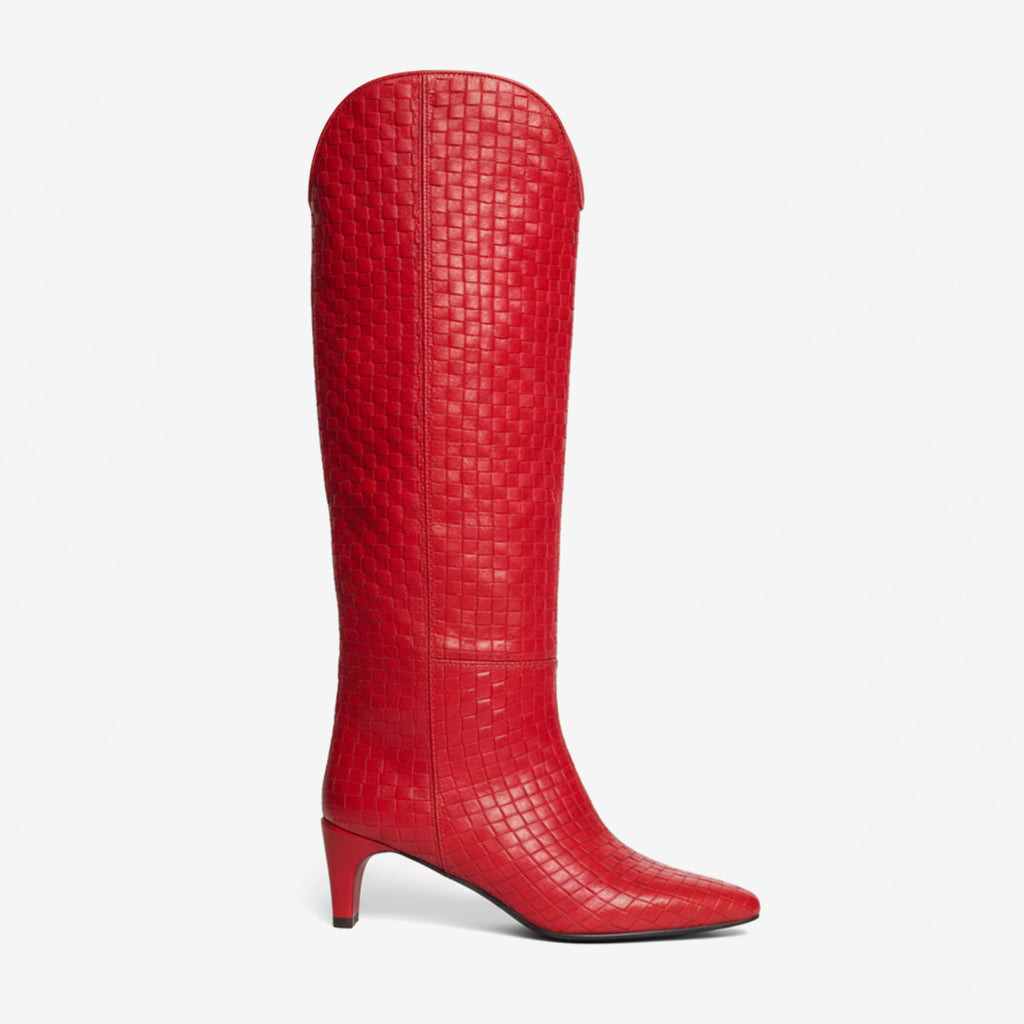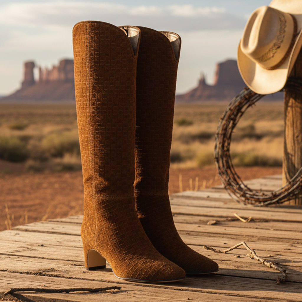 Elevate your style with our Knee High Fashion Boots for Women, expertly crafted with unique craftsmanship. The exquisite woven pattern adds a touch of sophistication, while the hand-finished details ensure every pair is made with precision and care. These boots showcase a perfect blend of aesthetics and functionality, making them an essential addition to your wardrobe.