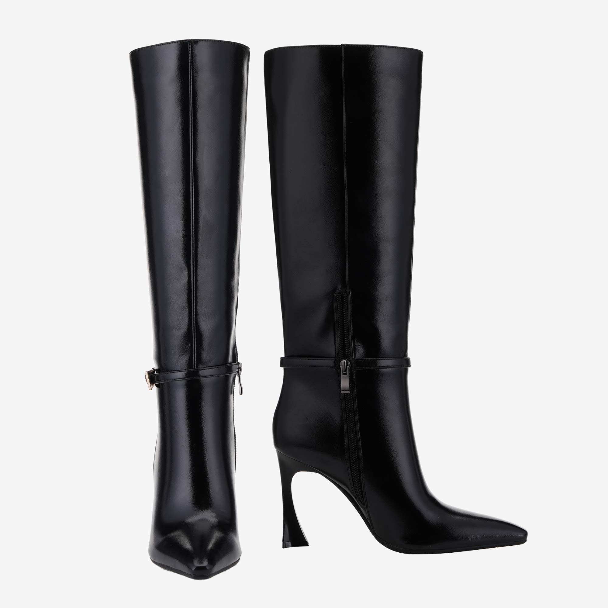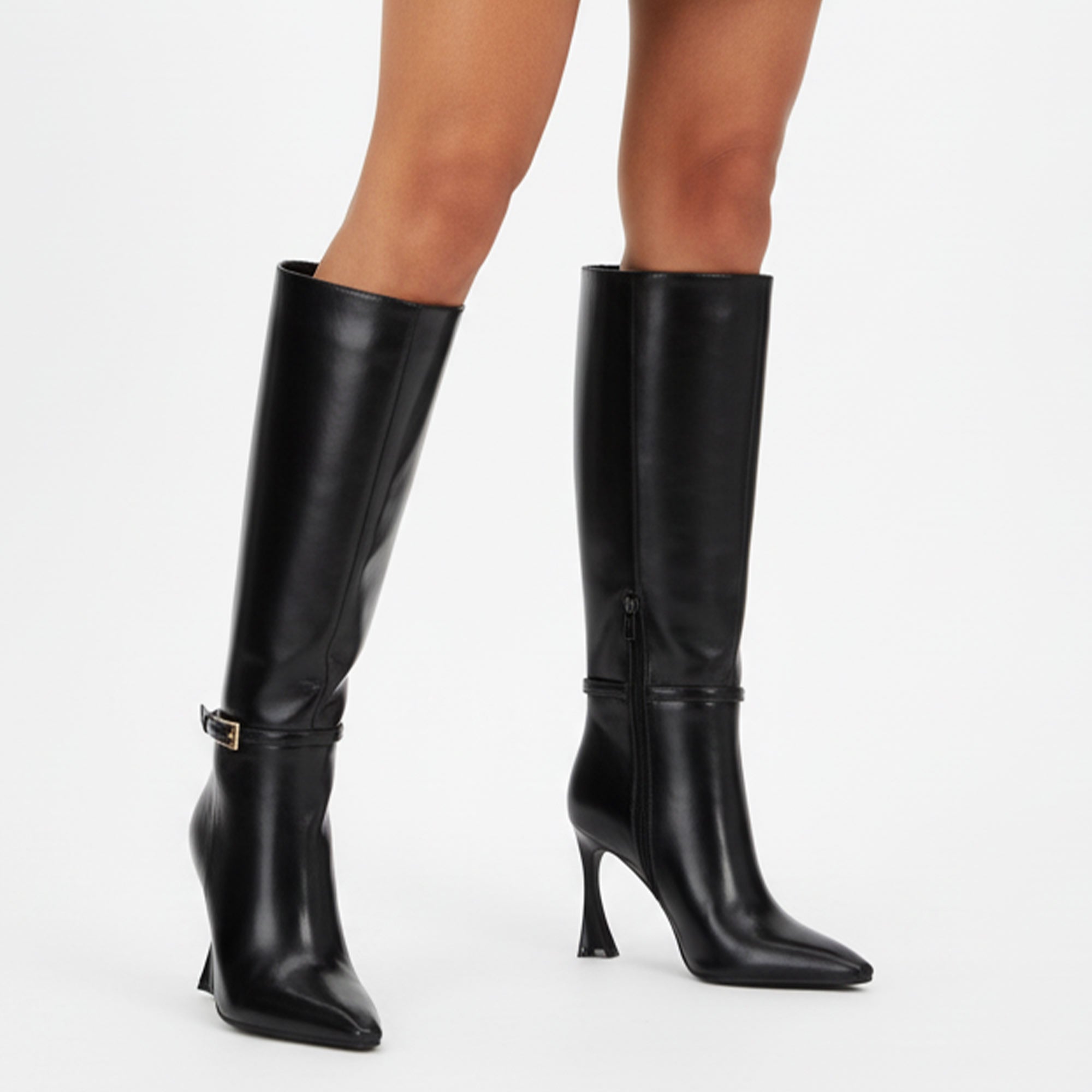 Experience Unmatched Elegance and Comfort! Our Knee High Fashion Boots are expertly handcrafted from premium full-grain leather, showcasing a stylish pointed toe design that effortlessly enhances your overall look. The unique irregular high heel not only adds a touch of modern flair but is also meticulously crafted to ensure long-lasting durability.