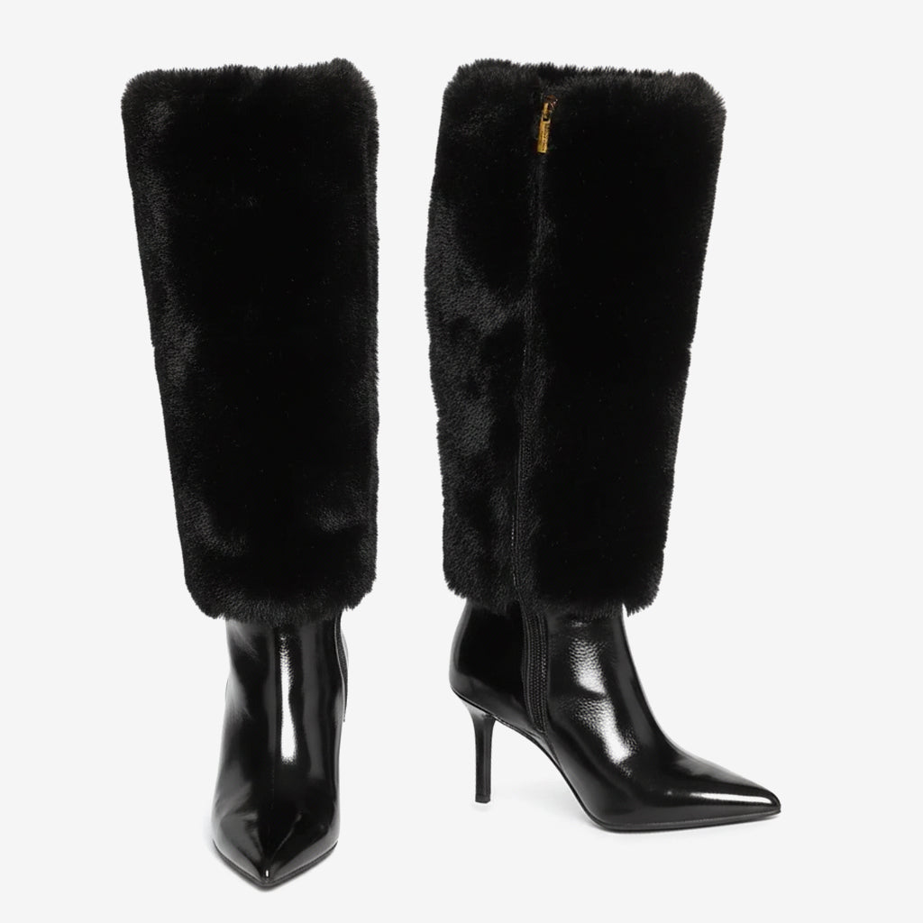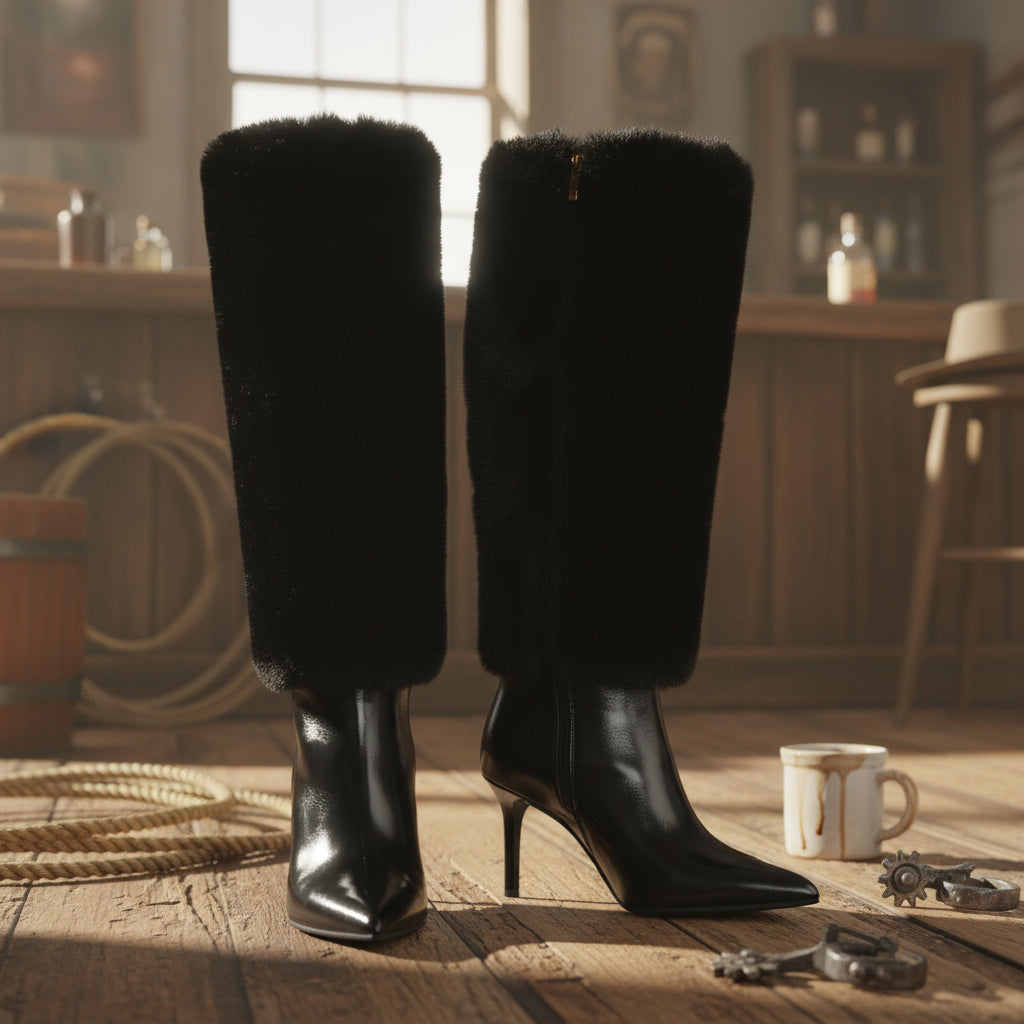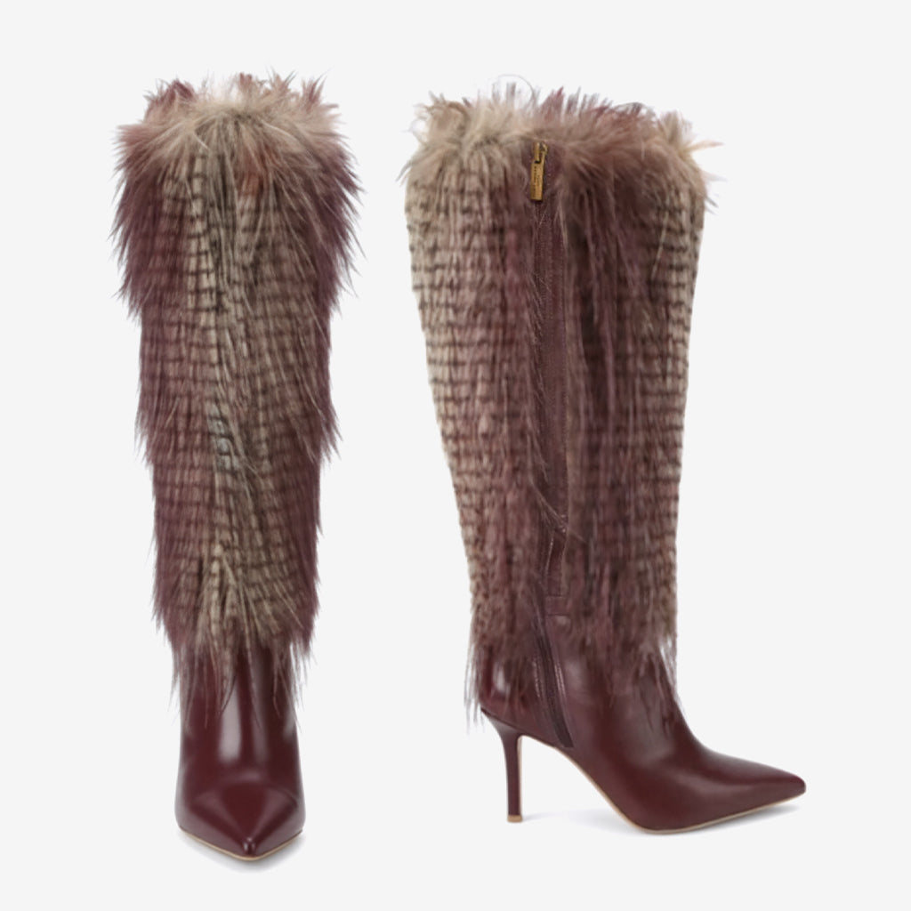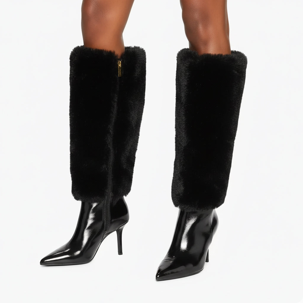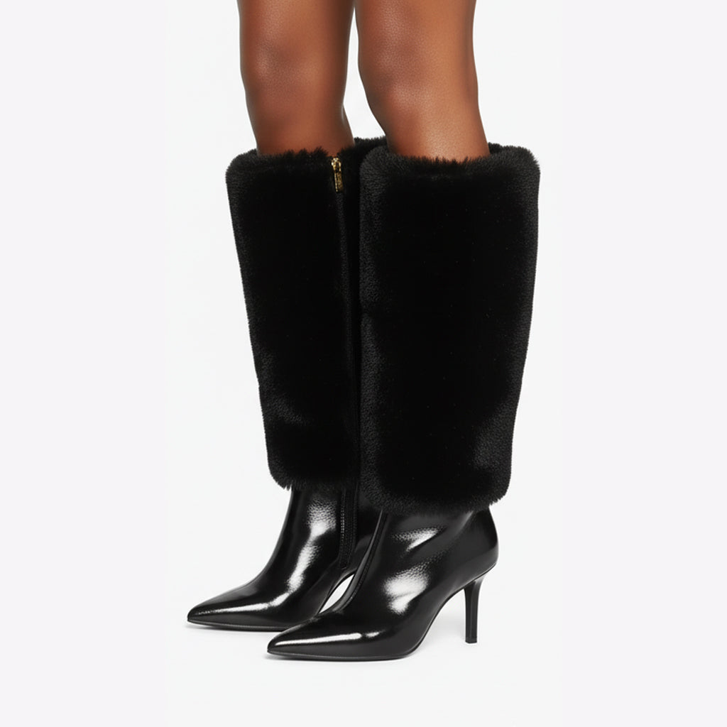 Our Knee-High Boots are meticulously crafted with a unique faux fur and zip design, highlighting the essence of modern fashion while ensuring you stand out at any event. The chic pointed toe adds a touch of sophistication, making them an ideal choice for parties, performances, or any stylish outing.
