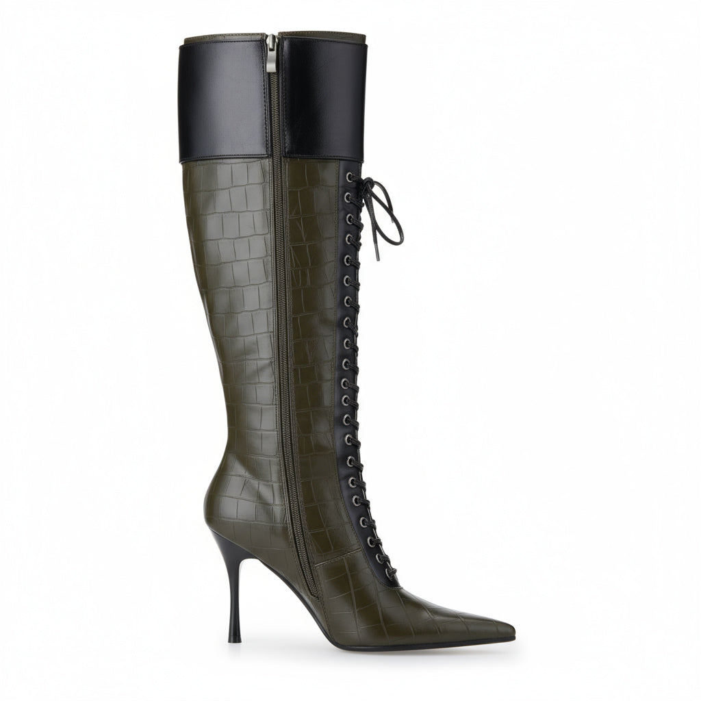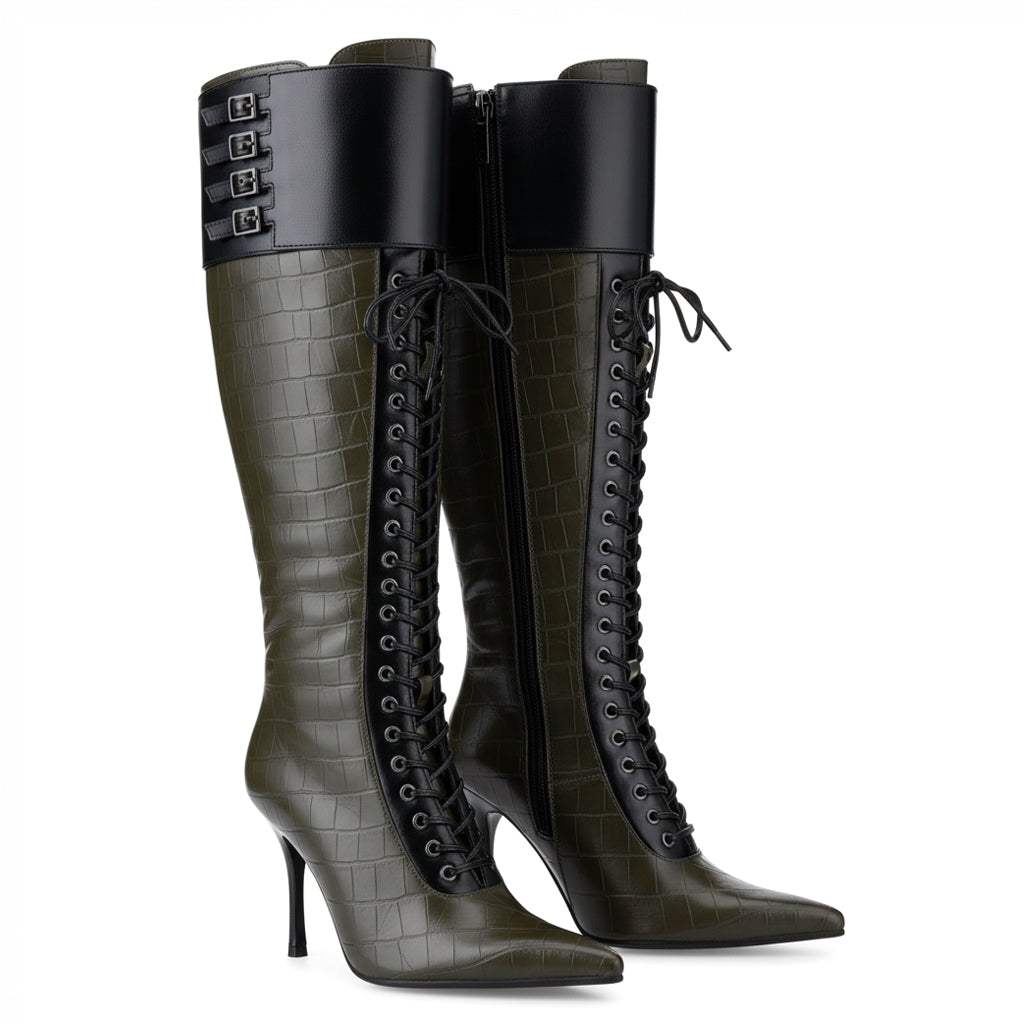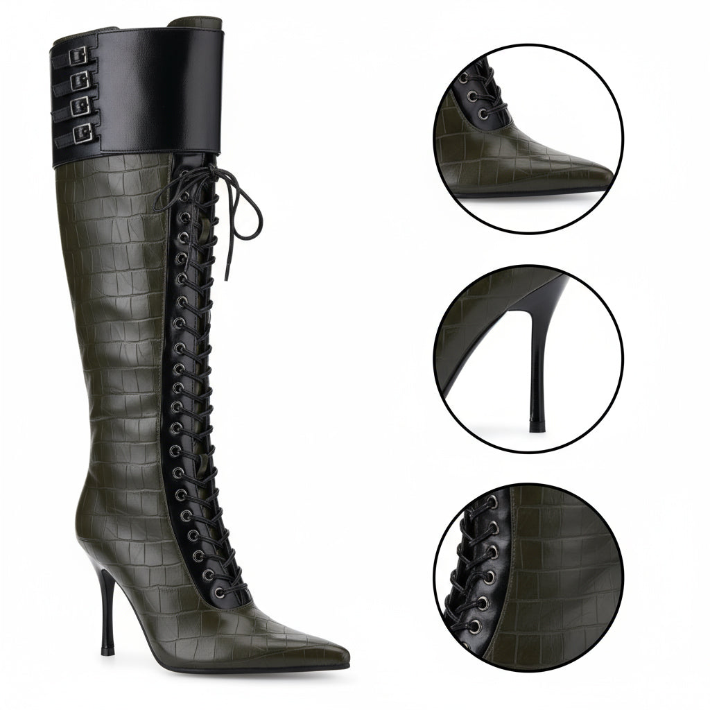 Core Value: Embrace elegance with our exclusive knee-high boots, meticulously crafted with a flawless blend of fashion and function. The chic pointed toe and high stiletto heel (9.5 cm) create an elongated silhouette, perfect for making a statement at any event. The innovative design features premium materials, offering both sophistication and wearability without compromising on quality.