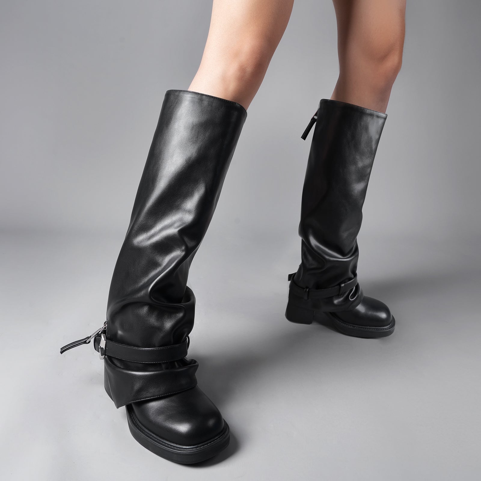Featuring a comfortable low chunky heel of 6 cm, these boots offer the perfect balance of style and ease, allowing for all-day wear without sacrificing comfort. The eye-catching metal buckle and zipper details add a fashionable touch, making them ideal for both casual outings and sophisticated events.