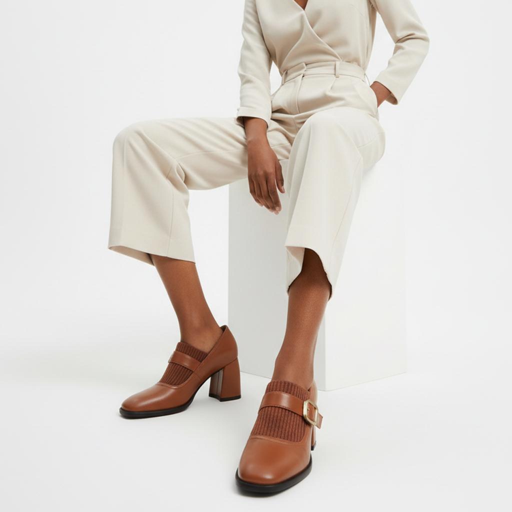 Discover the perfect blend of style and comfort with our Mary Jane High Heel Loafers for Women. These chic loafers, meticulously handcrafted from premium full-grain leather, are designed to elevate your look while providing unbeatable comfort throughout your day.