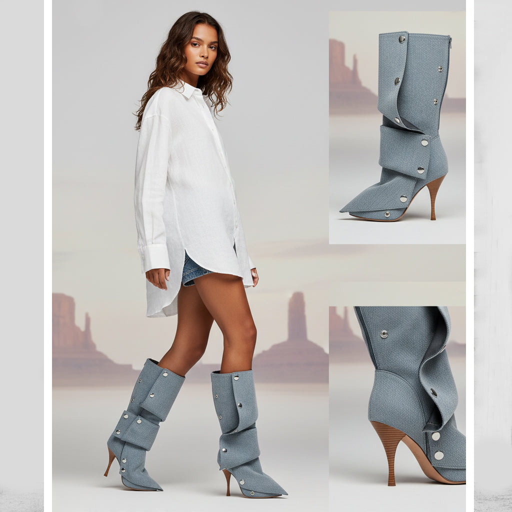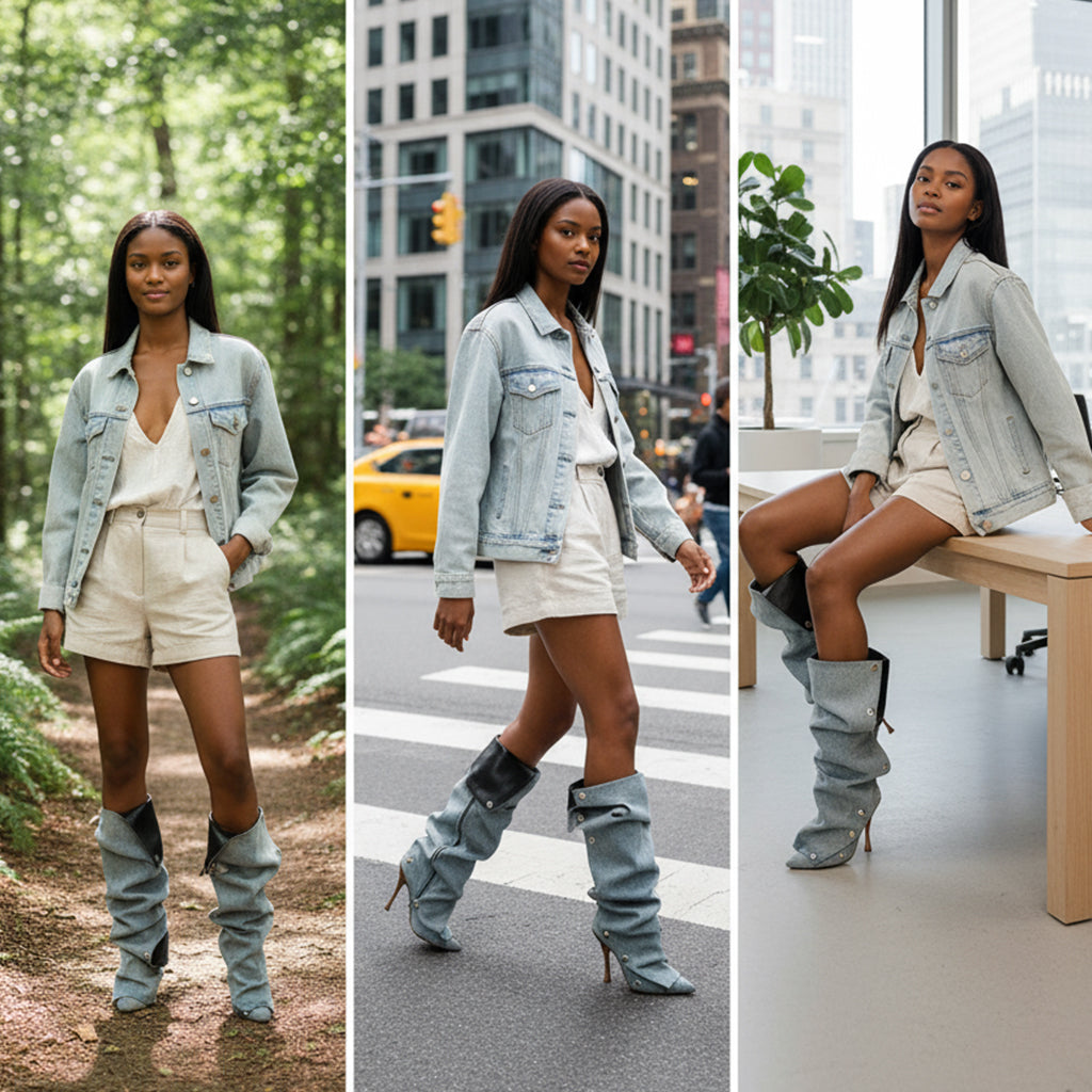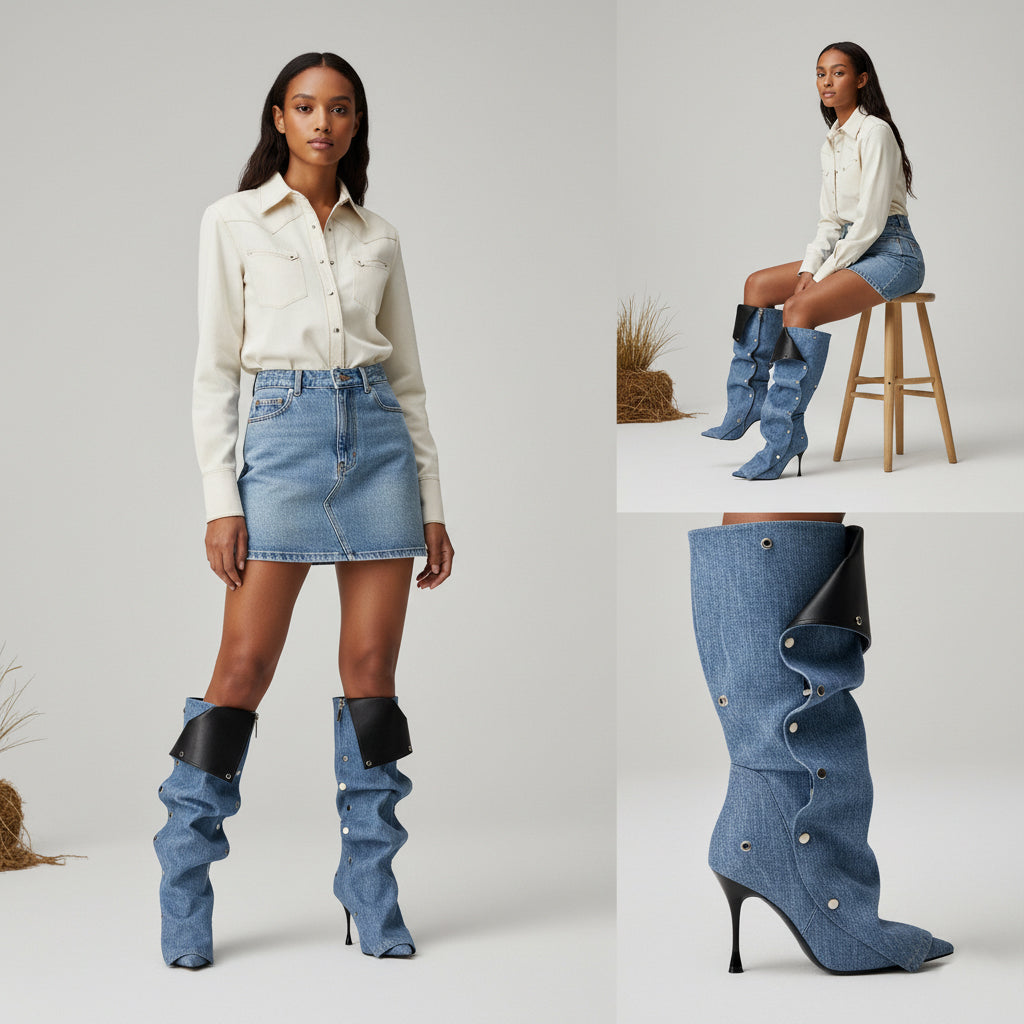 1. Unique Craftsmanship: Each pair features exquisite hand-stitched detailing and is crafted with attention to detail. The denim exterior exudes elegance while being perfect for versatile styling.
