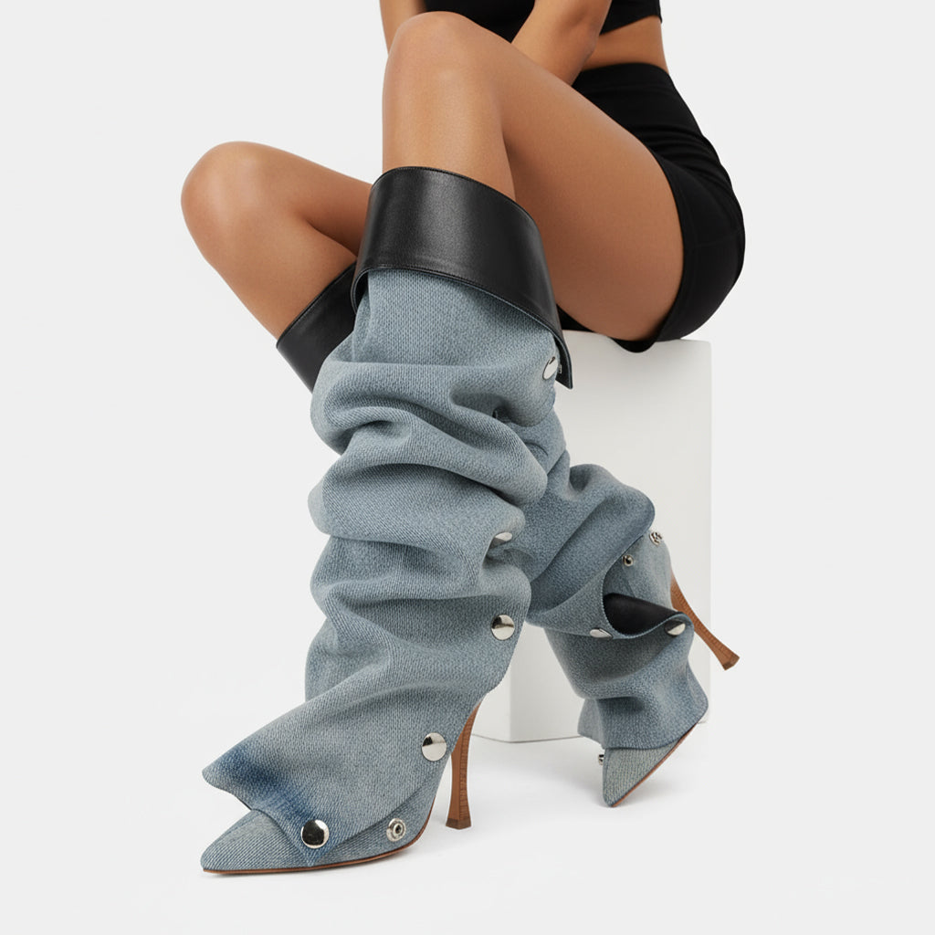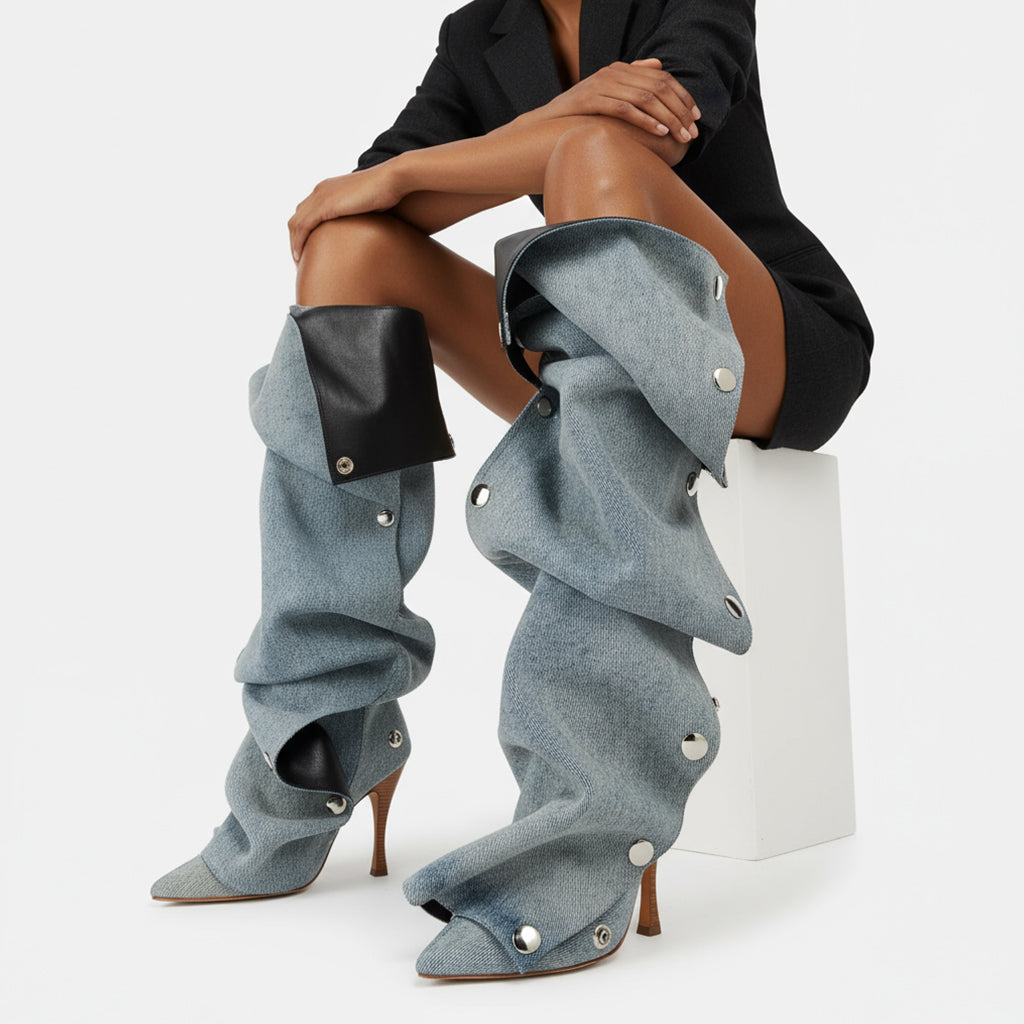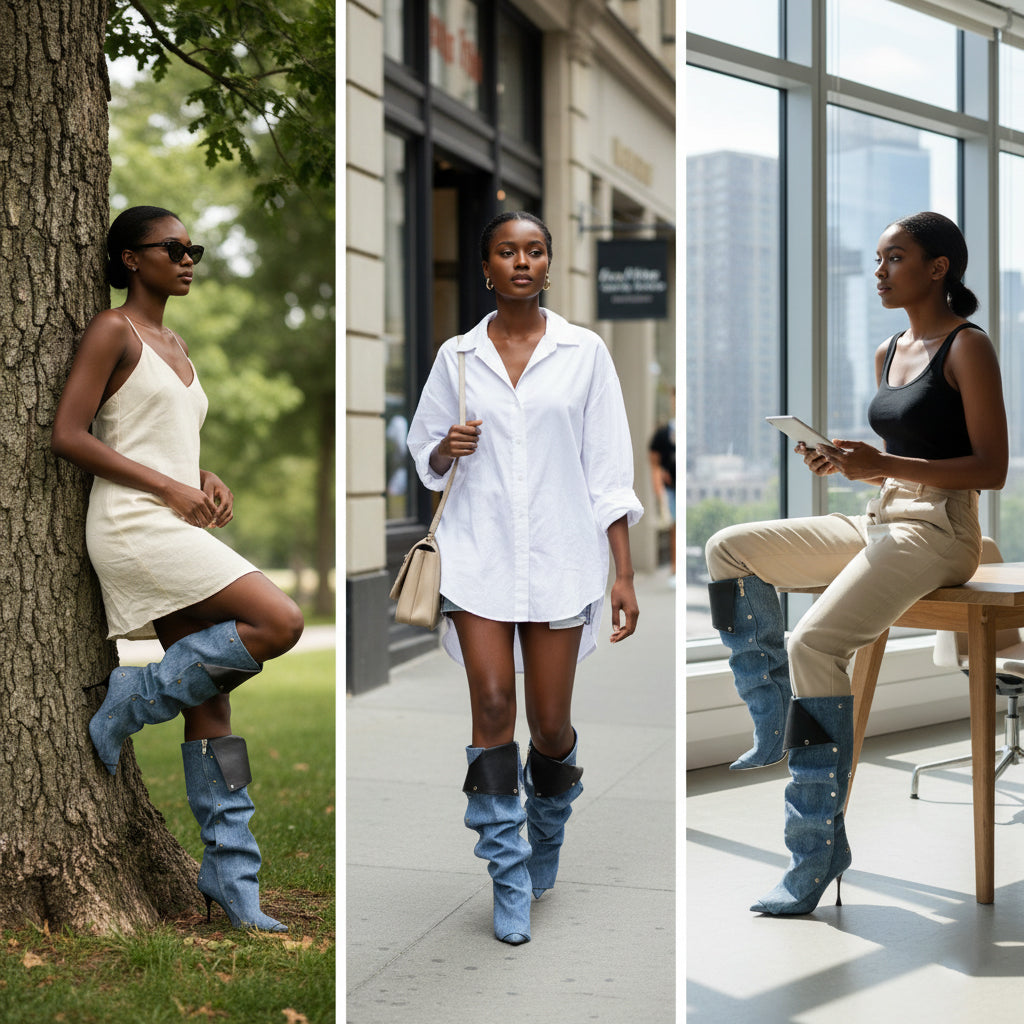 1. Unique Craftsmanship: Each pair features exquisite hand-stitched detailing and is crafted with attention to detail. The denim exterior exudes elegance while being perfect for versatile styling.