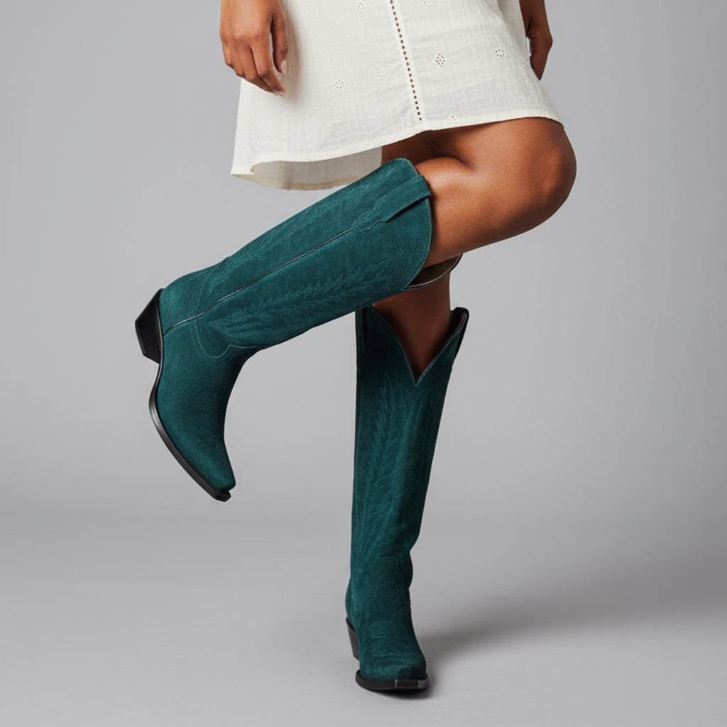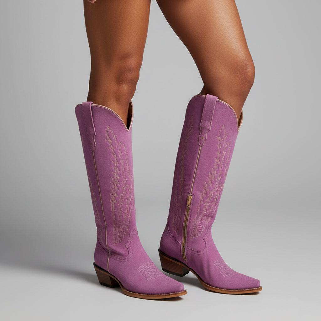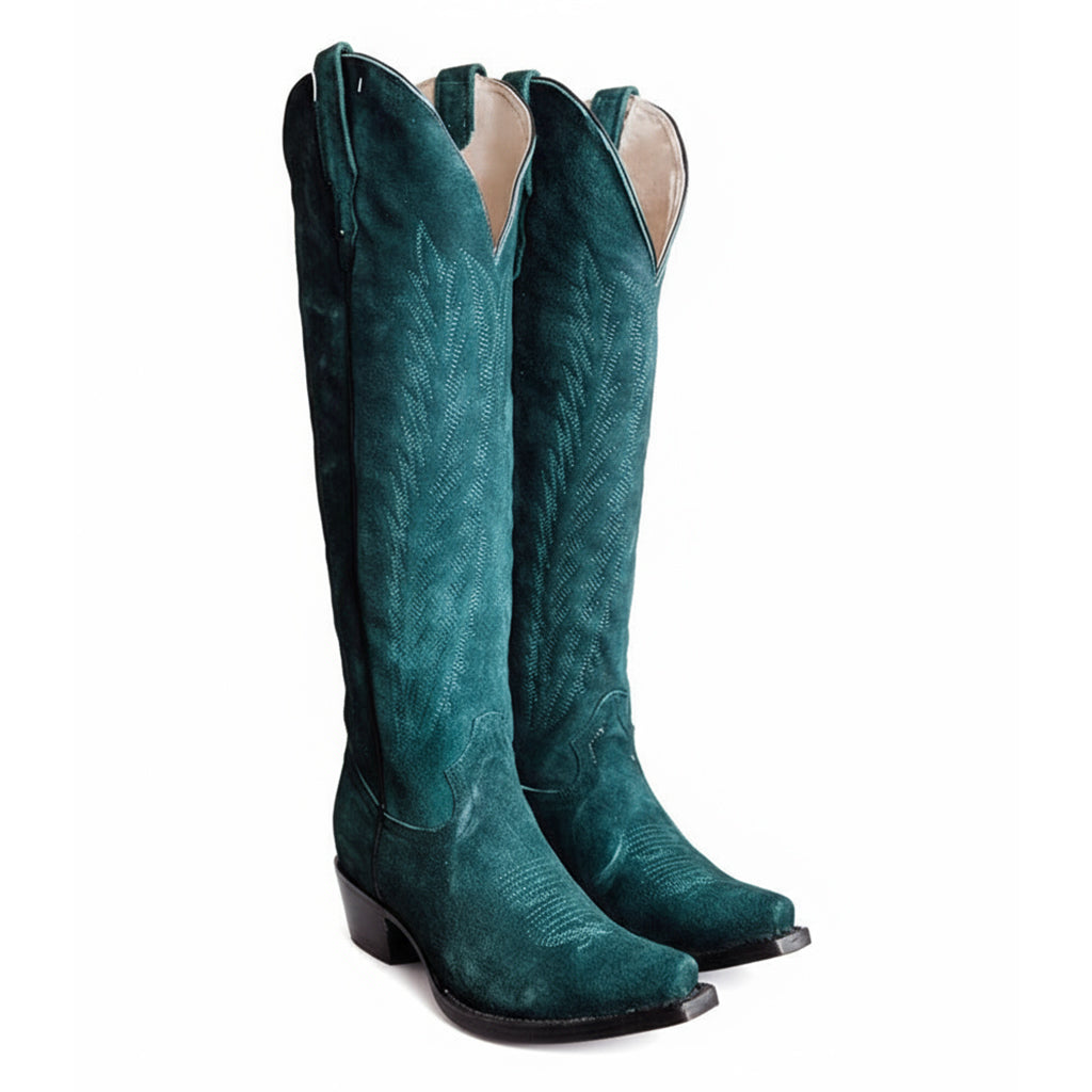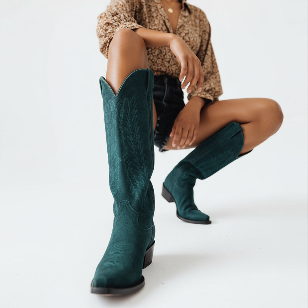 Experience Timeless Elegance: Our Mid-Calf Western Boots for Women are expertly crafted from high-quality faux suede, showcasing a unique handcrafted design that combines classic western style with modern sophistication. The luxurious appearance and intricate embroidered details make these boots a remarkable addition to your wardrobe.