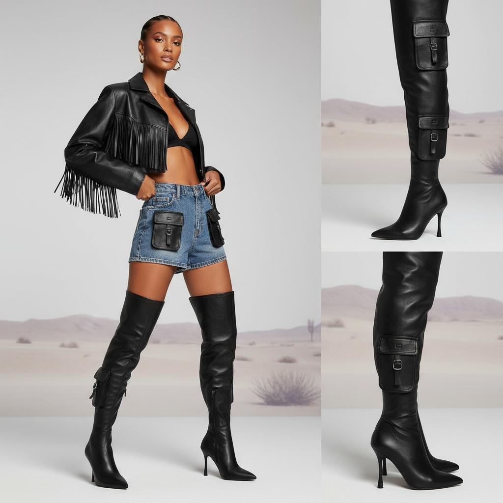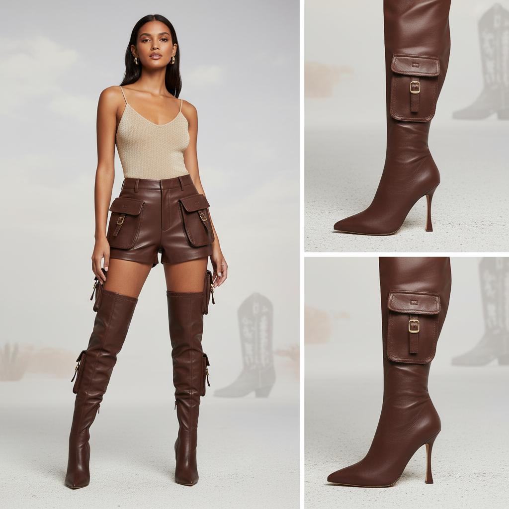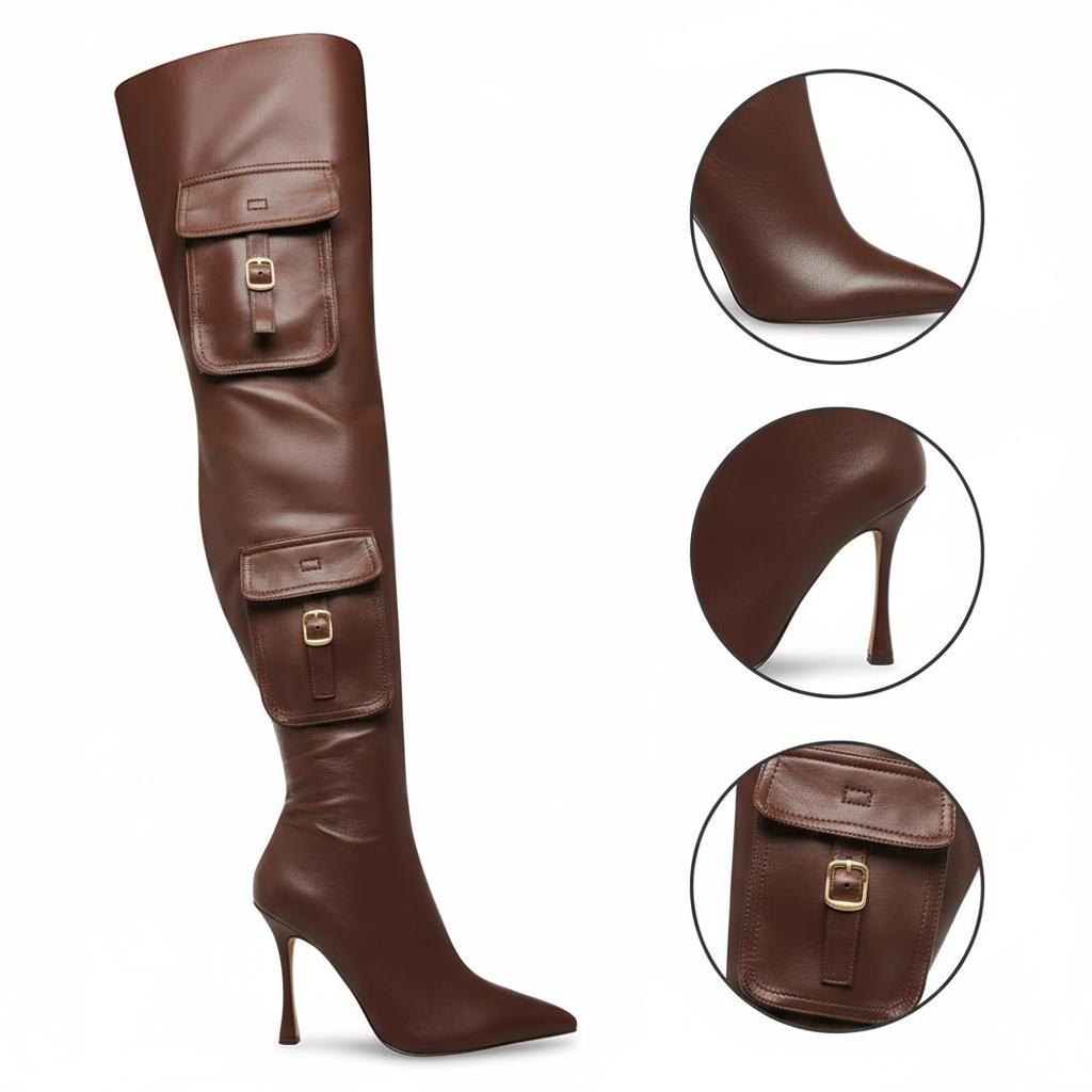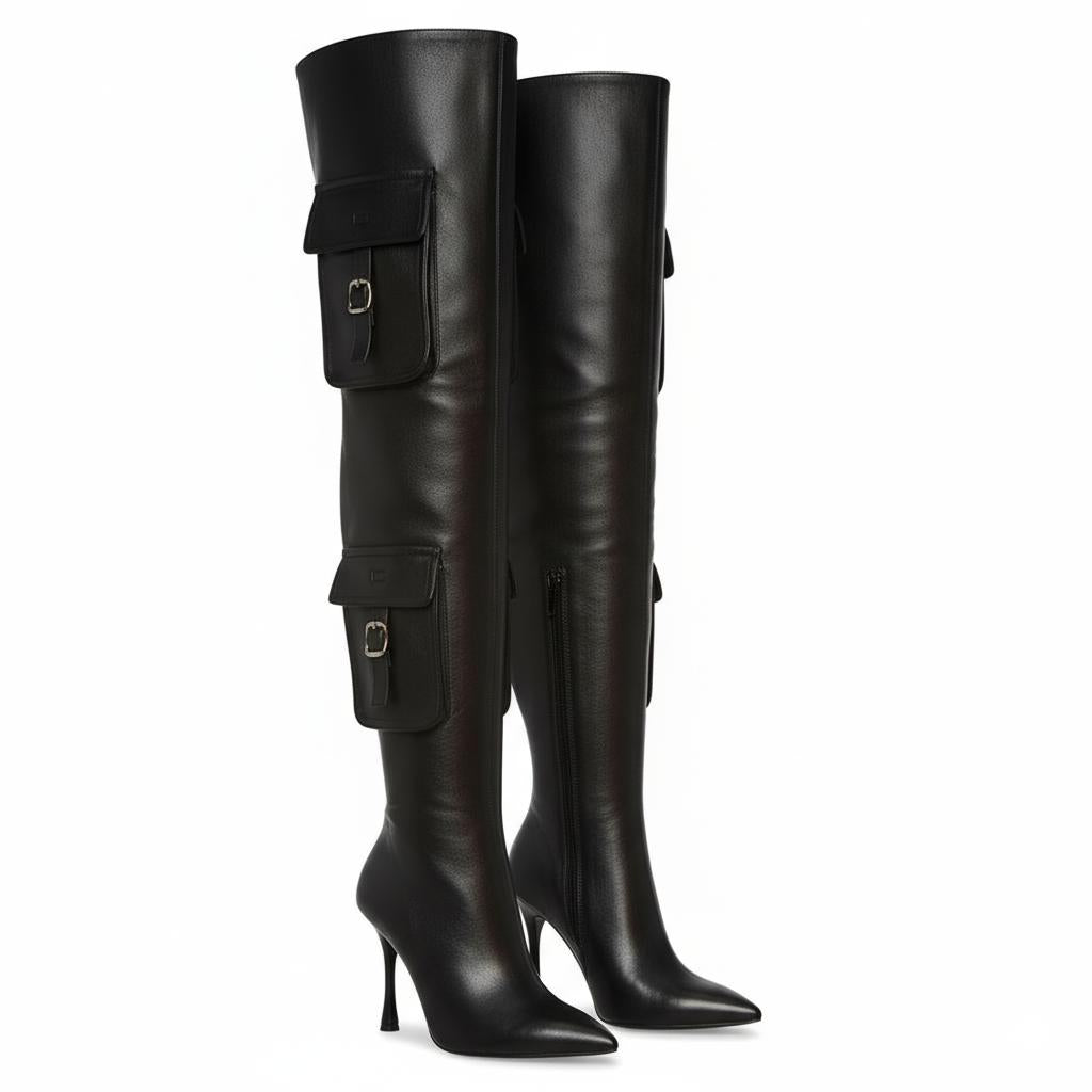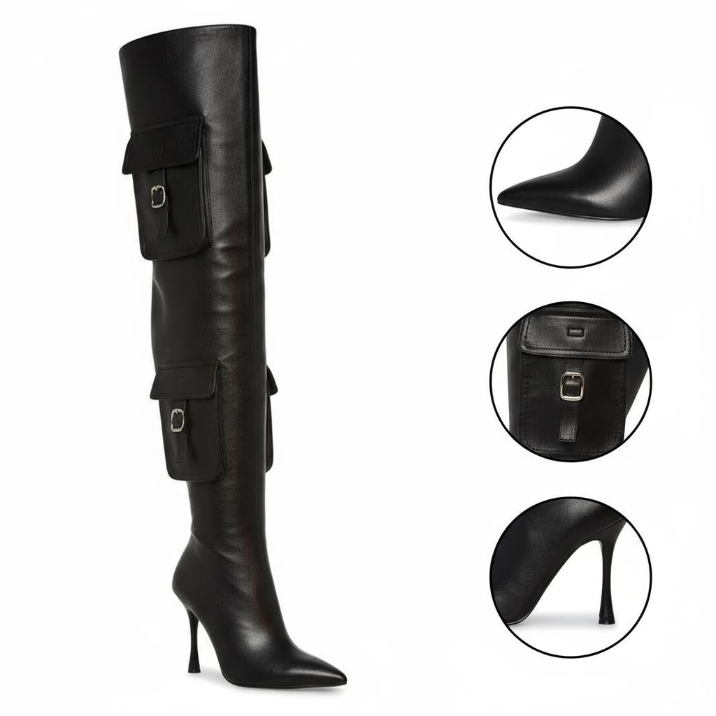 Unleash your style with our Over-The-Knee Fashion Boots — expertly crafted from premium full-grain leather. These boots feature a unique combination of exquisite design and thoughtful functionality, making them the ideal choice for any fashionable woman.