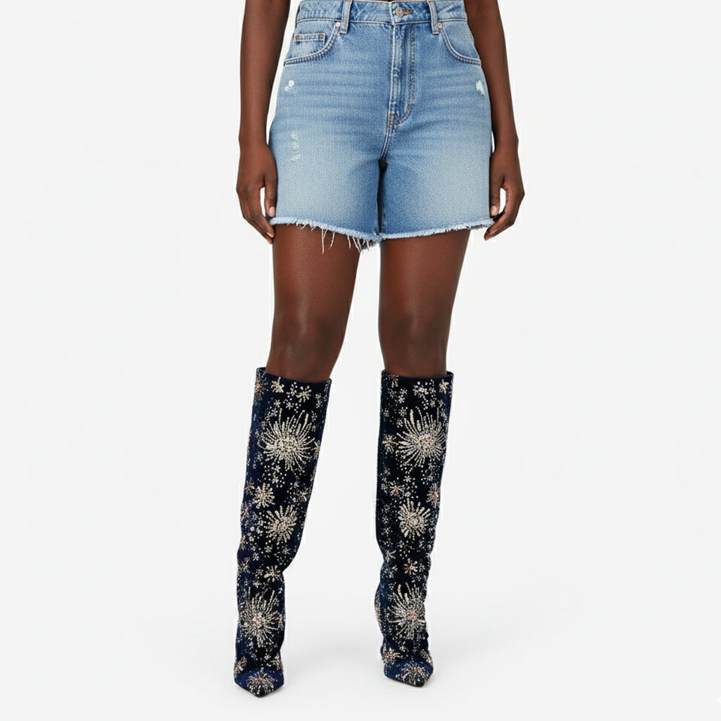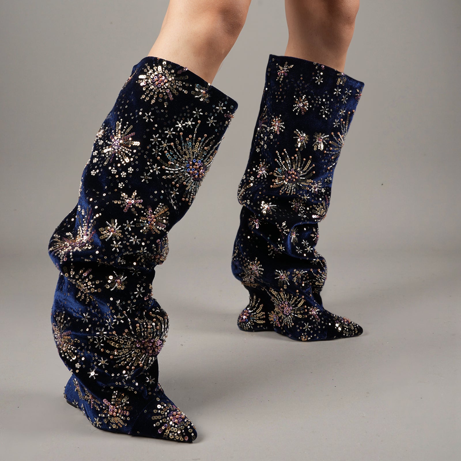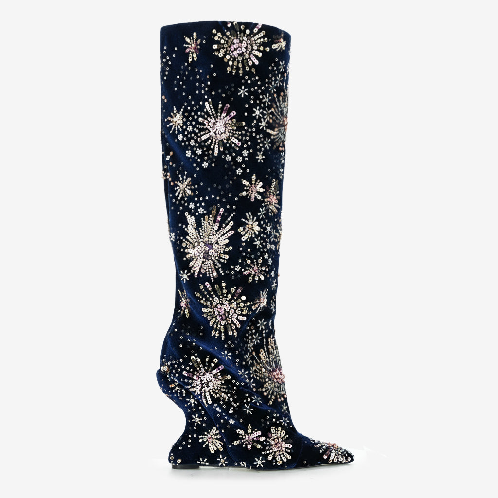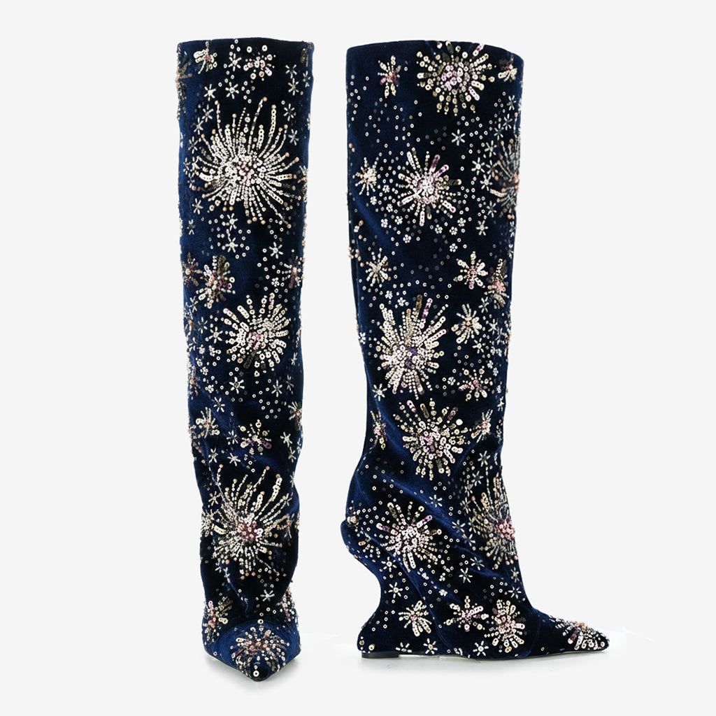 Crafted from high-quality velvet fabric, these over-the-knee boots combine durability with an exclusive floral design, making them the perfect statement piece for any occasion. The unique craftsmanship and premium materials ensure that not only do they look fabulous, but they also offer long-lasting wear.