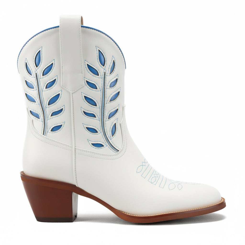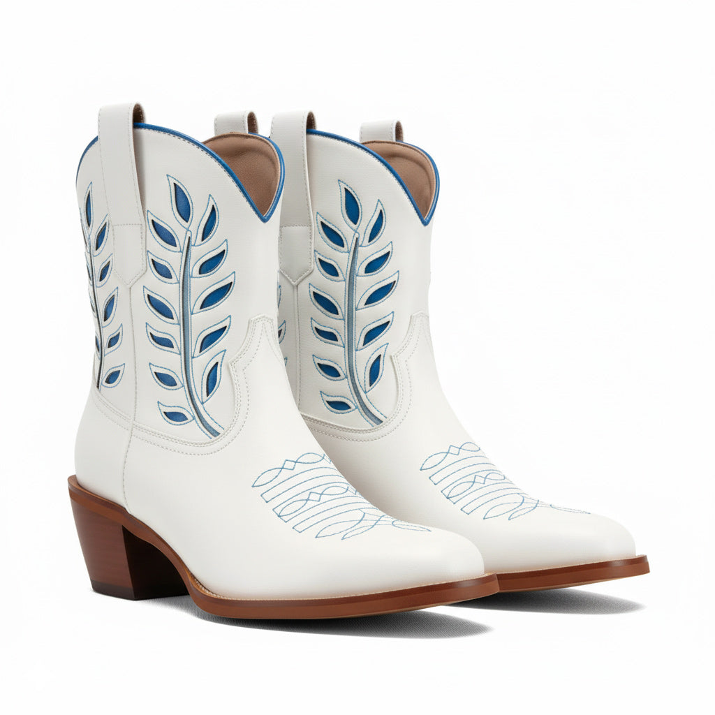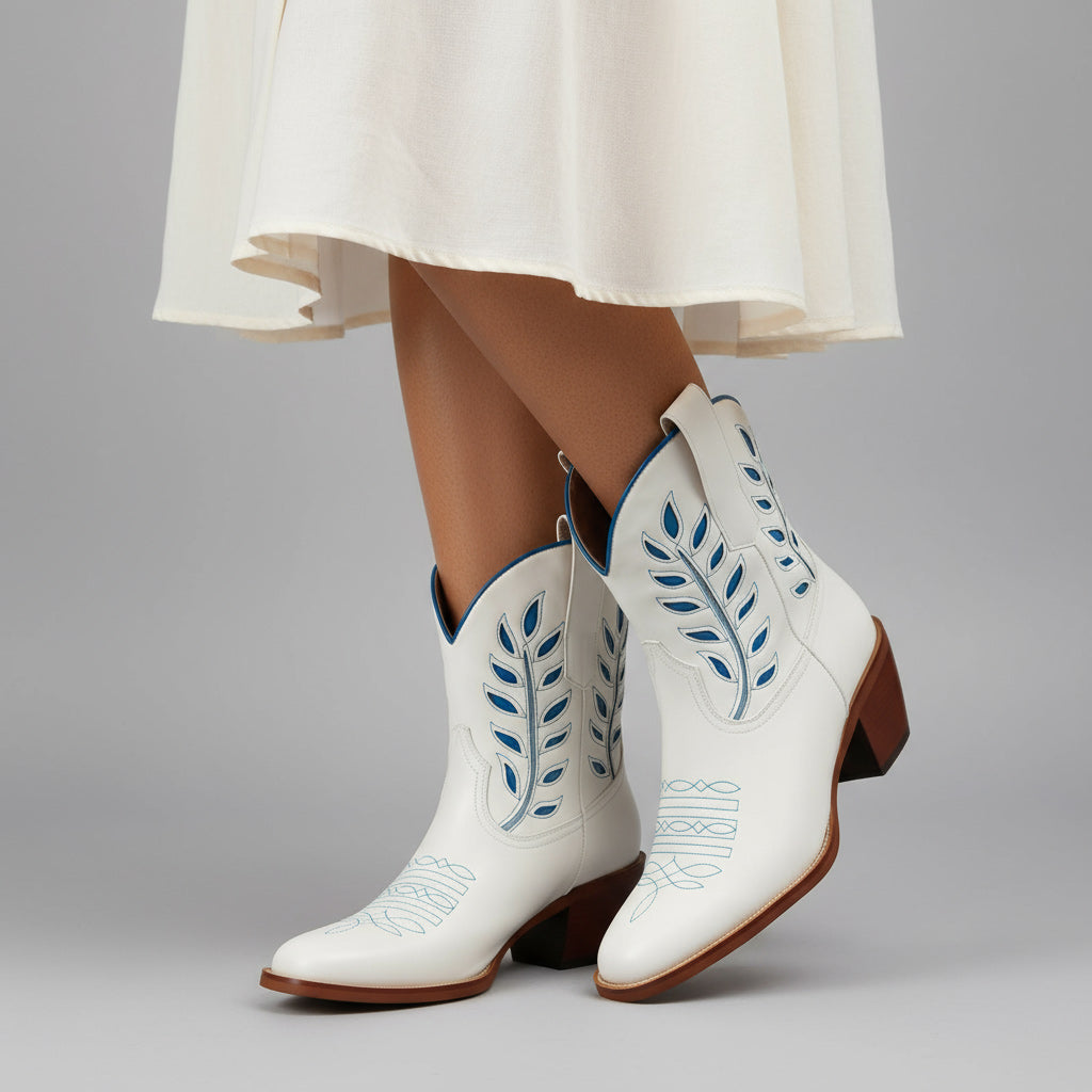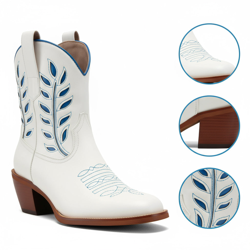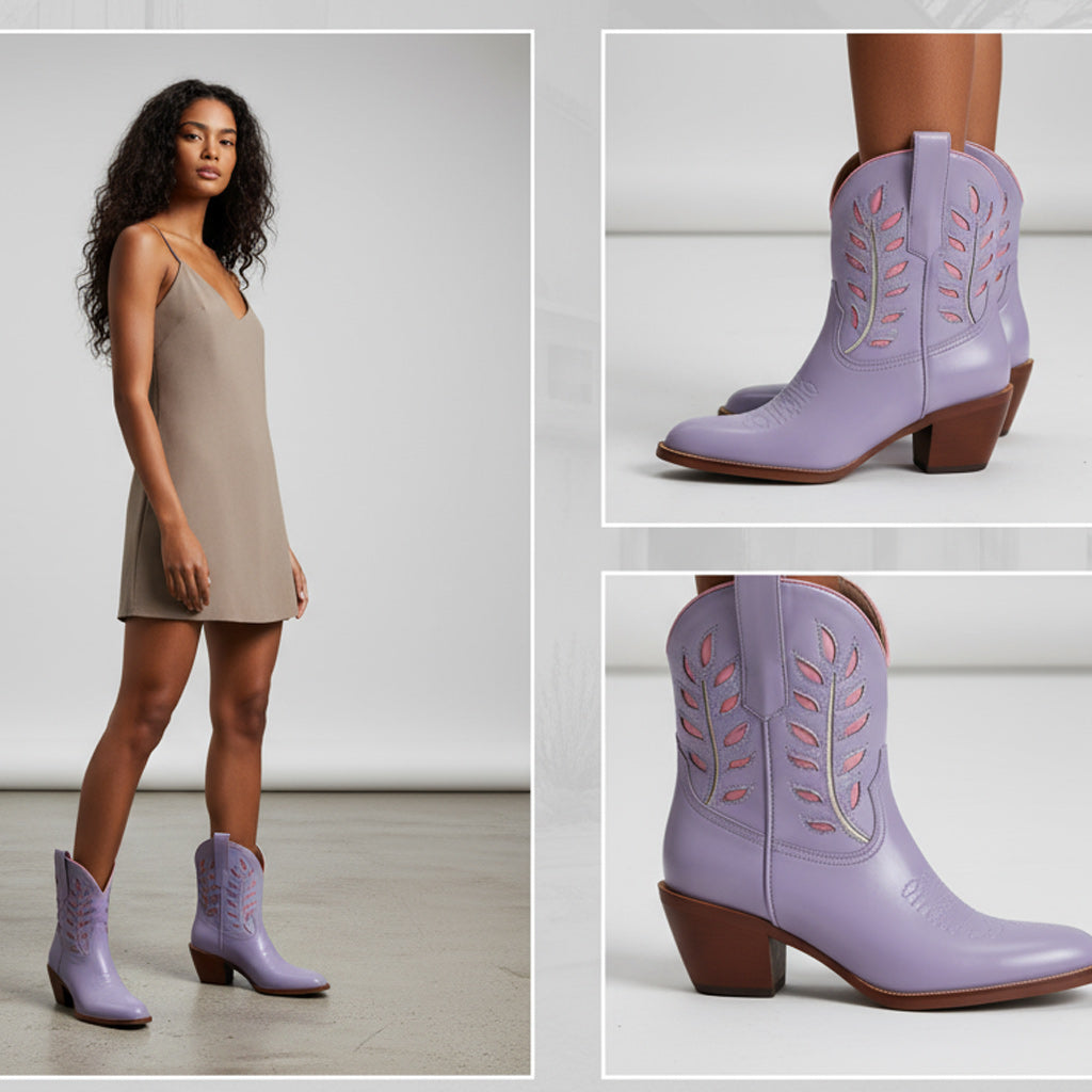 Introducing our exquisite Pointed Toe Chunky Heel Ankle Booties, designed for the modern woman who values both style and comfort. Handcrafted with attention to detail, these boots feature a unique embroidered inlay that enhances their elegant aesthetic. The superior quality full-grain leather construction ensures durability, while the ergonomic design provides ultimate comfort throughout the day.