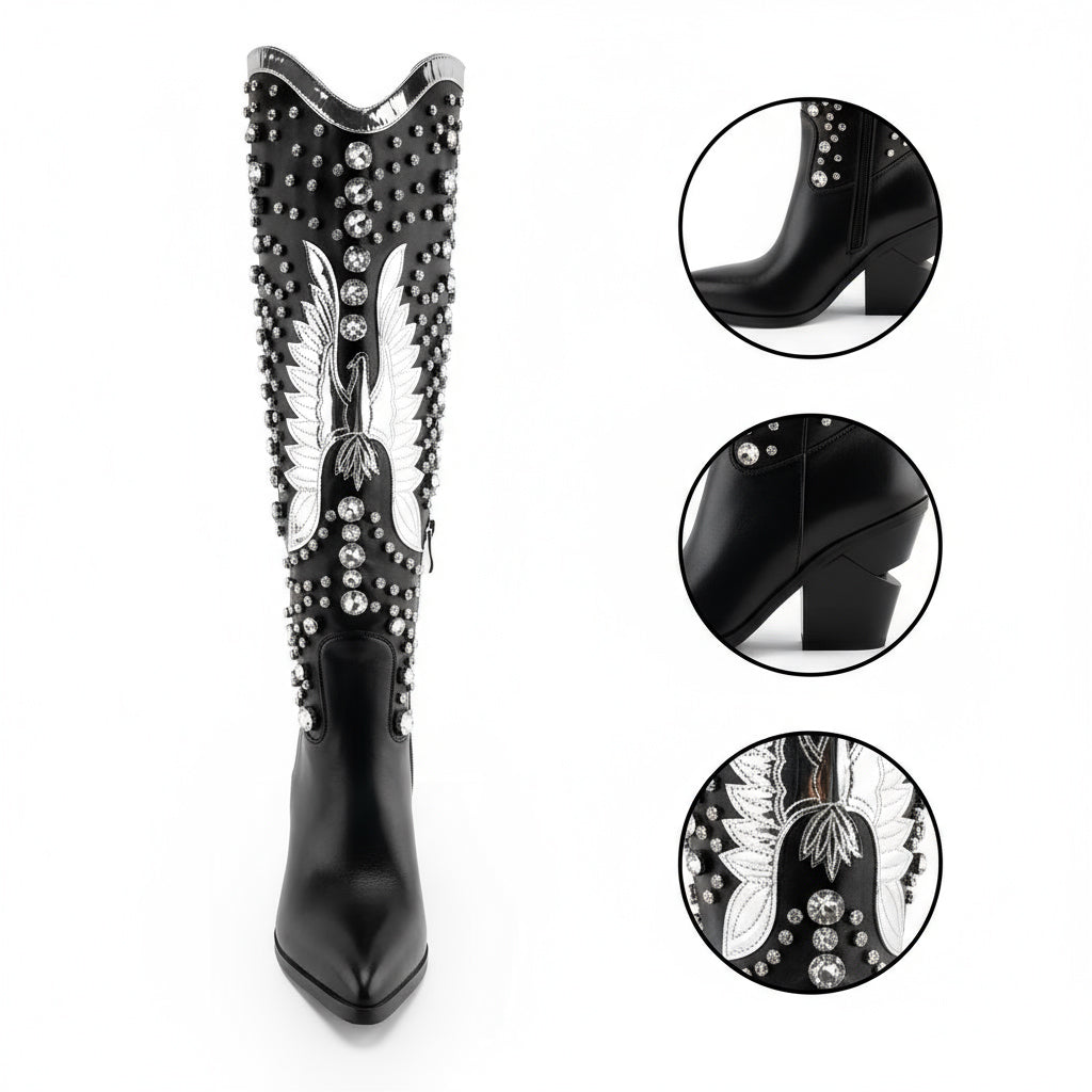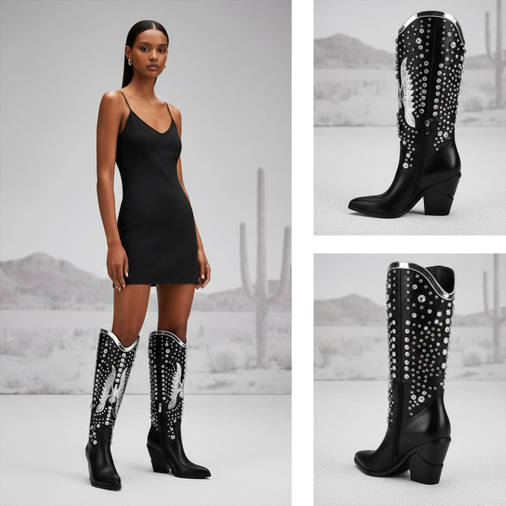 Styling Tips: For a party-ready look, team these boots with a little black dress and statement accessories, or style them with skinny jeans and a chic blouse for a more casual vibe. With their sleek design and versatile nature, these boots will quickly become your go-to choice for any occasion.