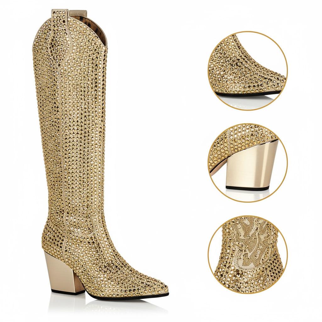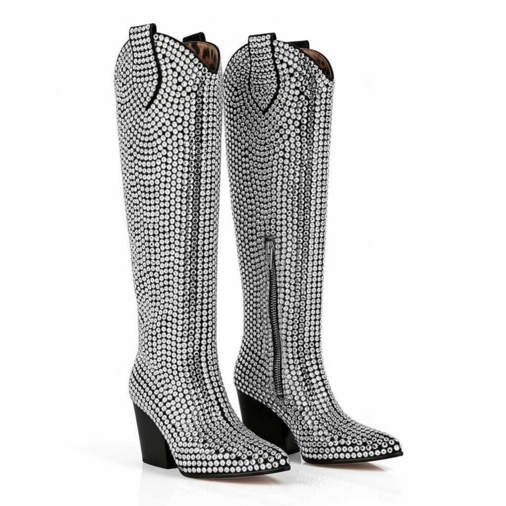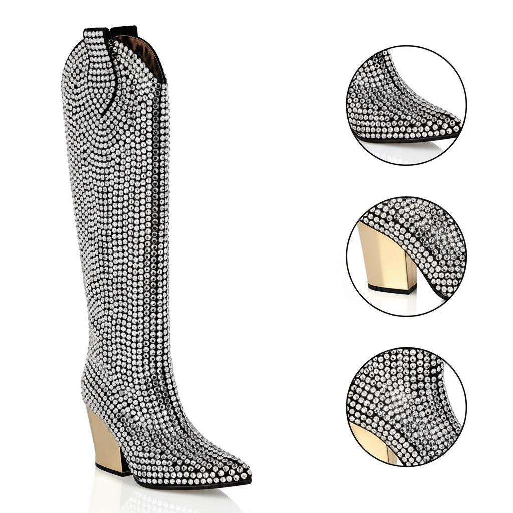 Upgrade your wardrobe with the Rhinestone Western Mid-Calf Boots—where durability meets elegance. Whether you're at a dance event, a party, or on a casual outing, these boots are designed to make you shine.