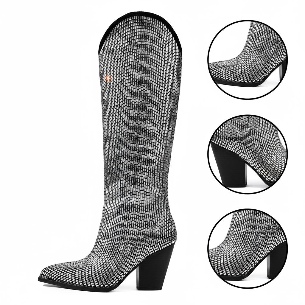Unleash your elegance with our stunning Knee-High Sparkle Boots, designed to be the perfect companion for parties, performances, and fashion evenings!