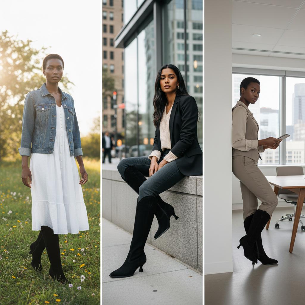 Introducing our Stylish Knee-High Boots for Women, meticulously handcrafted from quality materials. Designed with an ergonomic approach, these boots feature cushioning with a padded insole and arch support, ensuring all-day comfort whether you're at the office or out on the town. The unique craftsmanship guarantees durability with reinforced stitching and a versatile suede-like finish that offers a sophisticated touch.