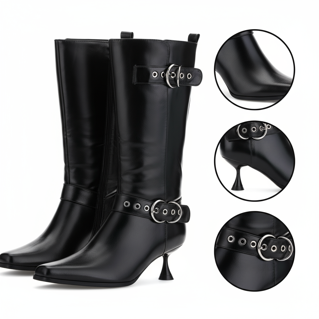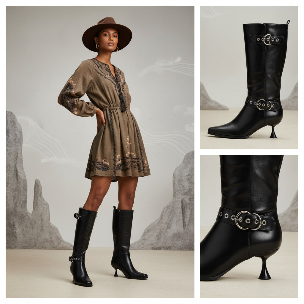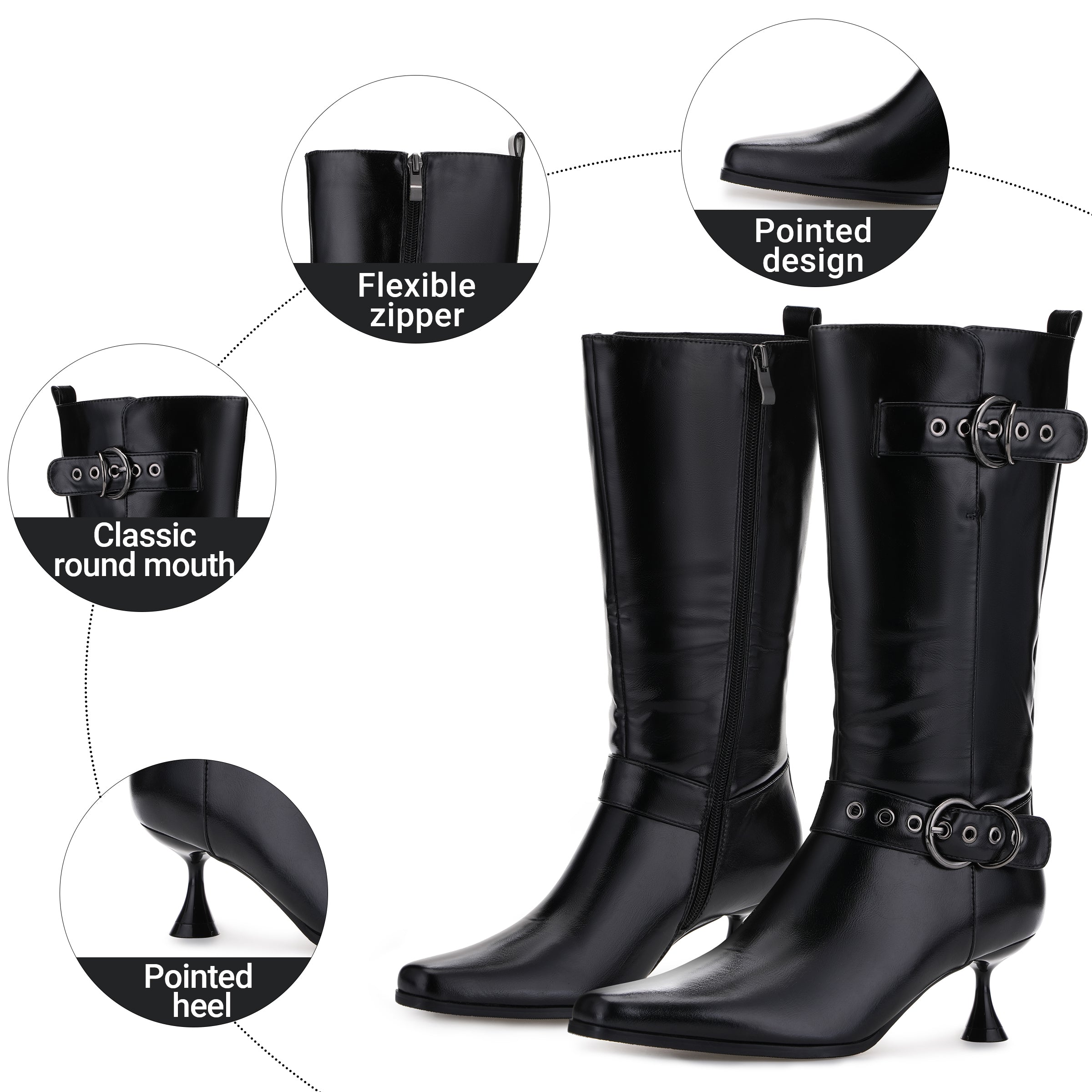 All-Weather Performance: Featuring a 5cm cat heel and a convenient zipper closure, these boots are perfect for any occasion. The adjustable strap allows for a customized fit, accommodating various calf sizes from 30cm to 37cm, while the sturdy polyurethane sole offers reliable traction for smooth, secure steps.