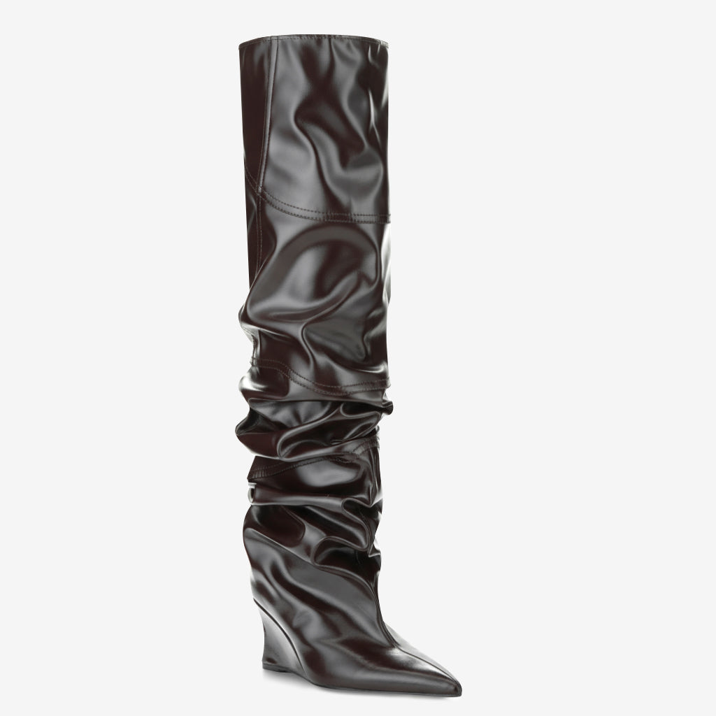 Our over-the-knee boots embody a unique blend of modern fashion and timeless design. Crafted from high-quality patent PU leather, these boots feature elegant pleating and shimmering sequins, ensuring that you stand out at any event. The unique silhouette and luxurious materials provide a striking yet comfortable look that can elevate any outfit.