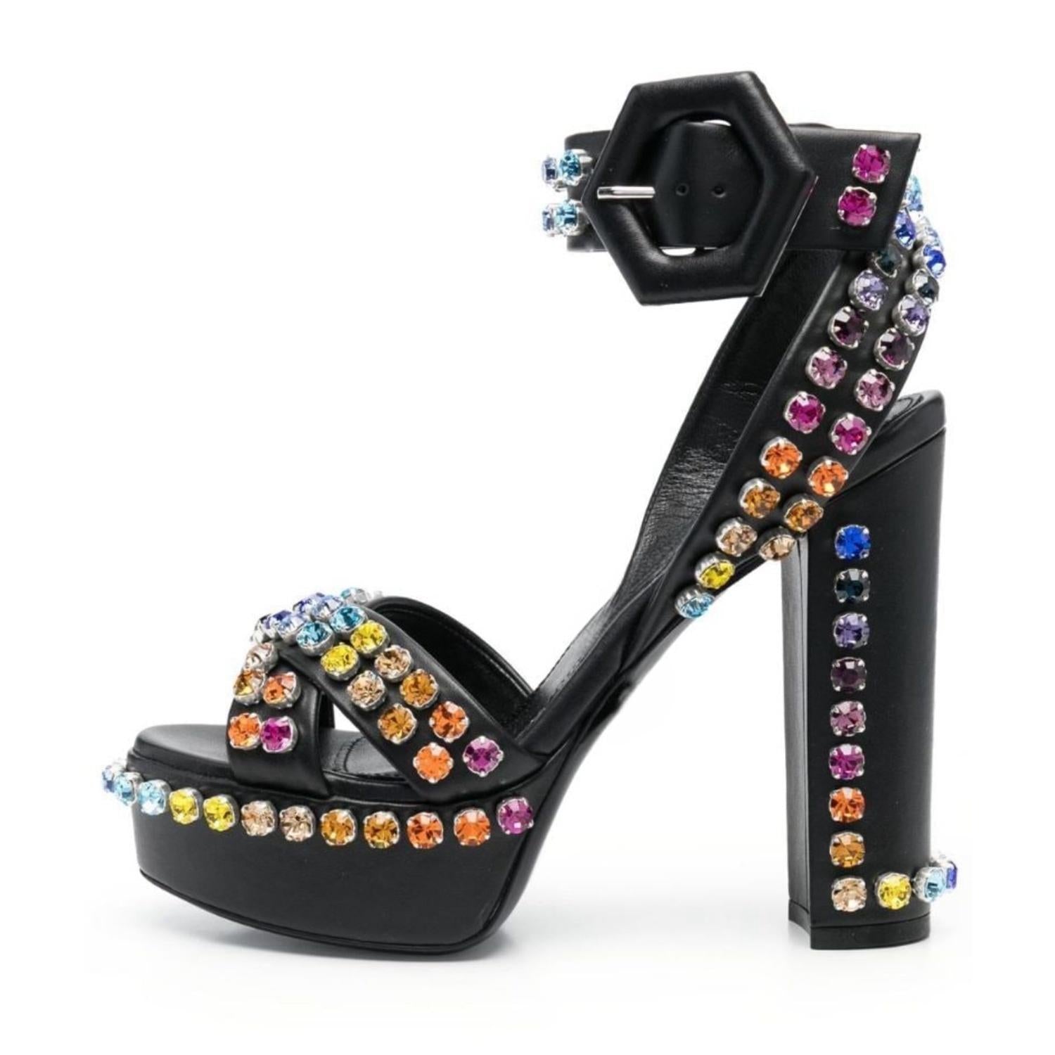 Core Value: Discover the ultimate combination of style and comfort with our Colorful Diamond Ankle Strap Fashion Waterproof Platform High-Heeled Sandals. Crafted from premium PU materials, these sandals feature a unique geometric pattern and stunning rhinestone embellishments, ensuring you stand out while enjoying luxury and elegance. The soft faux leather lining enhances comfort, making these heels perfect for all-day wear.