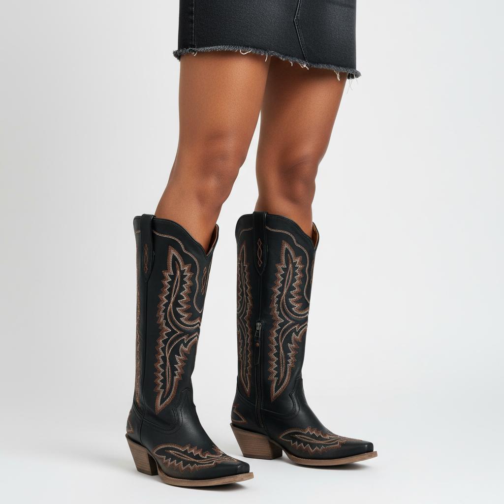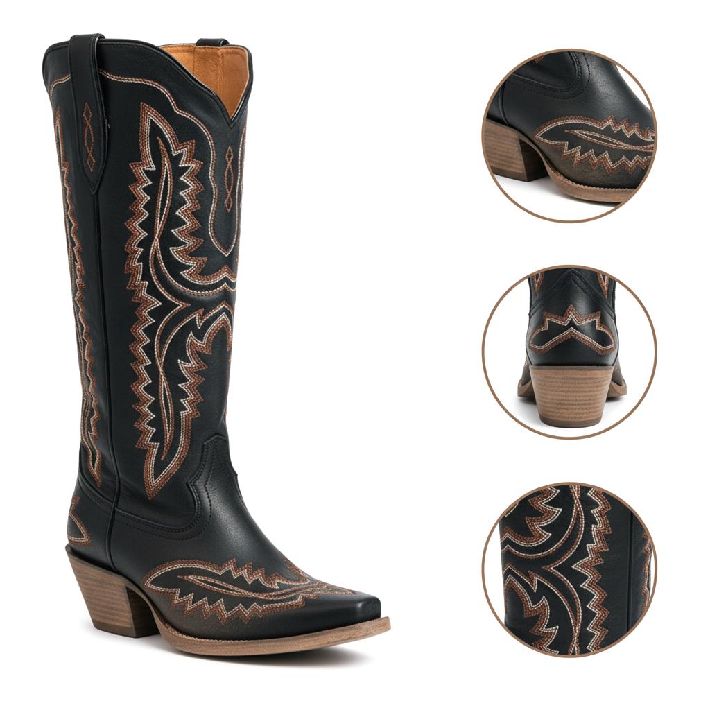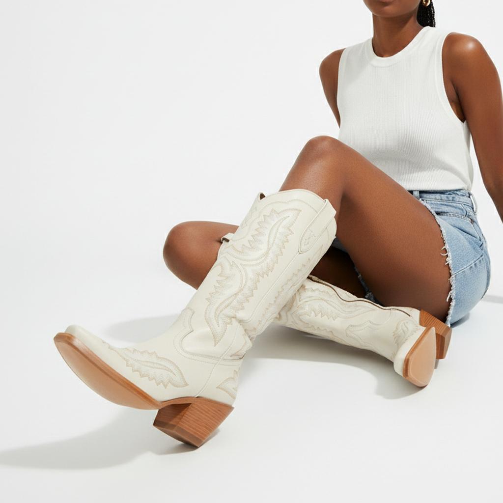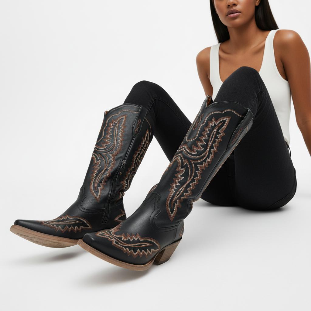 Step into elegance with our Western Mid-Calf Boots for Women, crafted from premium vegan leather. Each pair features exquisite embroidered detailing, offering a unique touch that sets you apart. Designed with handcrafted precision, these boots reflect unique craftsmanship that emphasizes both durability and style.
