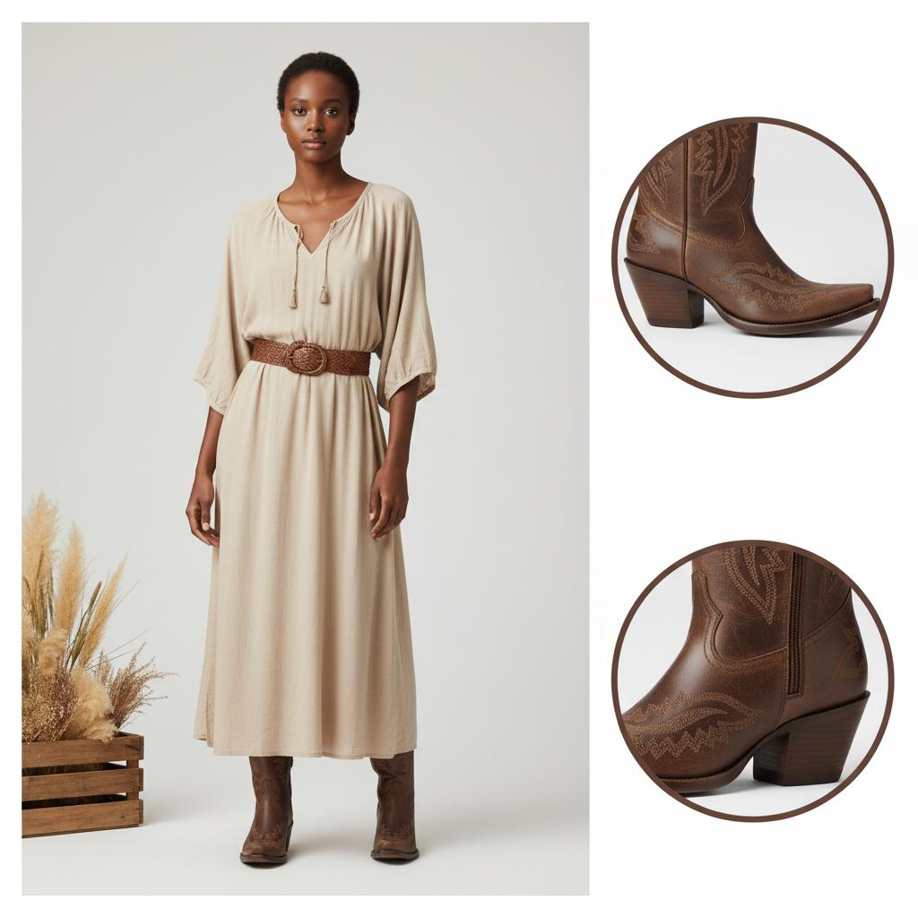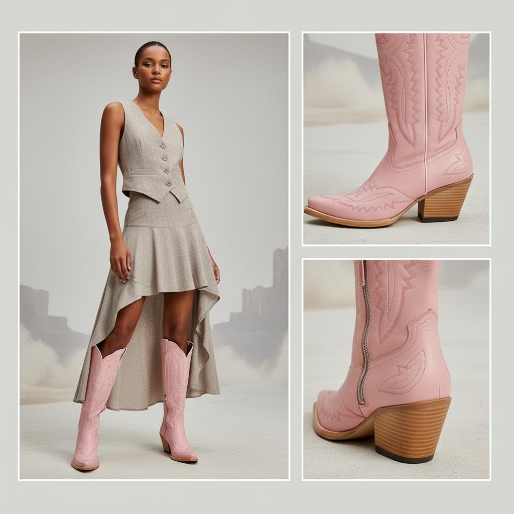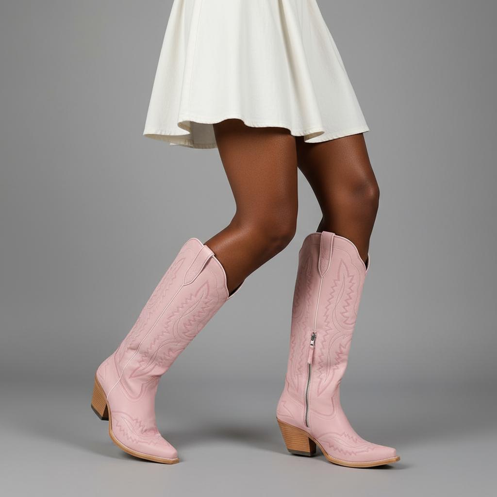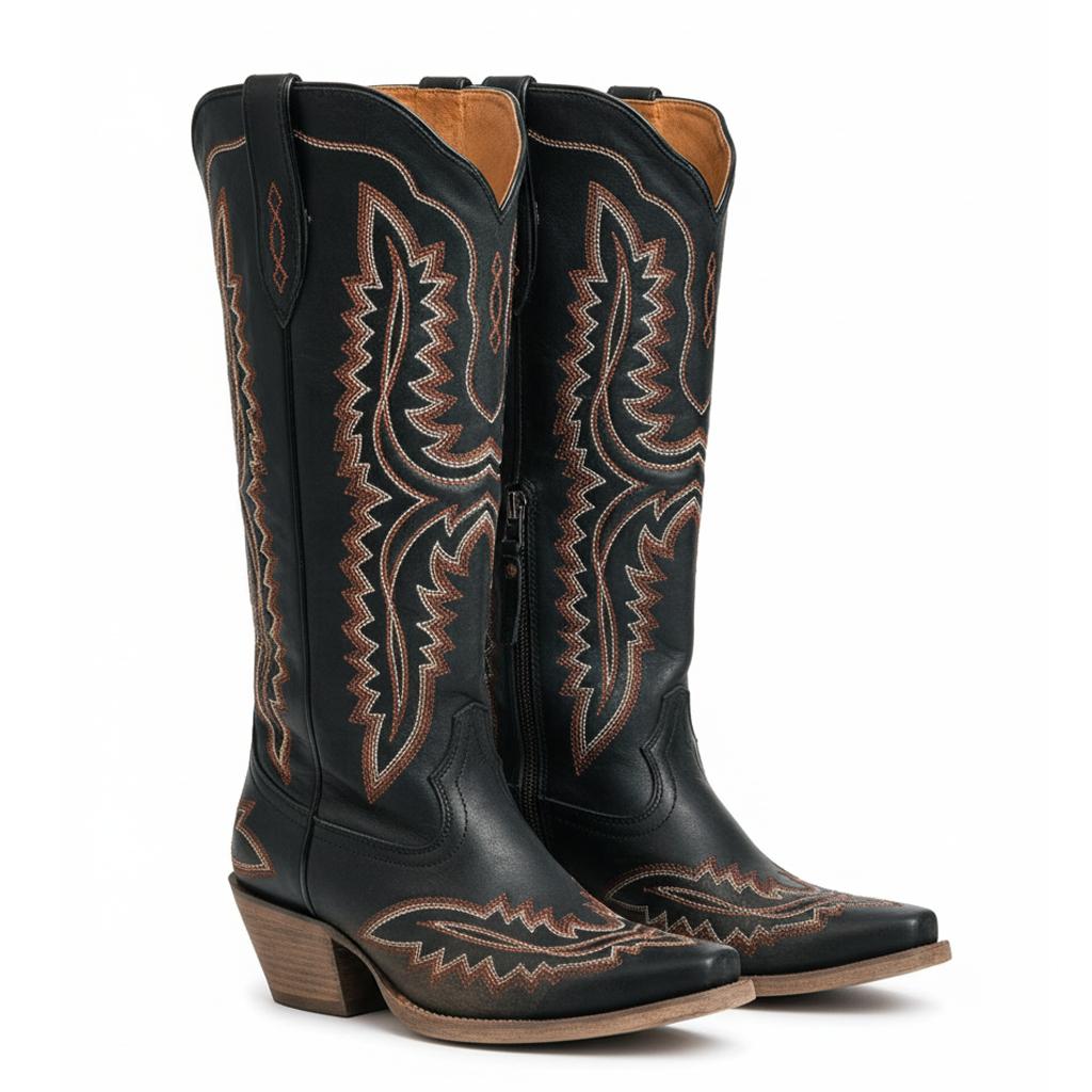 Step into elegance with our Western Mid-Calf Boots for Women, crafted from premium vegan leather. Each pair features exquisite embroidered detailing, offering a unique touch that sets you apart. Designed with handcrafted precision, these boots reflect unique craftsmanship that emphasizes both durability and style.